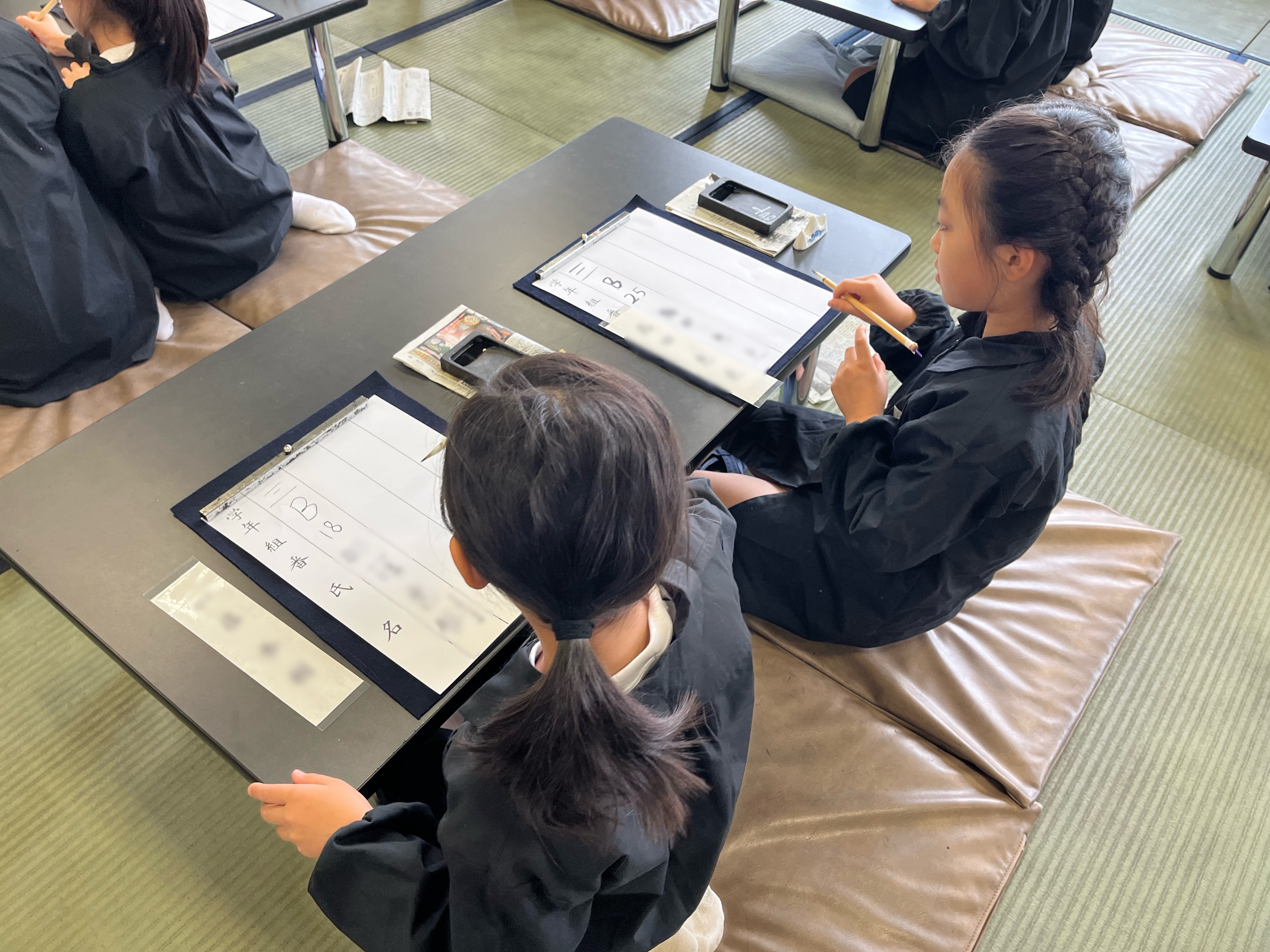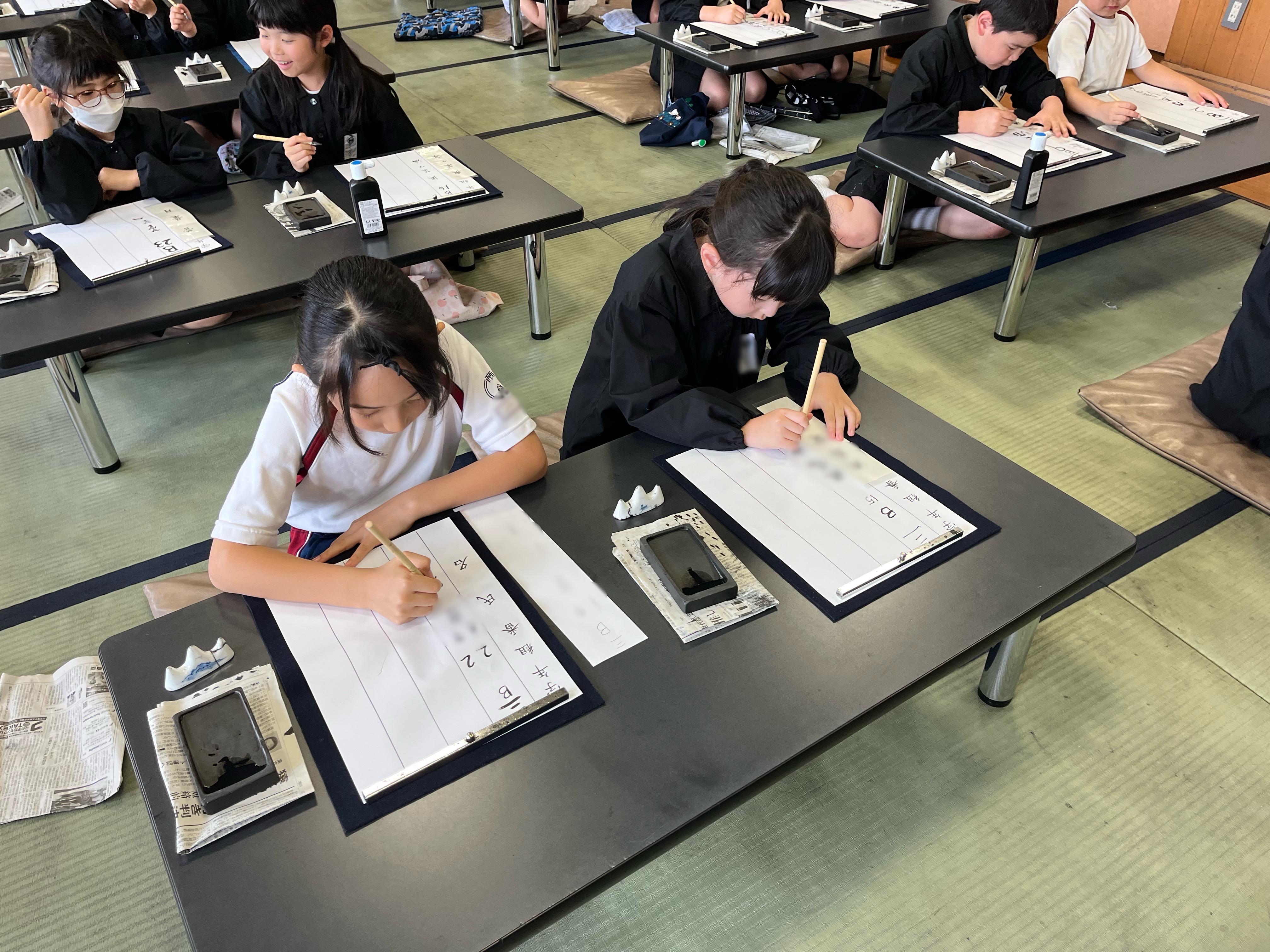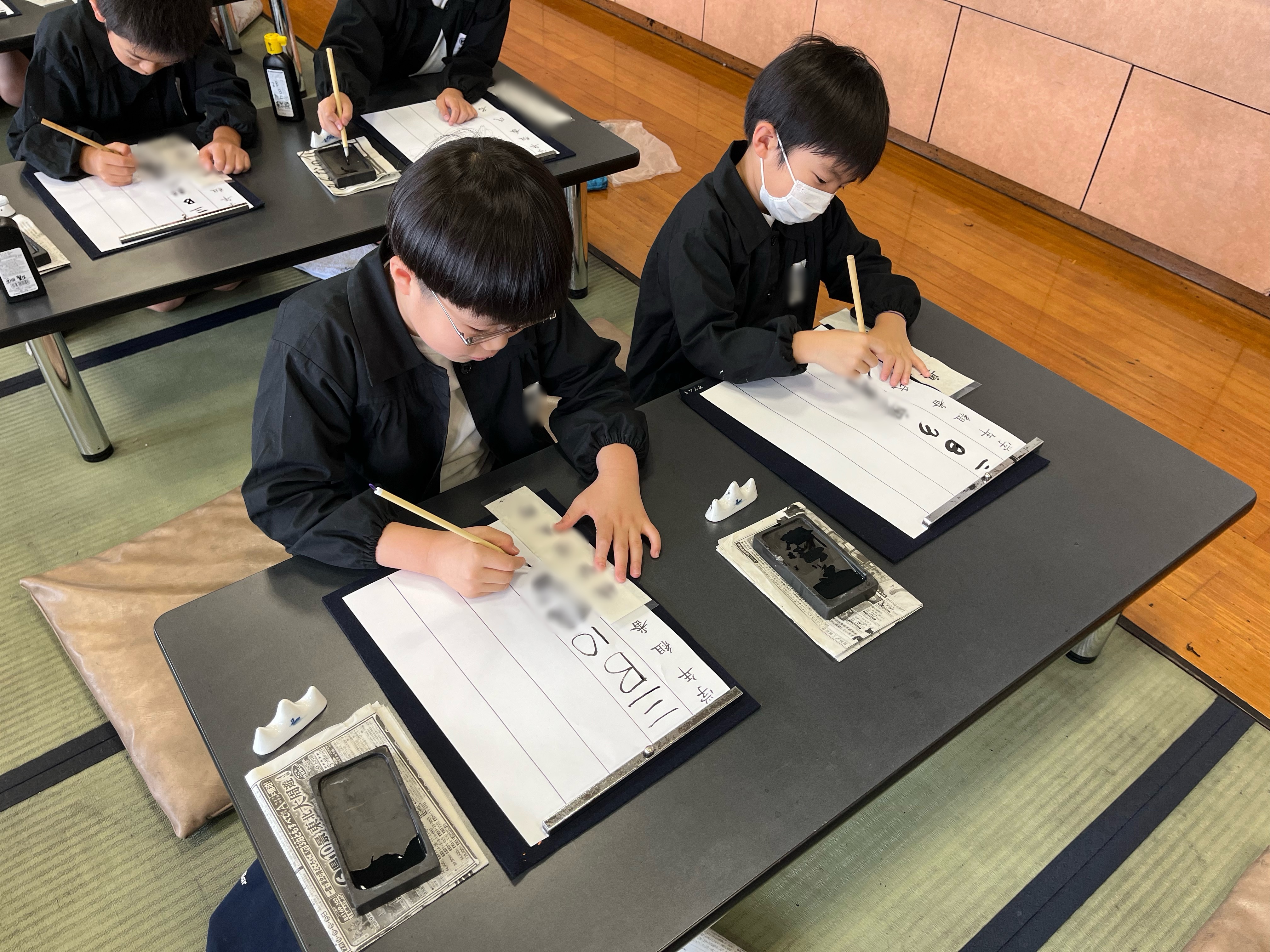1学期3年生の習字の授業が始まりました。 落ち着いた雰囲気の中、気持ちを込めて丁寧に自分の名前を書く練習をしました。
