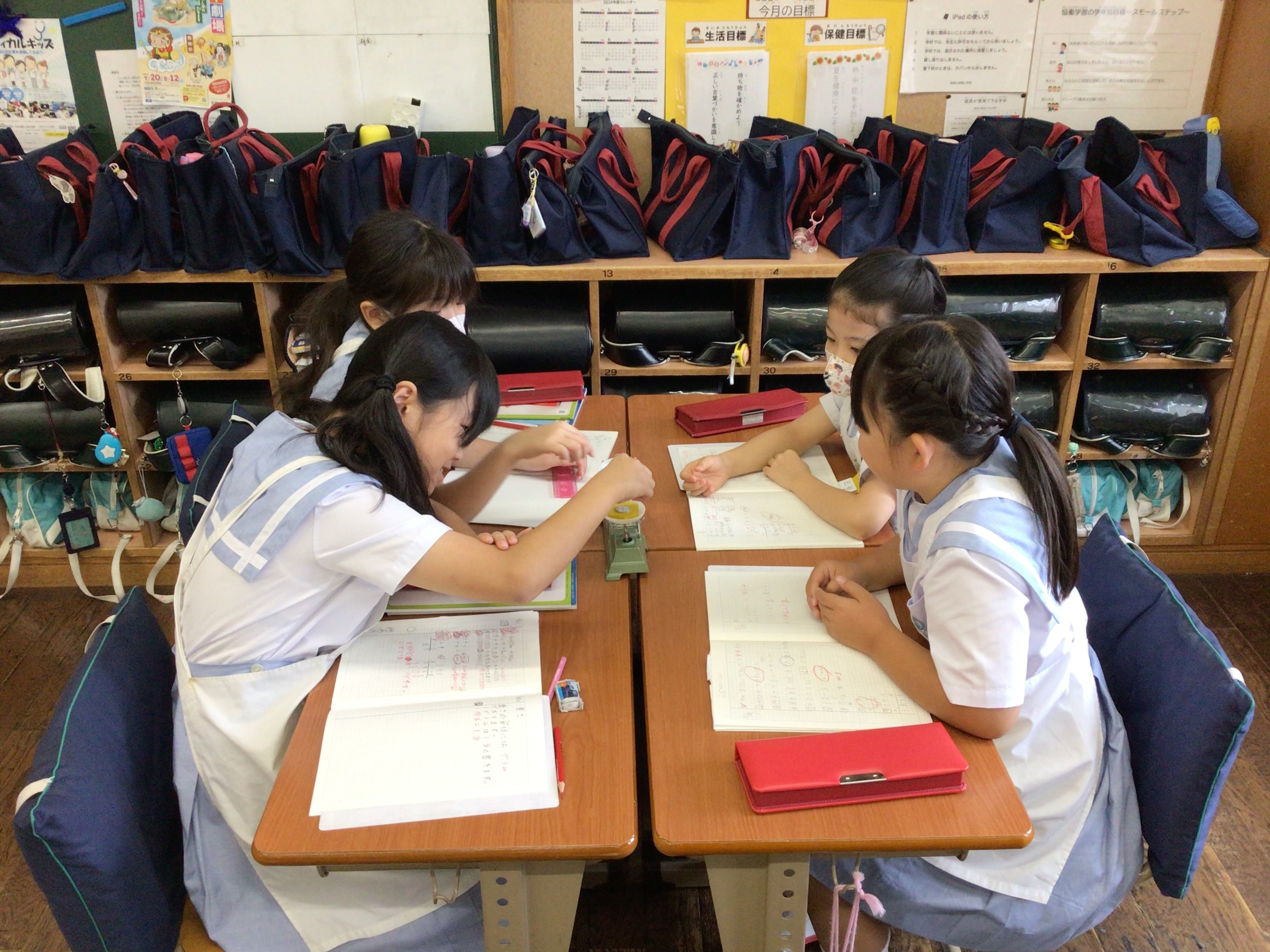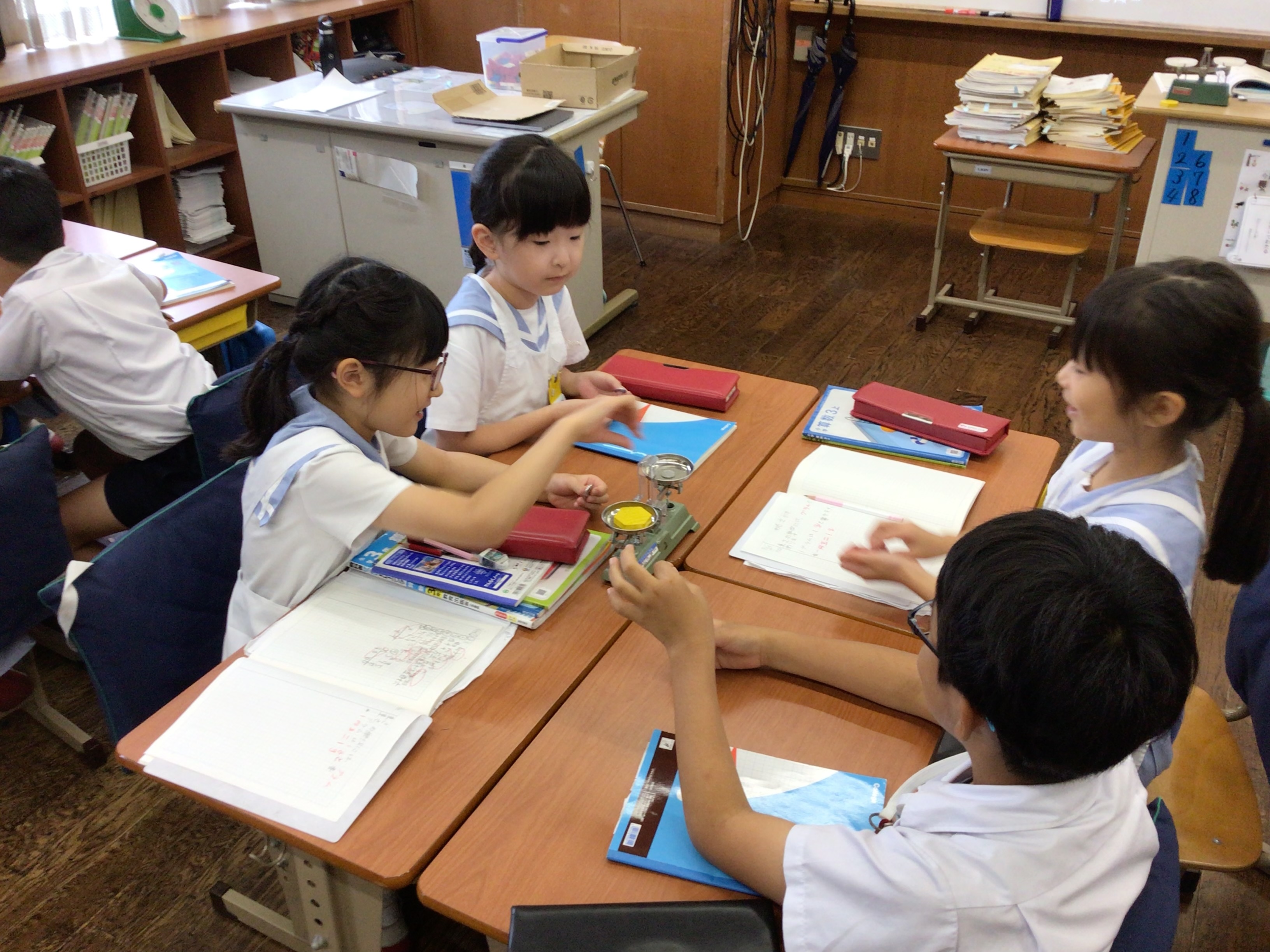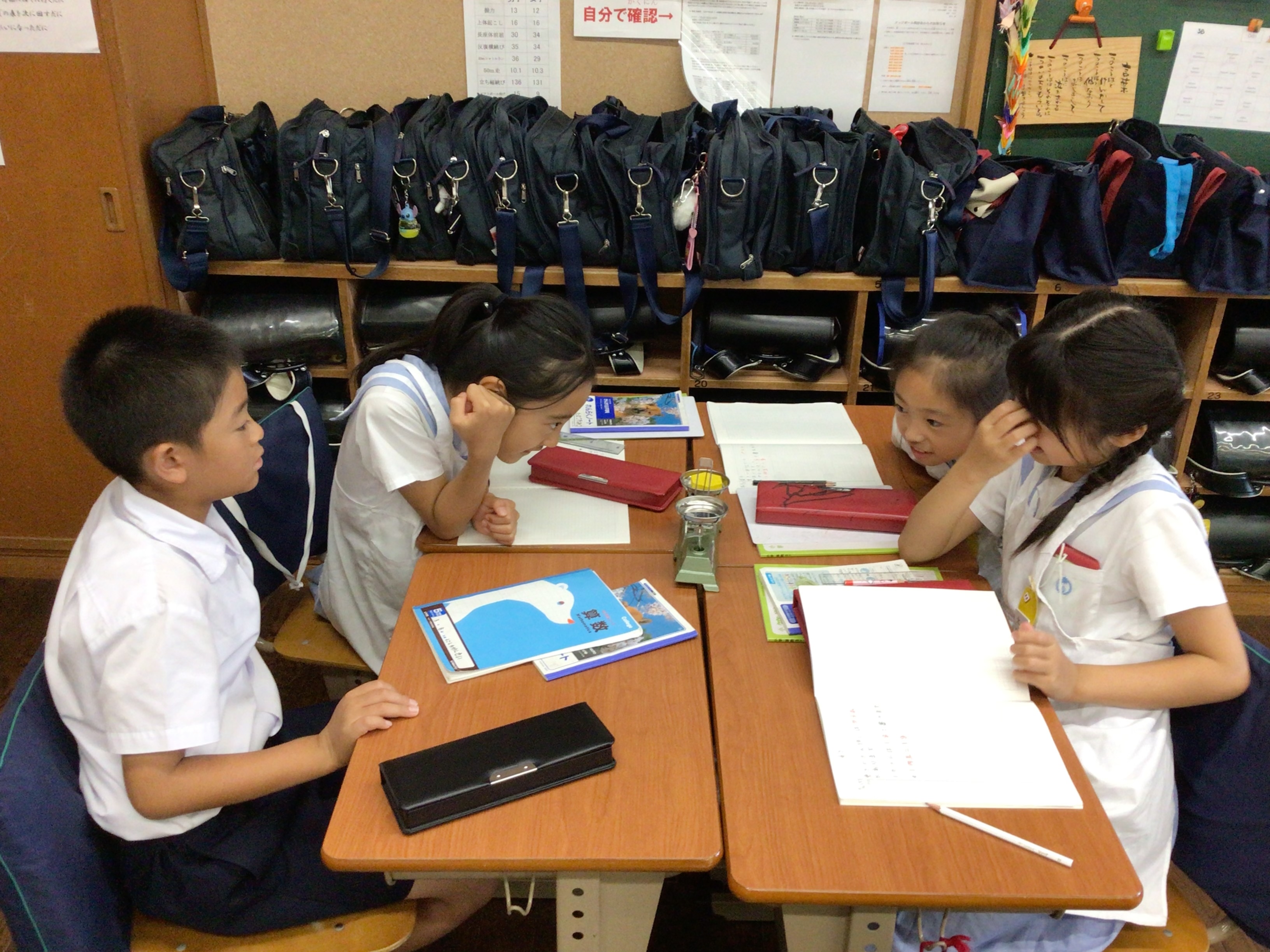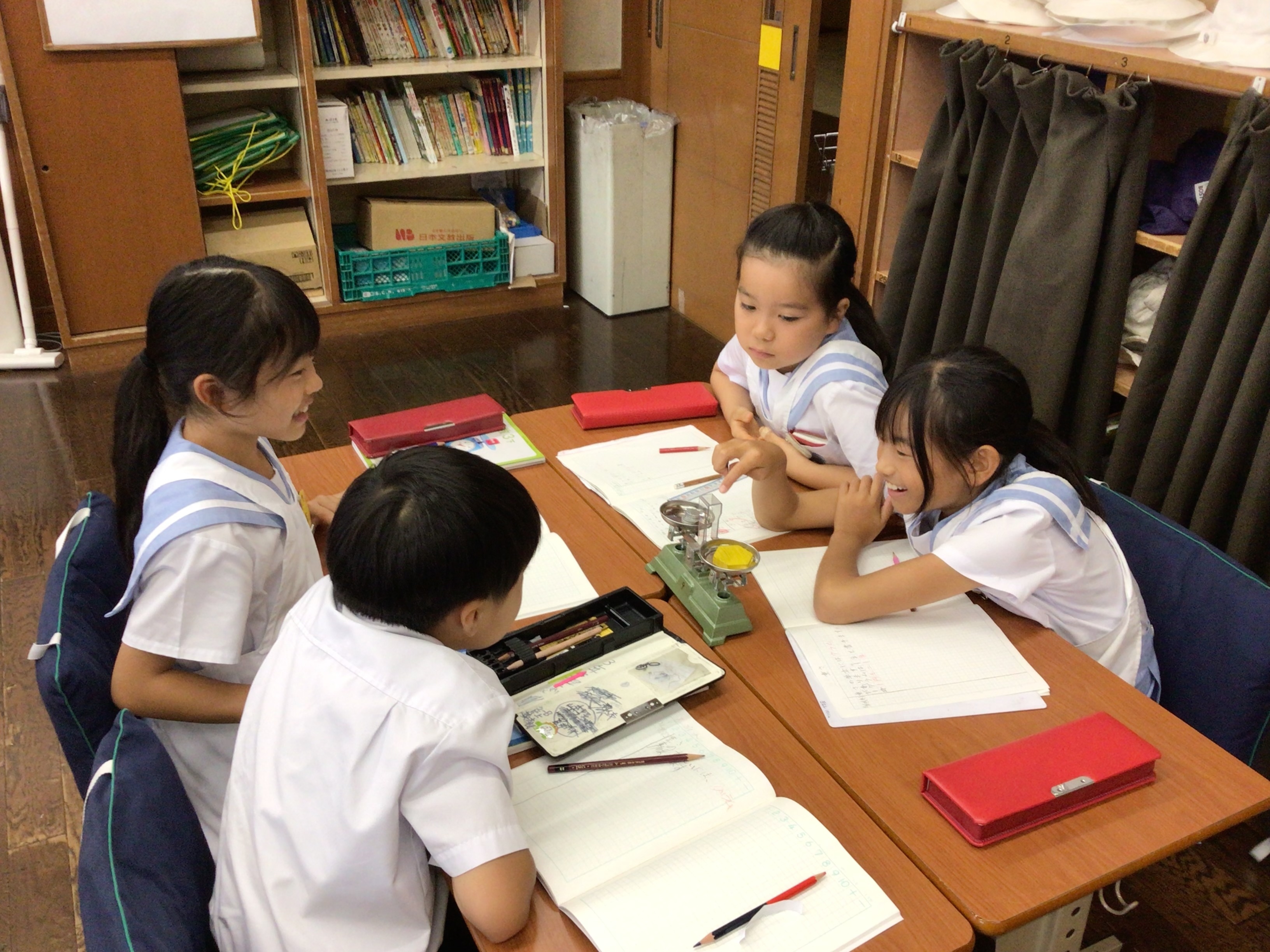 2学期になり、それぞれの科目で新しい単元に入りました。 3年生の算数科では「重さ」の単元に入りました。 初めの授業では、1円玉を使い、ブロックの重さを天秤を使って、調べました。 それぞれのグループで協力して、重さ調べができました。 2学期も、グループで力を合わせて、協働的な学習を進めていきます。