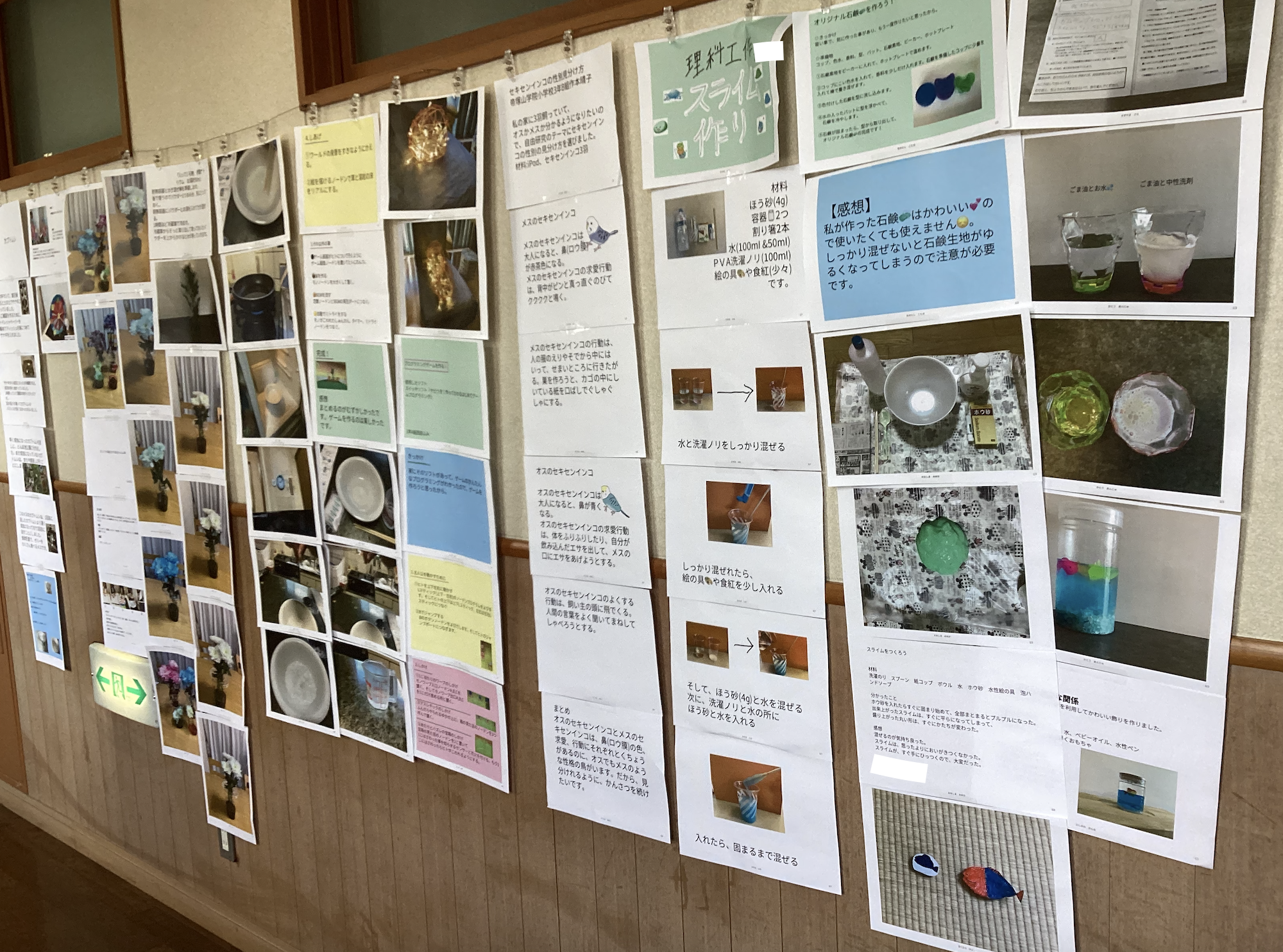 発表を終えたものから、4階廊下に研究の成果を展示しています。