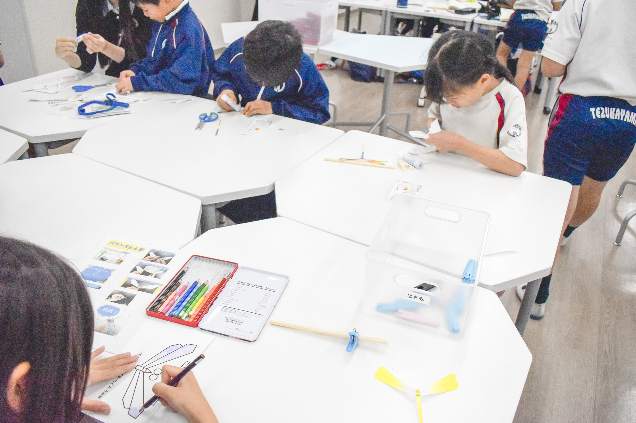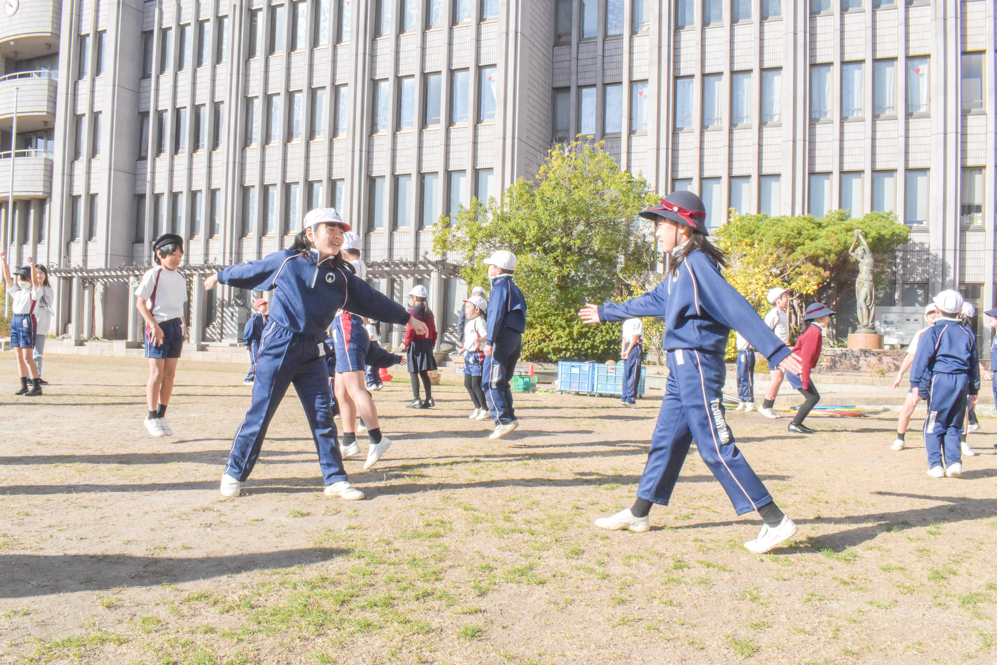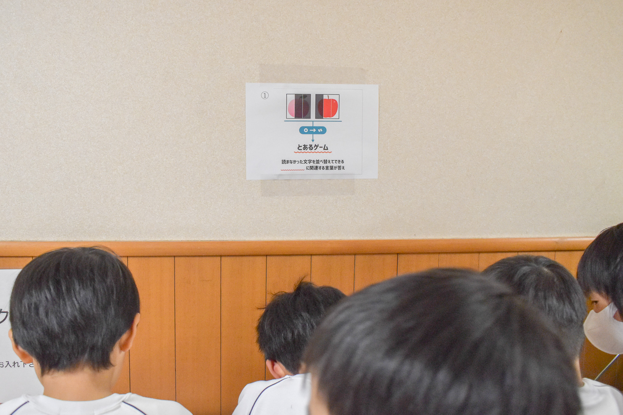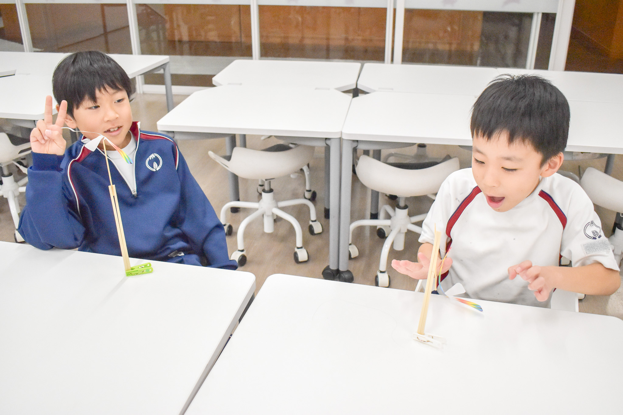 体育では全身を使ったじゃんけんや大縄跳び、図工では紙を使ったバランスとんぼ、国語では詩の朗読を行いました。