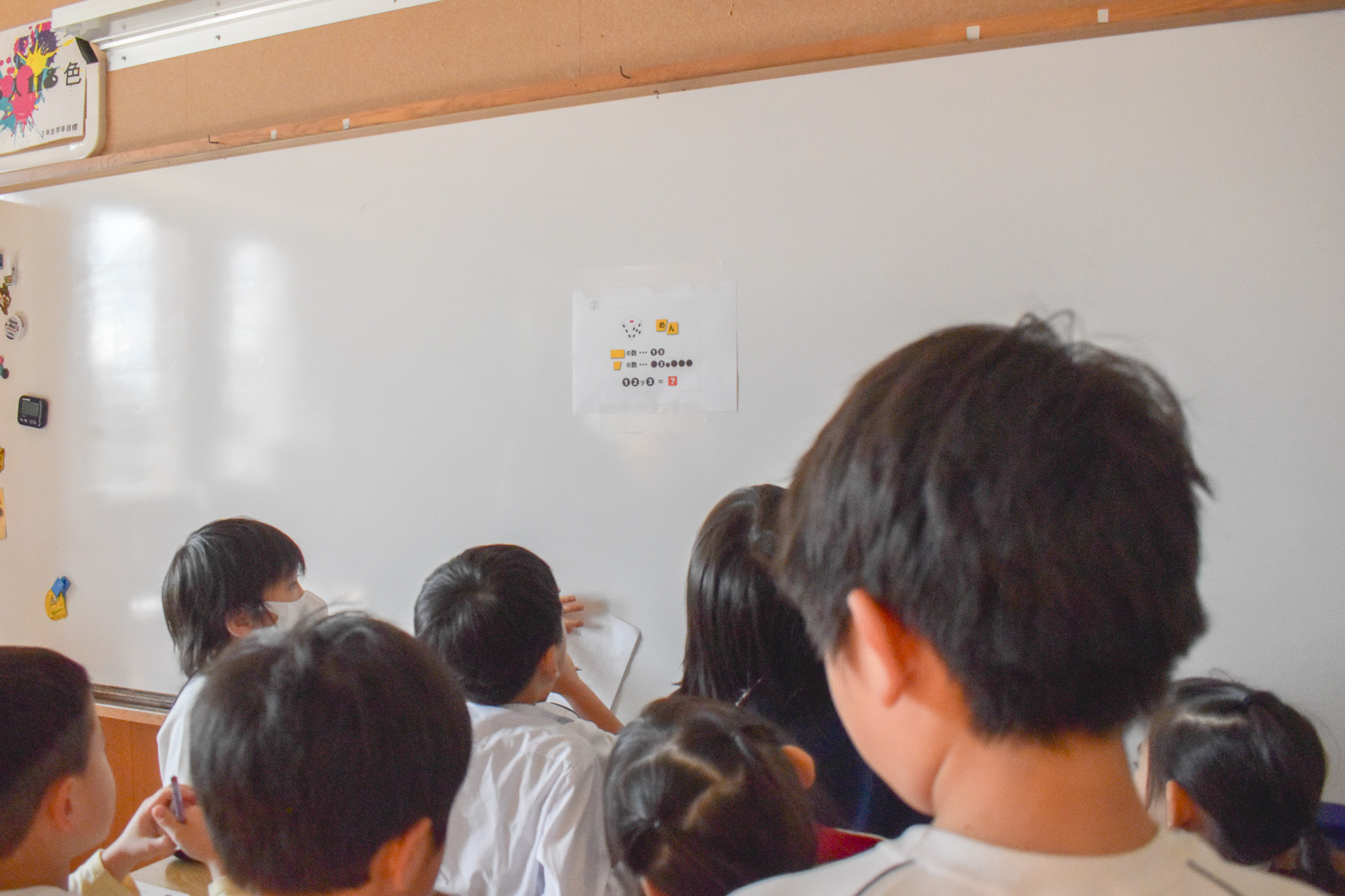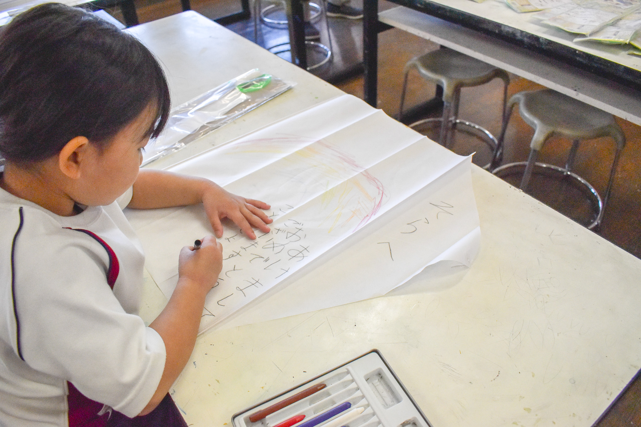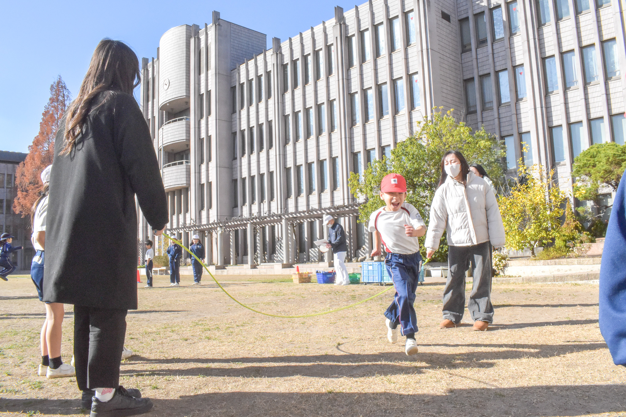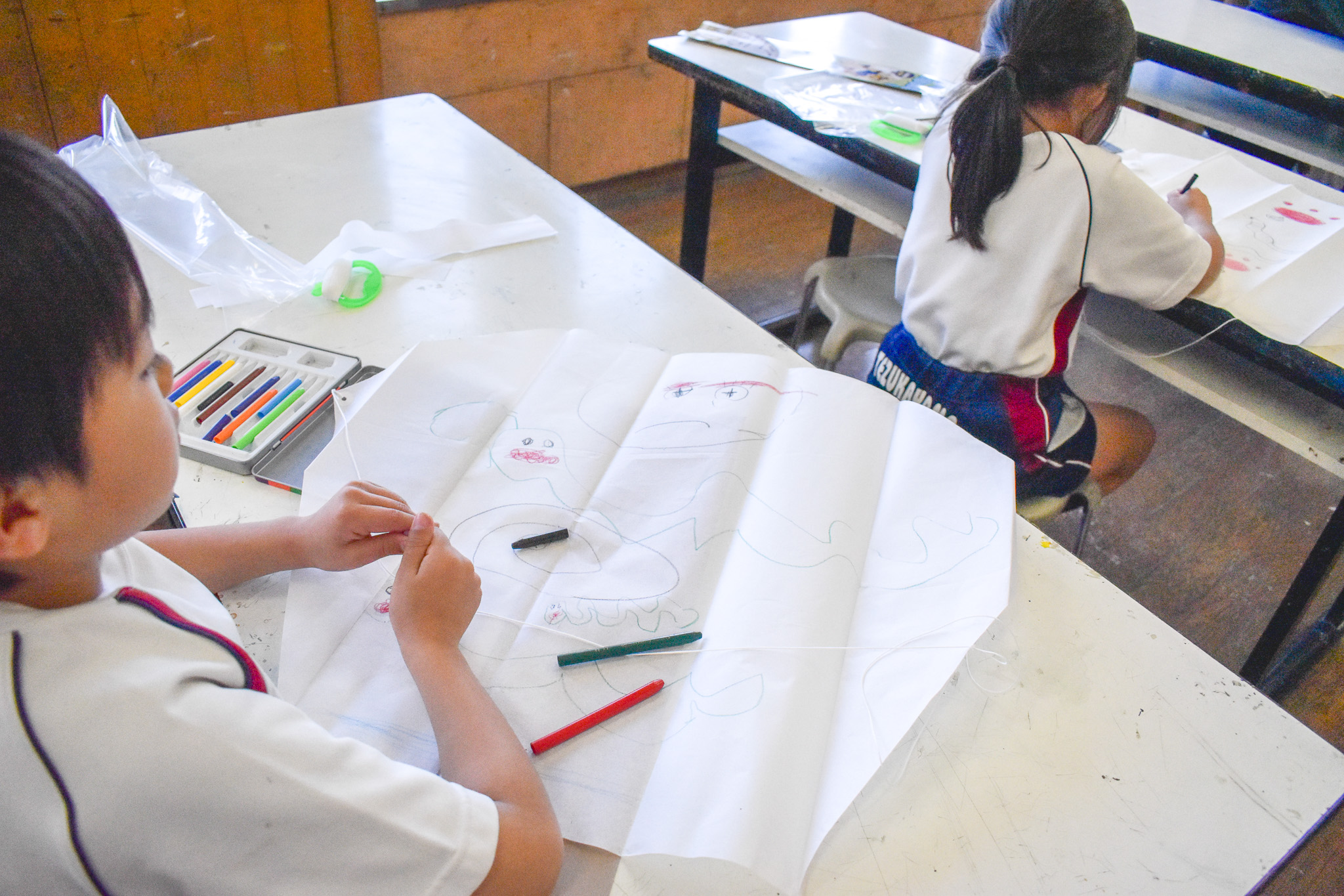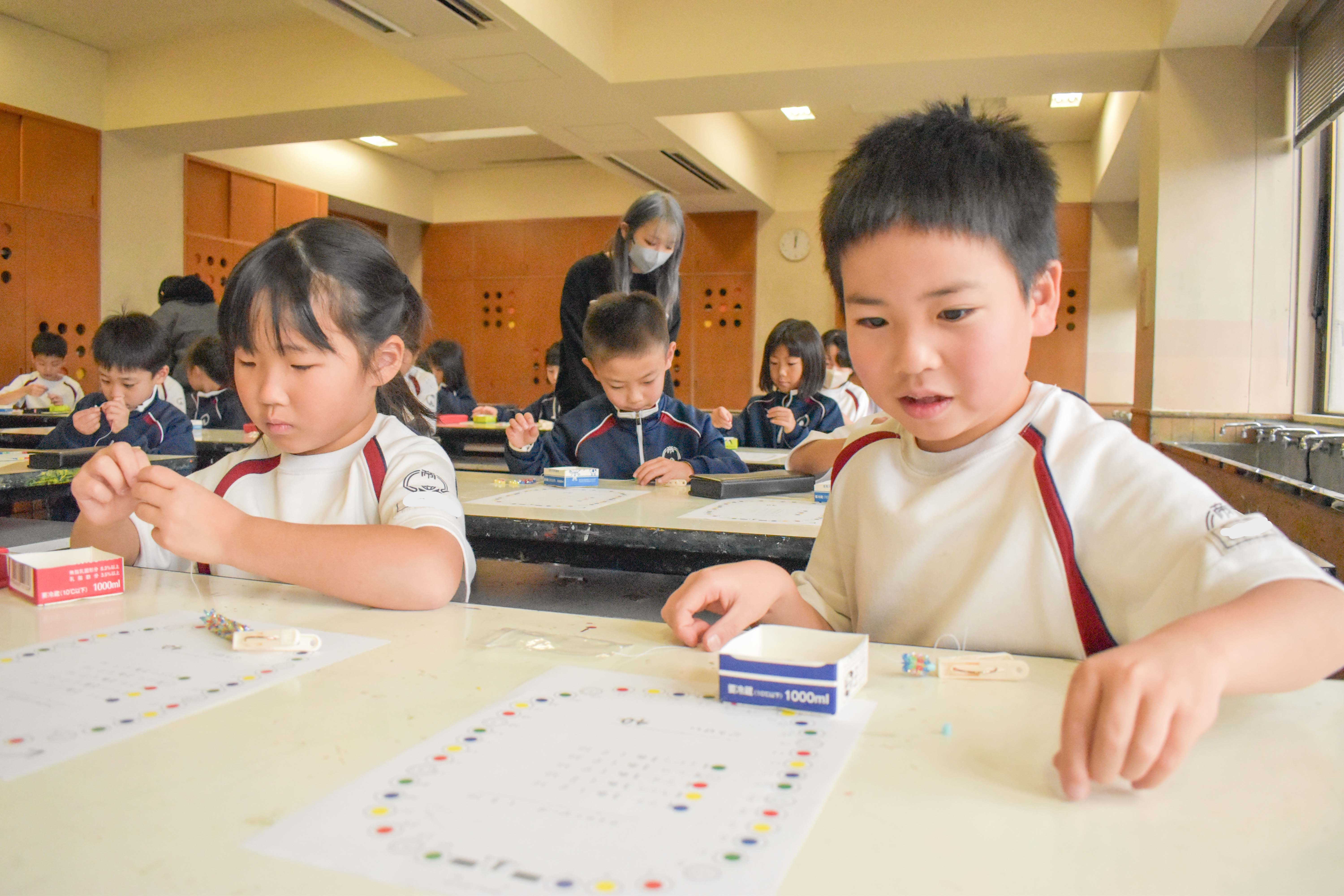 体育では全身を使ったじゃんけんや大縄跳び、図工では紙を使ったバランスとんぼ、国語では詩の朗読を行いました。