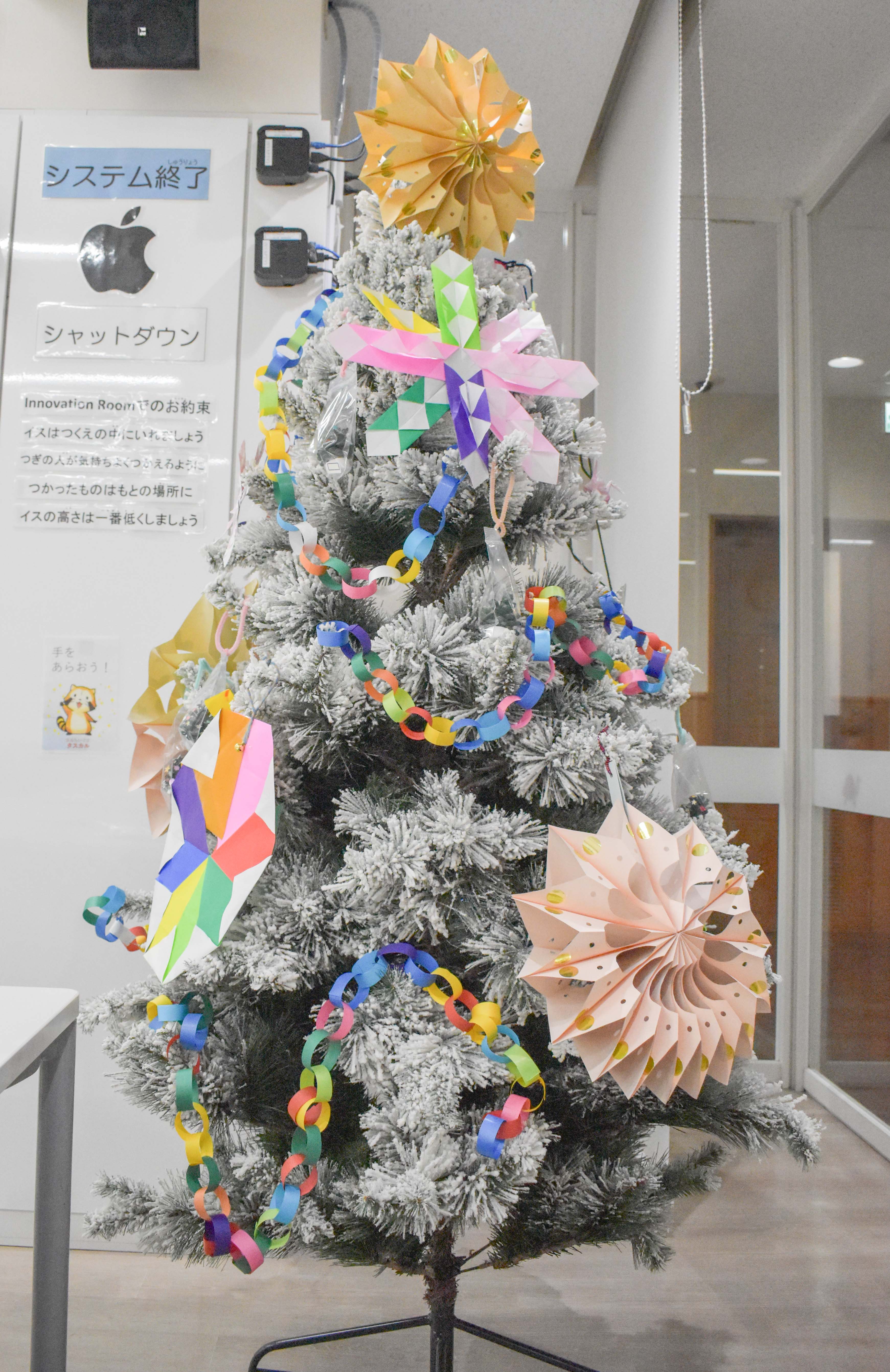 一部のビーズリースはイノベーションルームのツリーに飾りました。