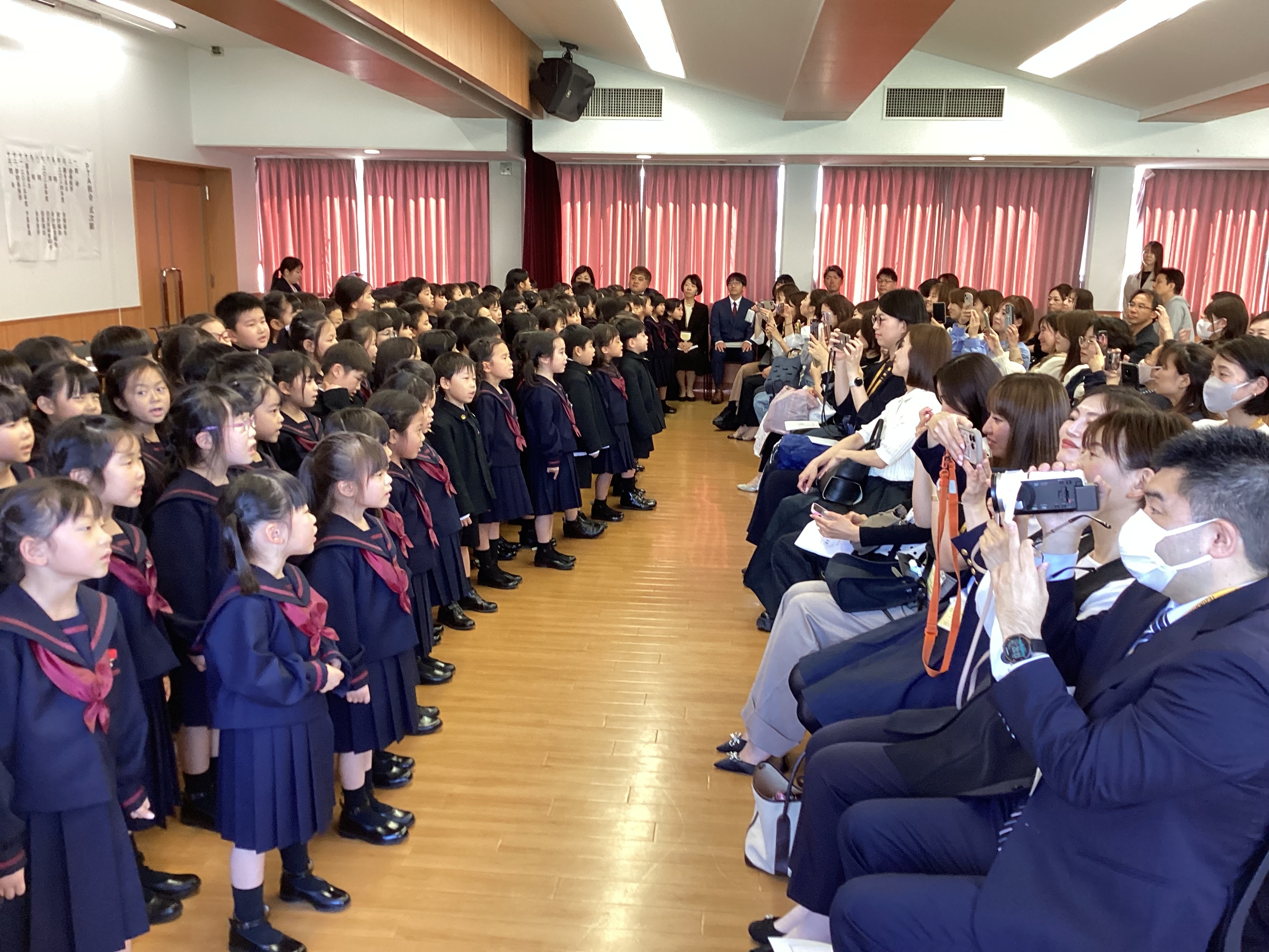 PTA総会の前には、恒例の1年生の歌の発表を行い、この日のために練習してきた成果を聴かせてくれました。