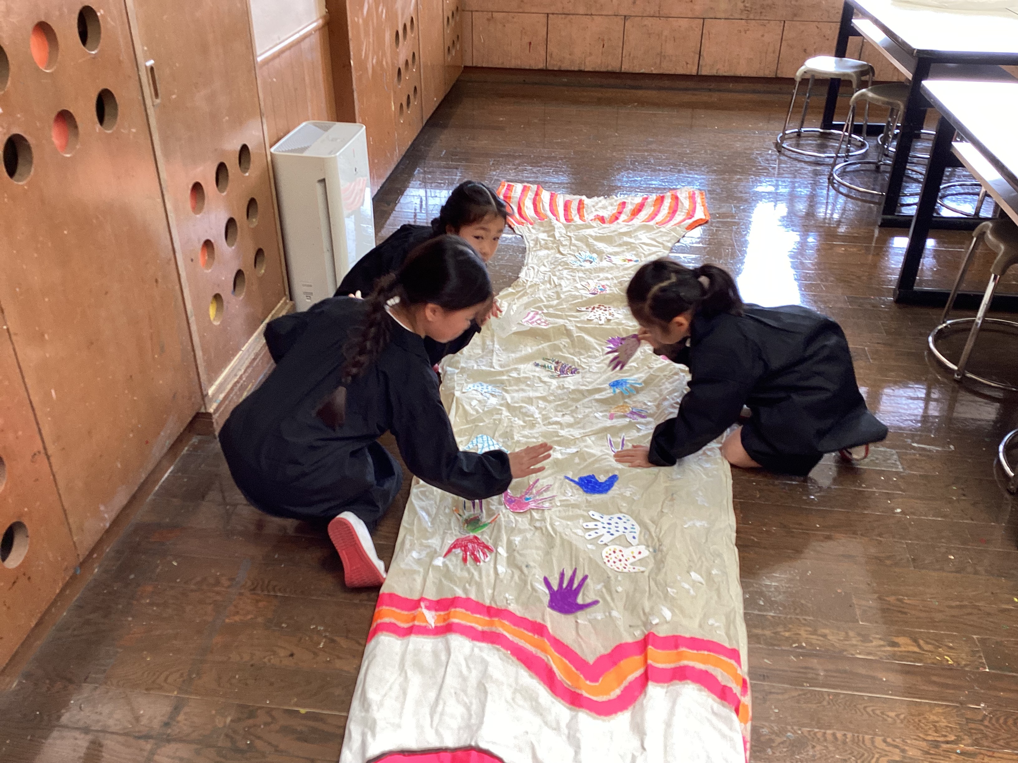 子どもたちの手で作られた「手形うろこ」の鯉のぼりが、