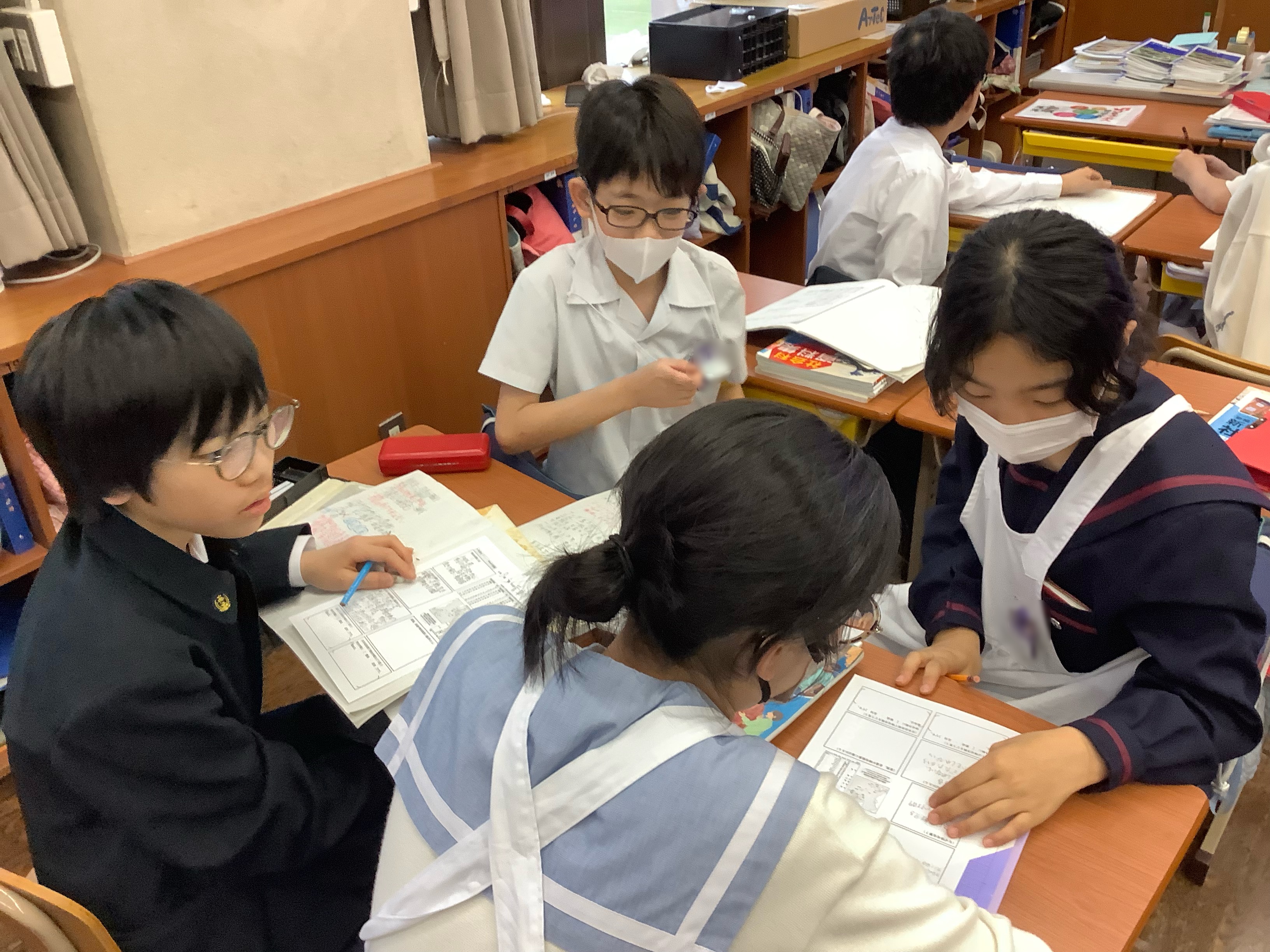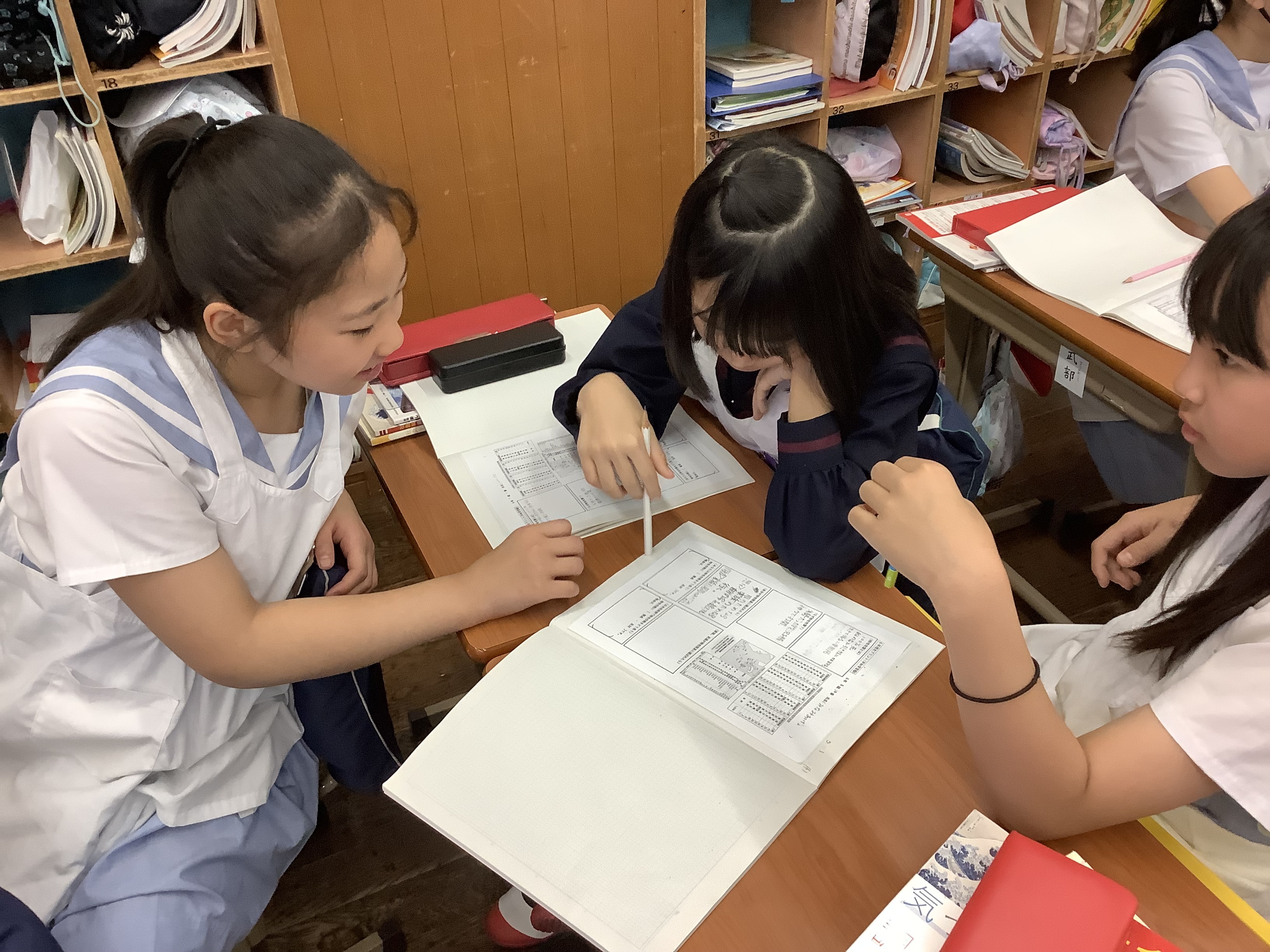 向かいには6年生のお兄さんお姉さんが座り、見守り、時にはお手伝いをしてくれます。