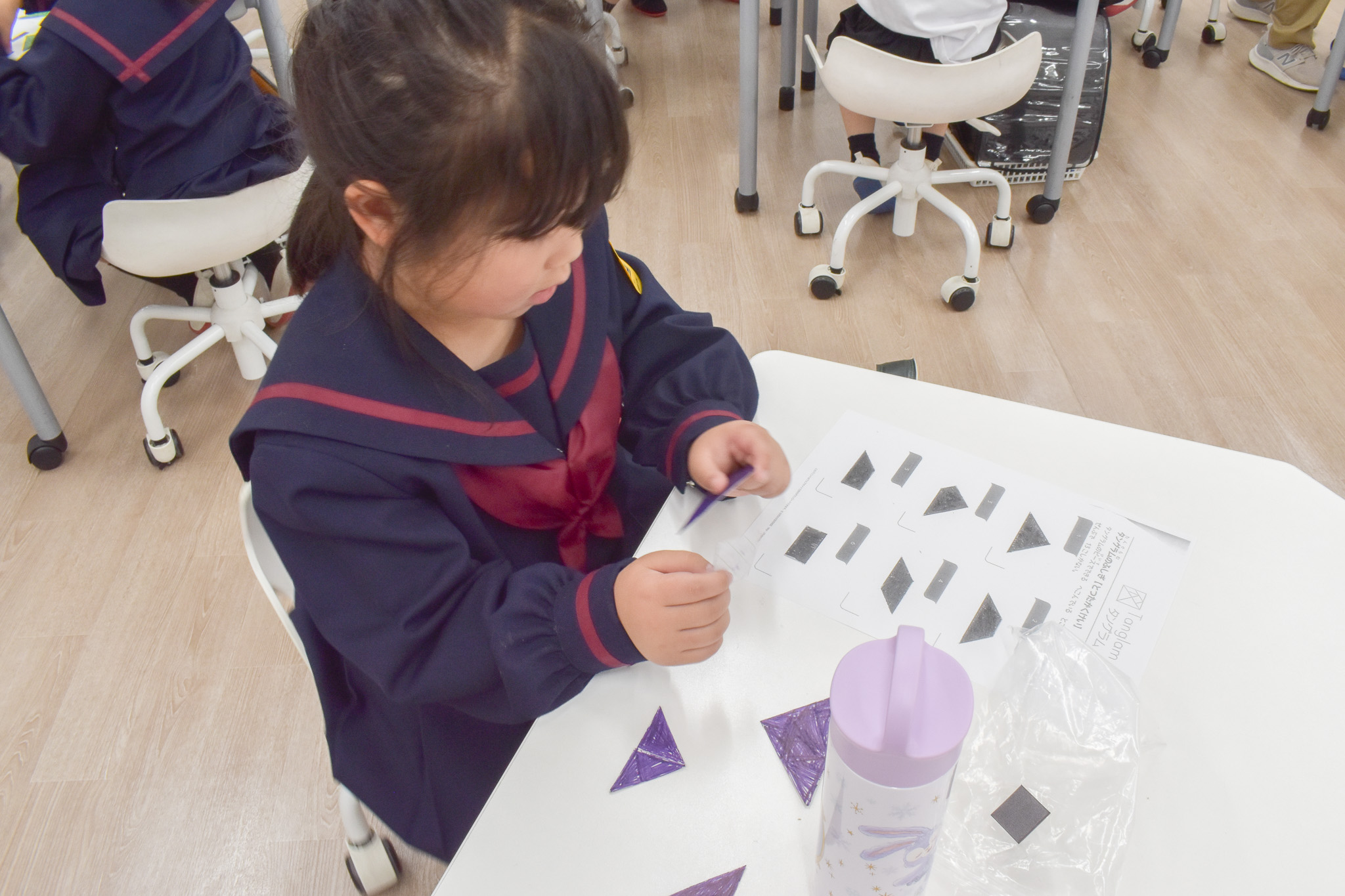 タングラムとは色んな形のパズルを指定された形にする遊びです。苦戦しながらも完成させられたときの達成感でみんな嬉しそうにしていました。