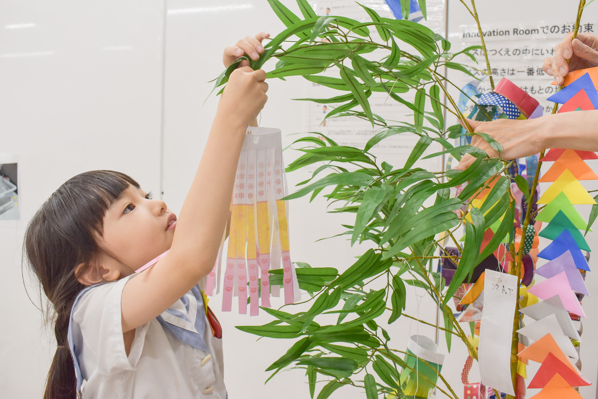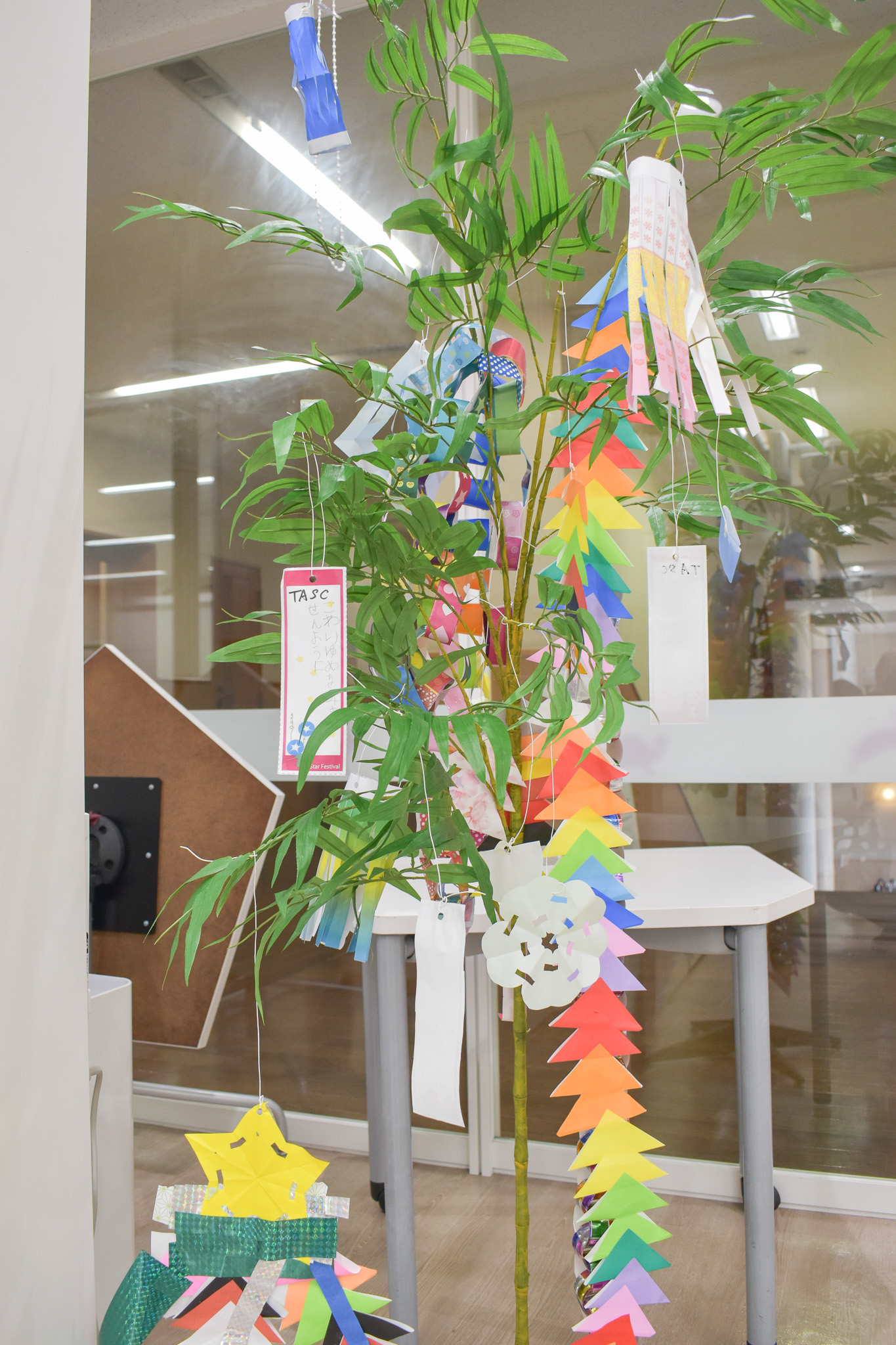 今日はイノベーションルームに置いているちいさな笹にTASCで作った笹飾りを飾りました。