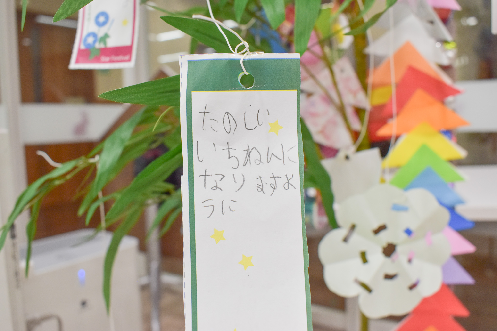 この日のために作ってくれた飾りや、願いを込めた短冊をたくさん笹に飾りつけをしてくれました。