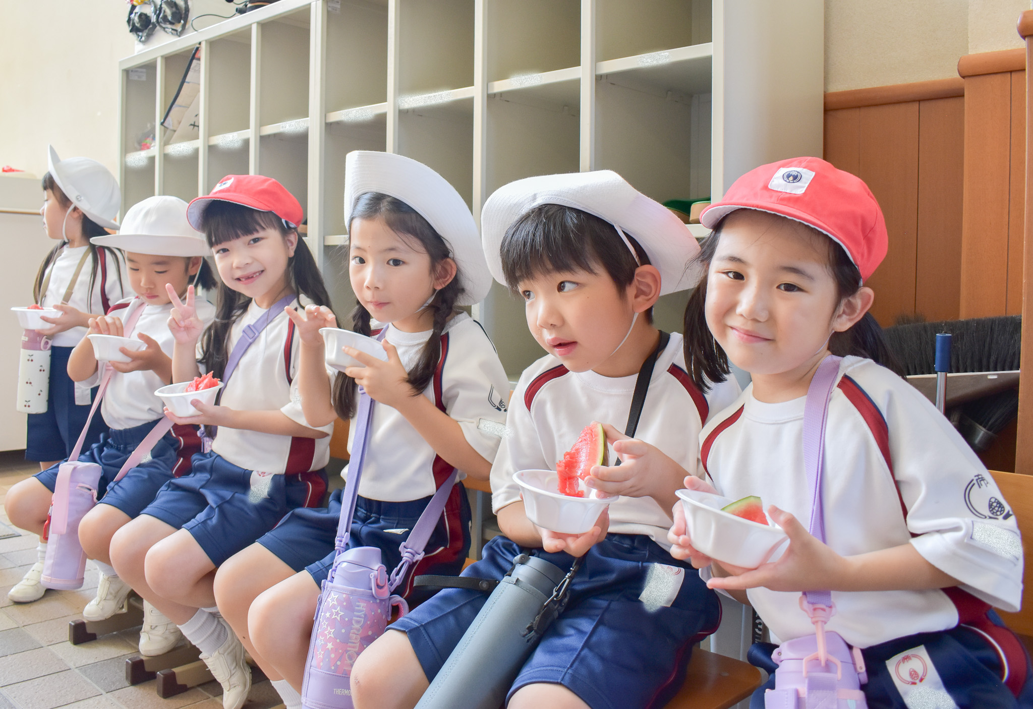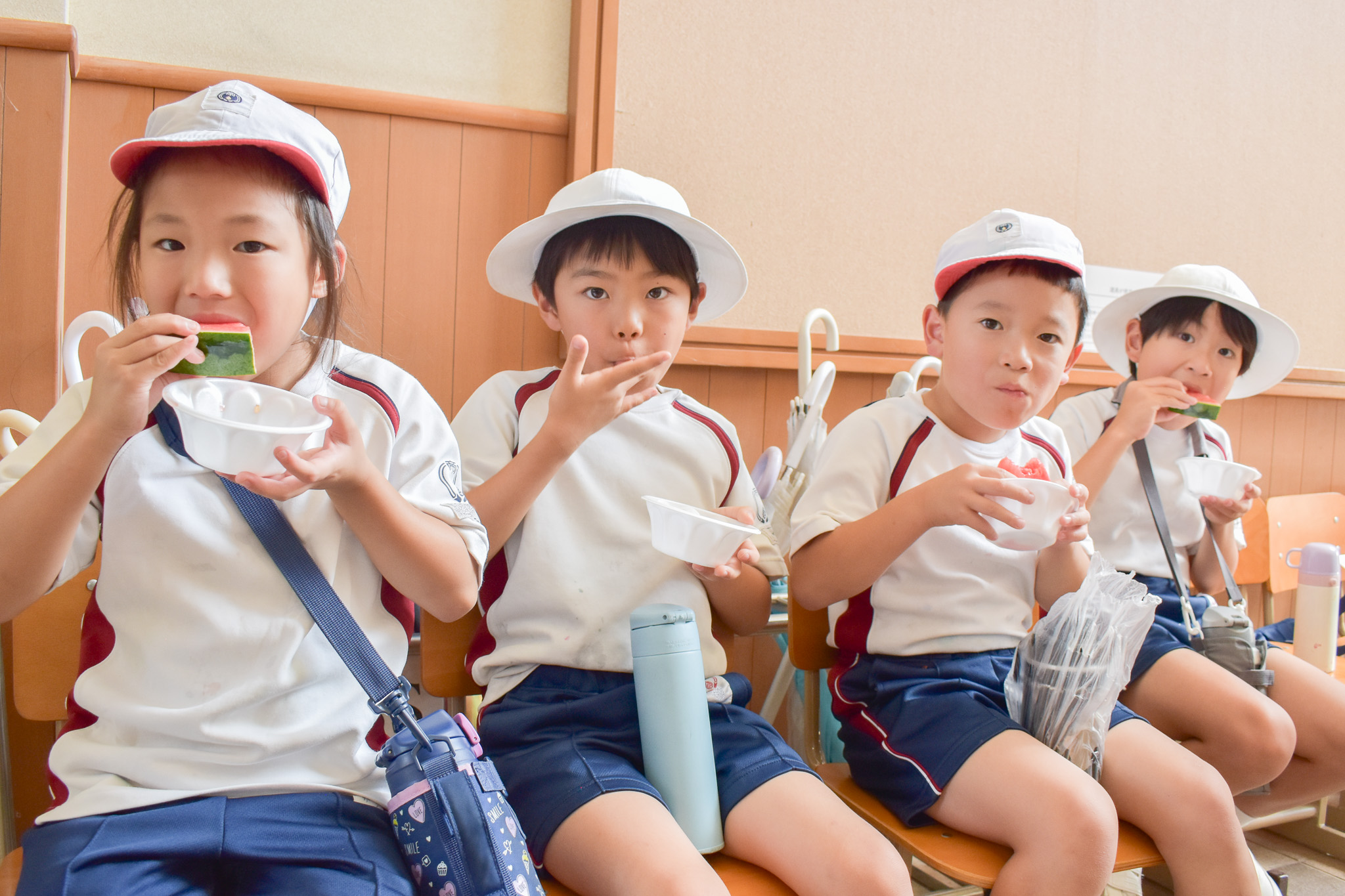 そのあとみんなで冷たくて甘いすいかを食べました。