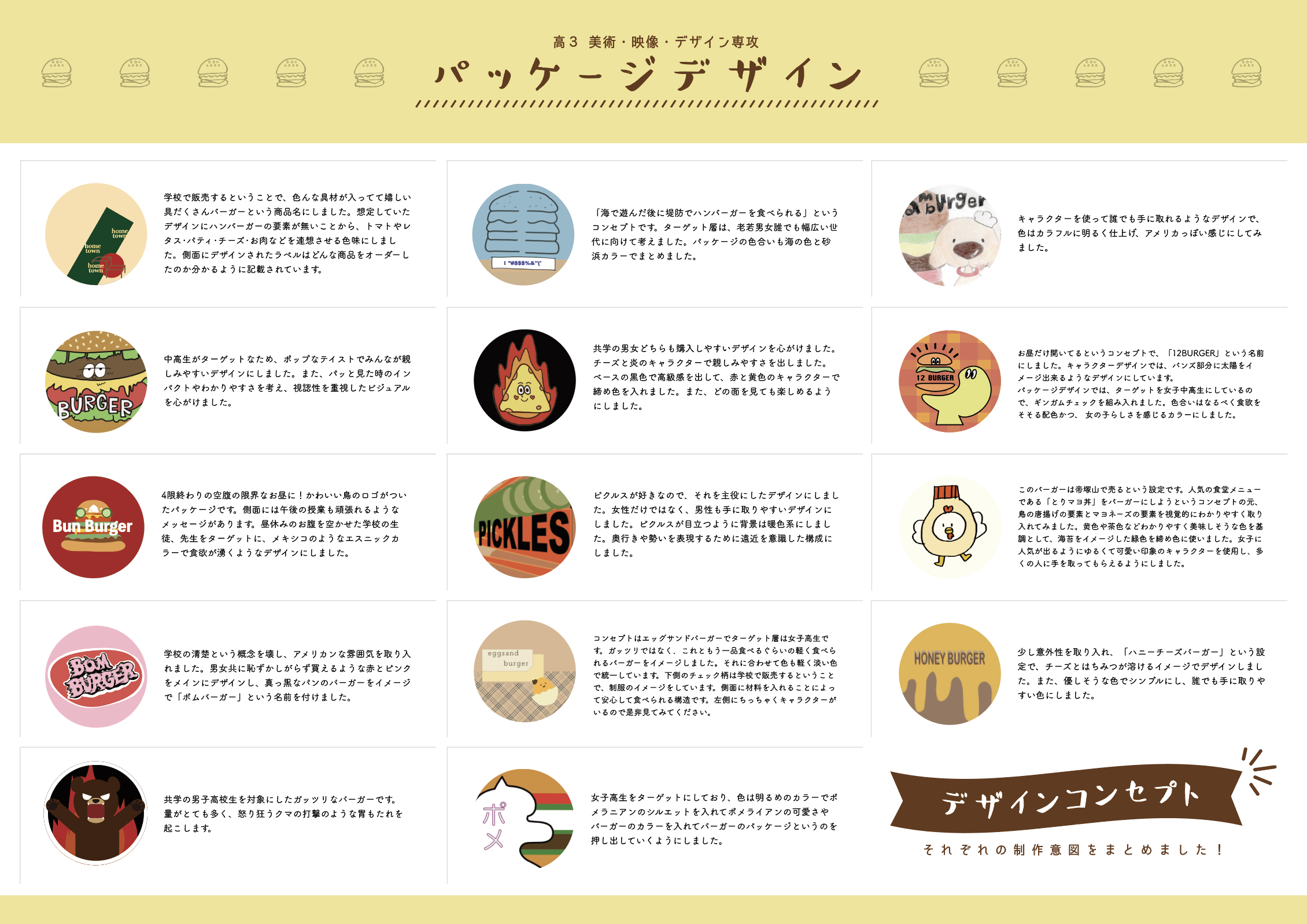高3の美術・映像・デザイン専攻「デザイン」の授業では、2学期の最初の課題でパッケージデザインに取り組みました。