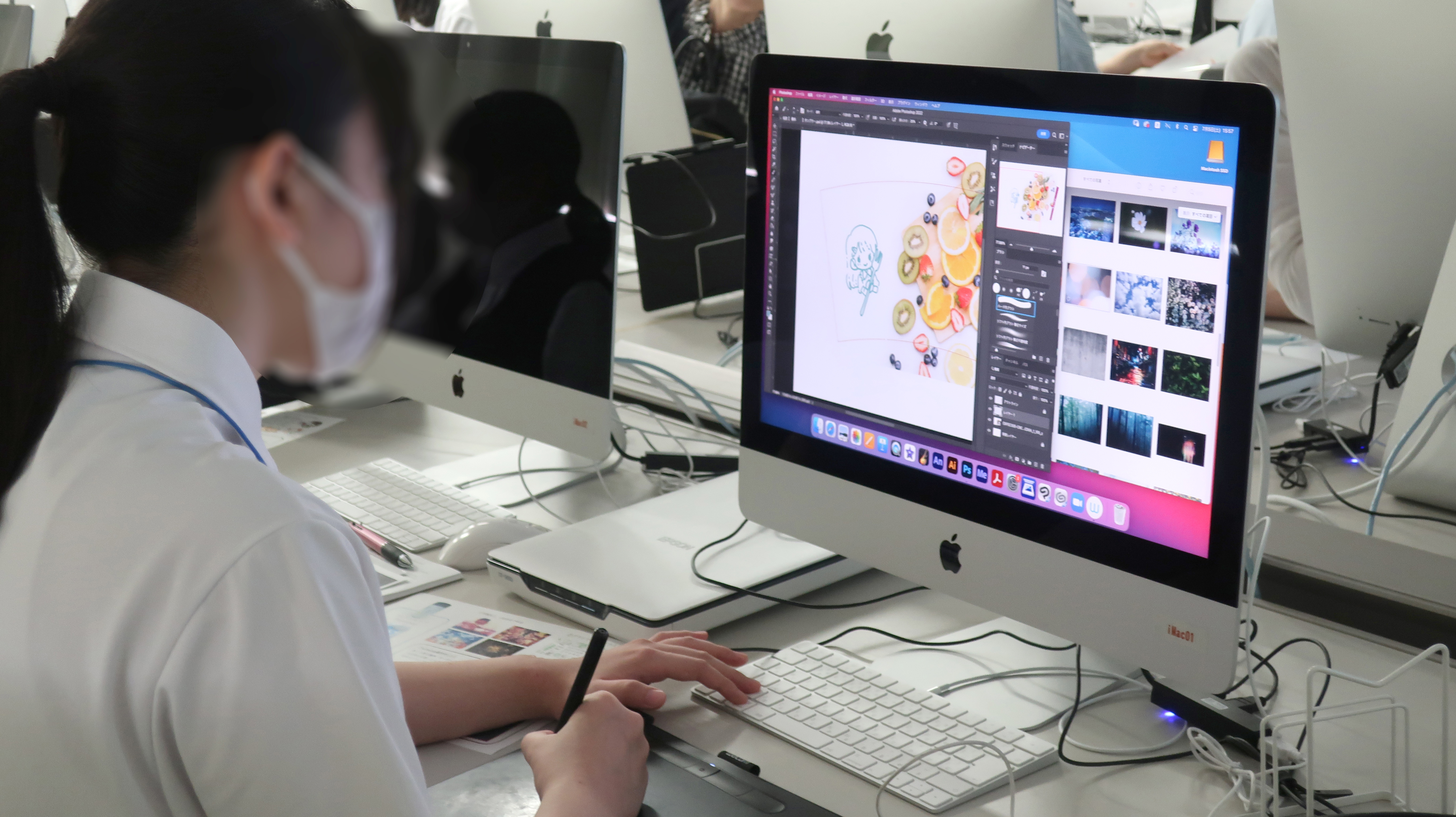 イラストを描いたり、画像を加工しながらタンブラーのデザイン案をiMacで制作しました。写真の彩度や明度を変化させたり、複数を組み合わせると意外な効果が現れて驚きがたくさんありましたね!
