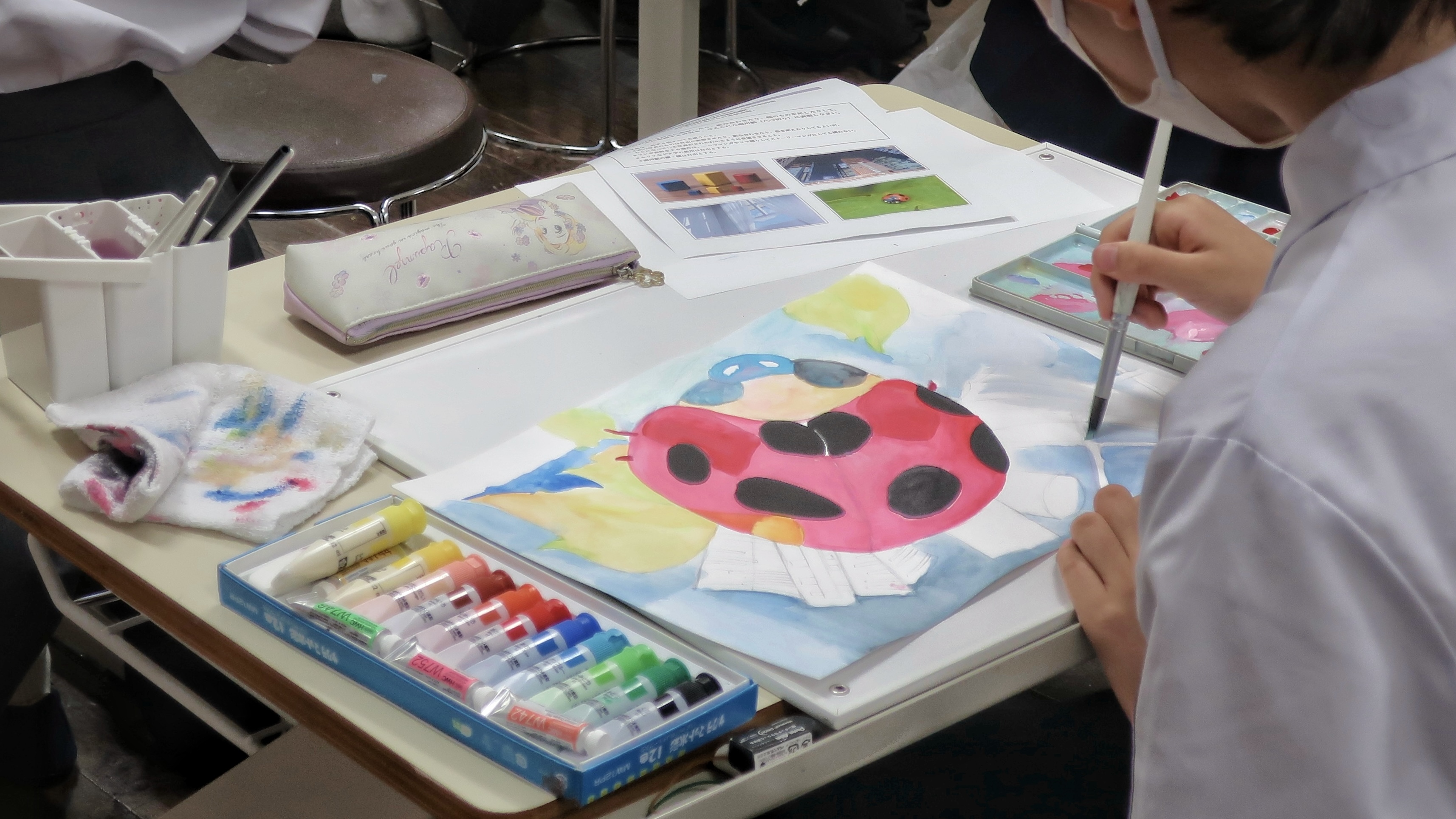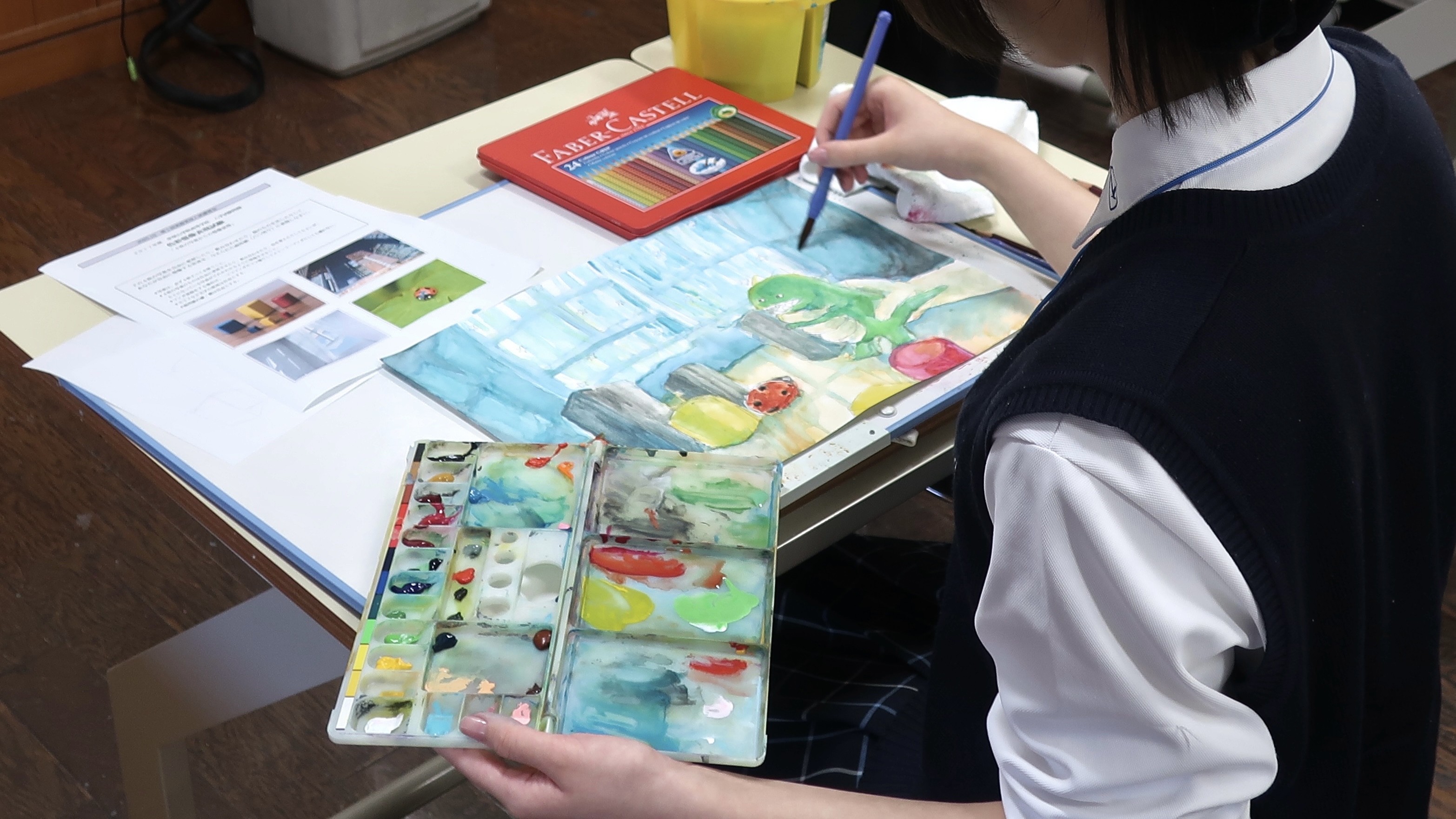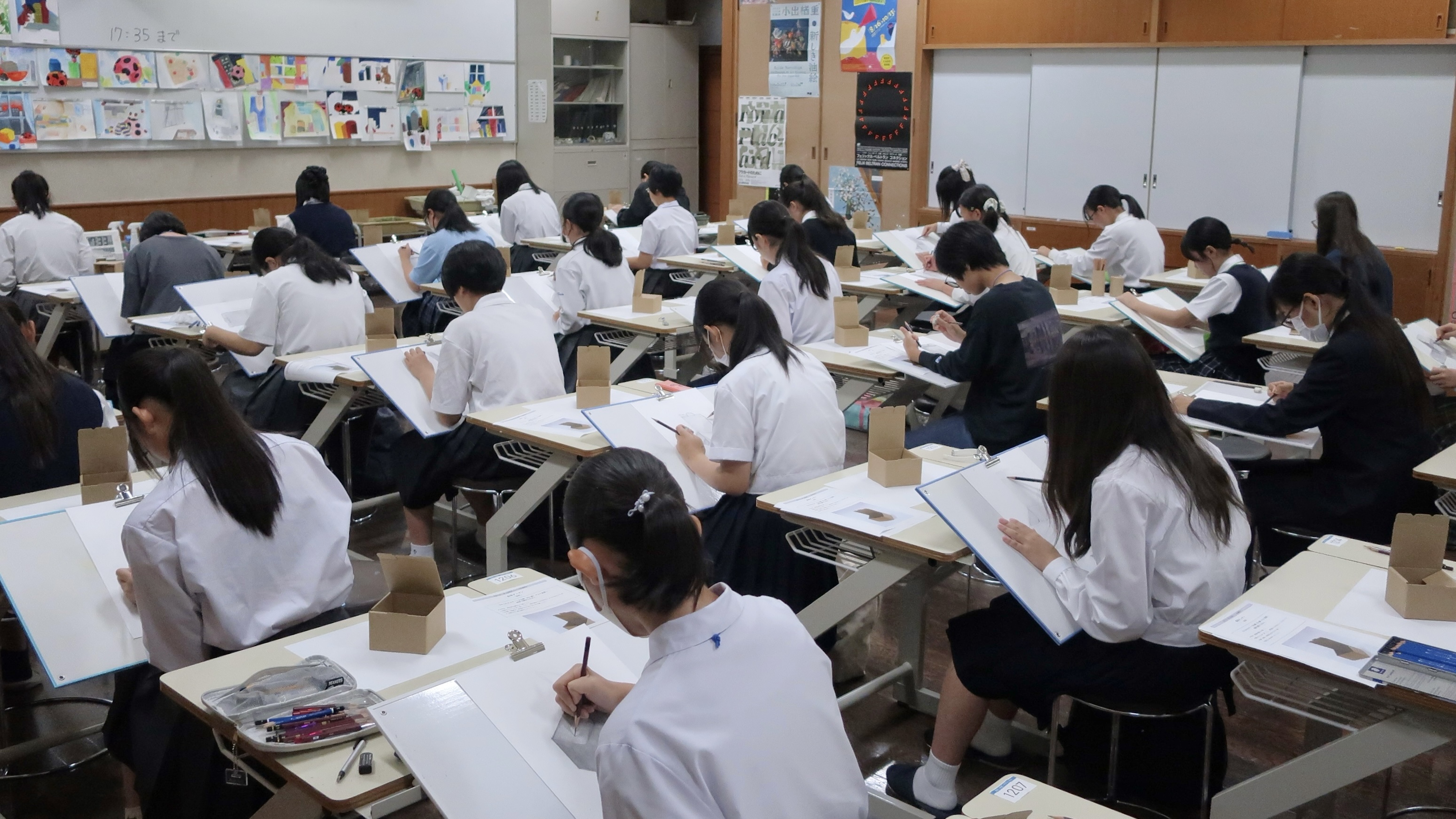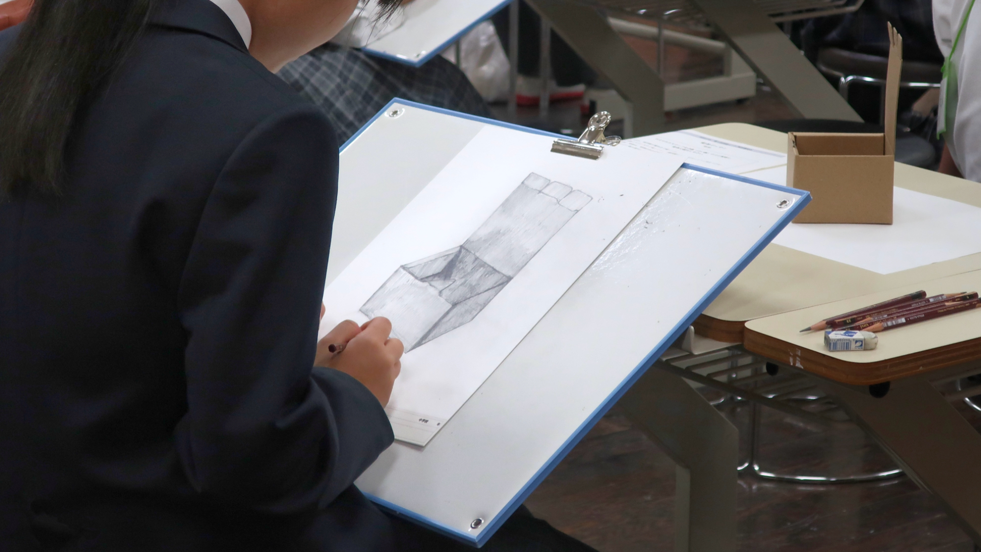 本校美術コースの実技型入試では、①鉛筆デッサンと②色彩表現の試験があります。