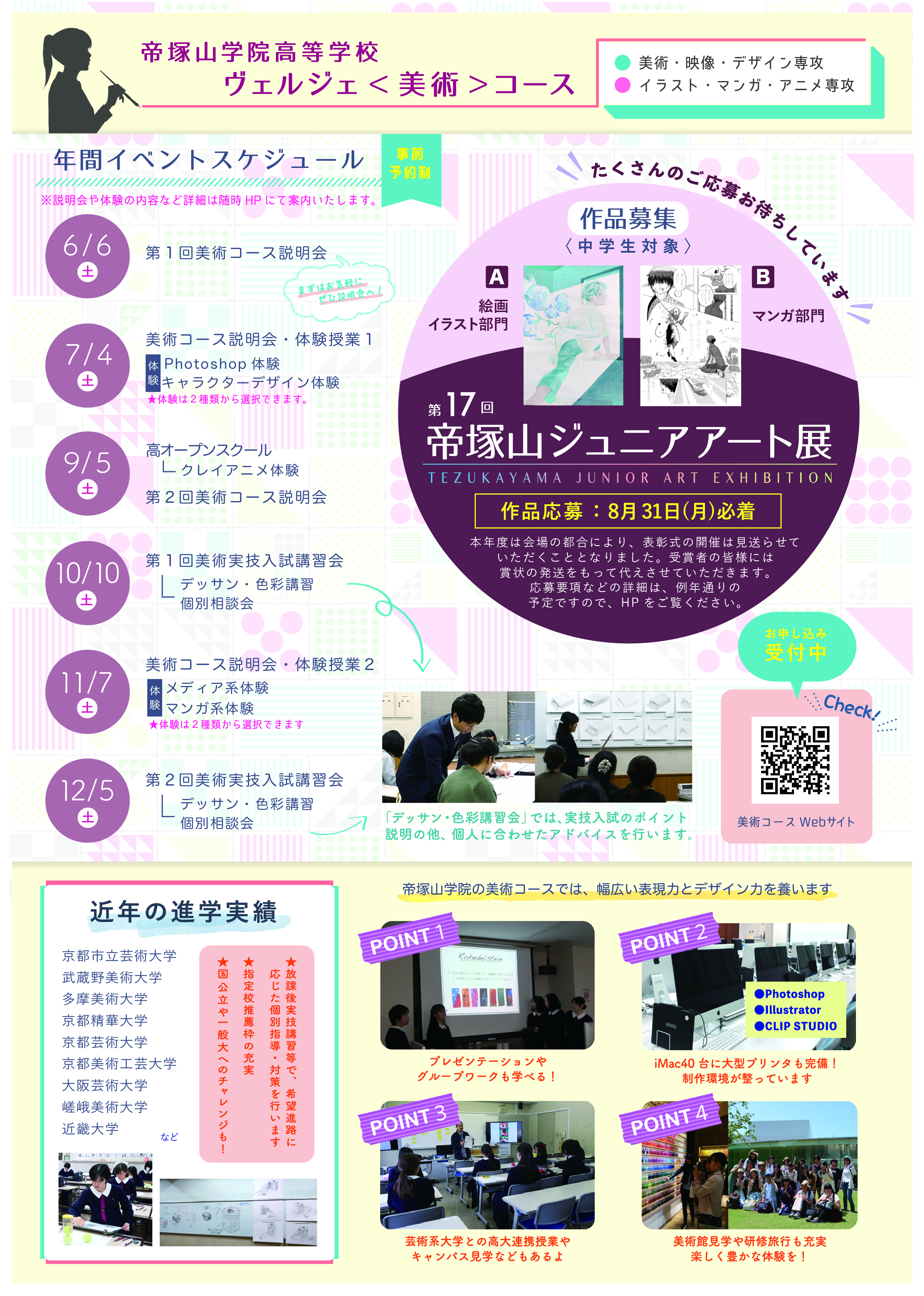 美術や映像やデザイン、イラストやマンガ、アニメーションなどを学びたい方、美術系高校をお探しの方、ぜひお気軽にお越しください。