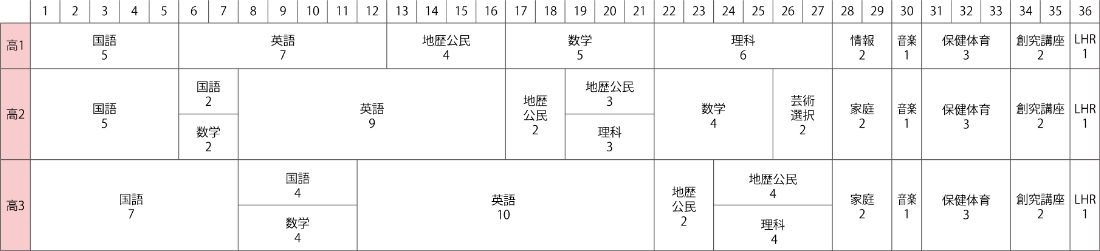※ヴェルジェ〈エトワール〉コースでは、プログレッシブ・スタディ(プロスタ)として放課後に数学(1単位)、英語(1単位)の必修講習を行います。(各45分)