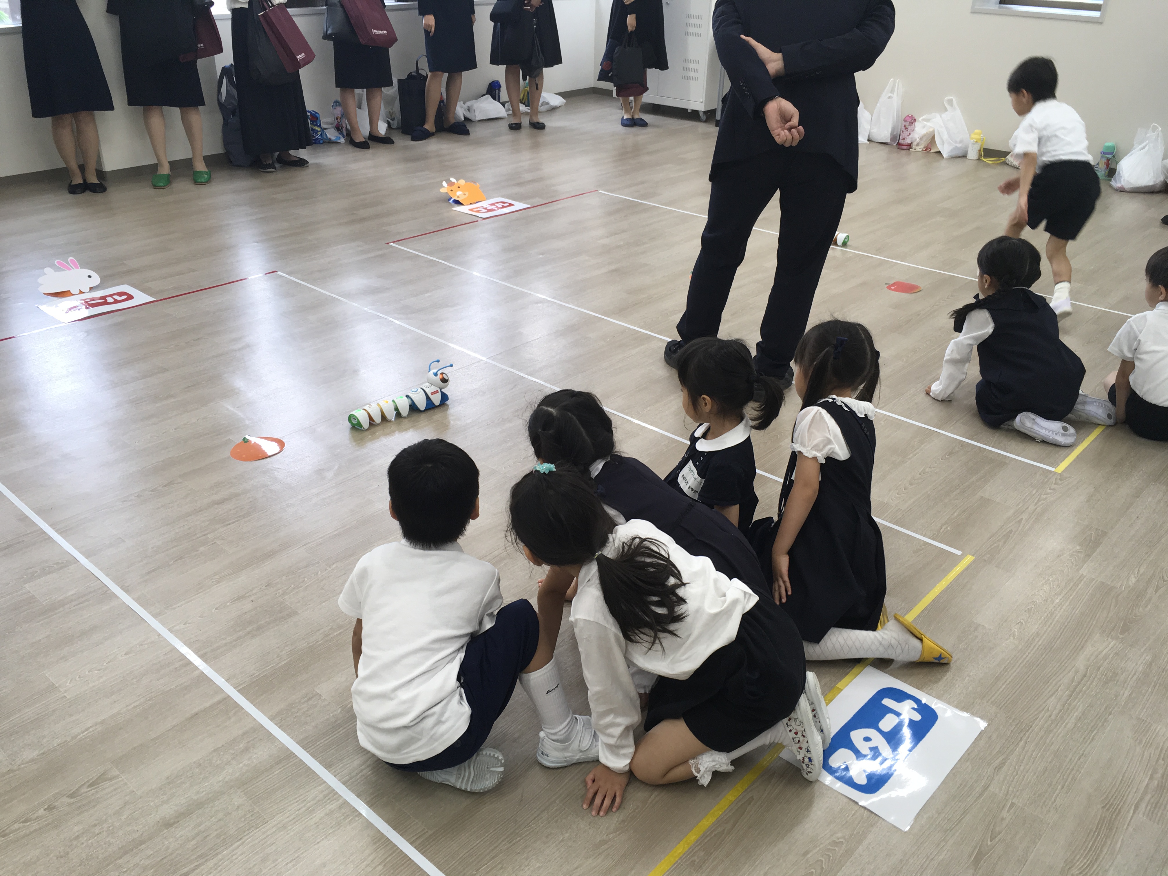 内容: 園児たちには、プログラミング体験授業(動くプログラミングおもちゃを使ってグループ活動) 保護者の皆様には、園児の授業と小学生のプログラミング講習会(テックキッズキャンプ)を見学してもらいます。