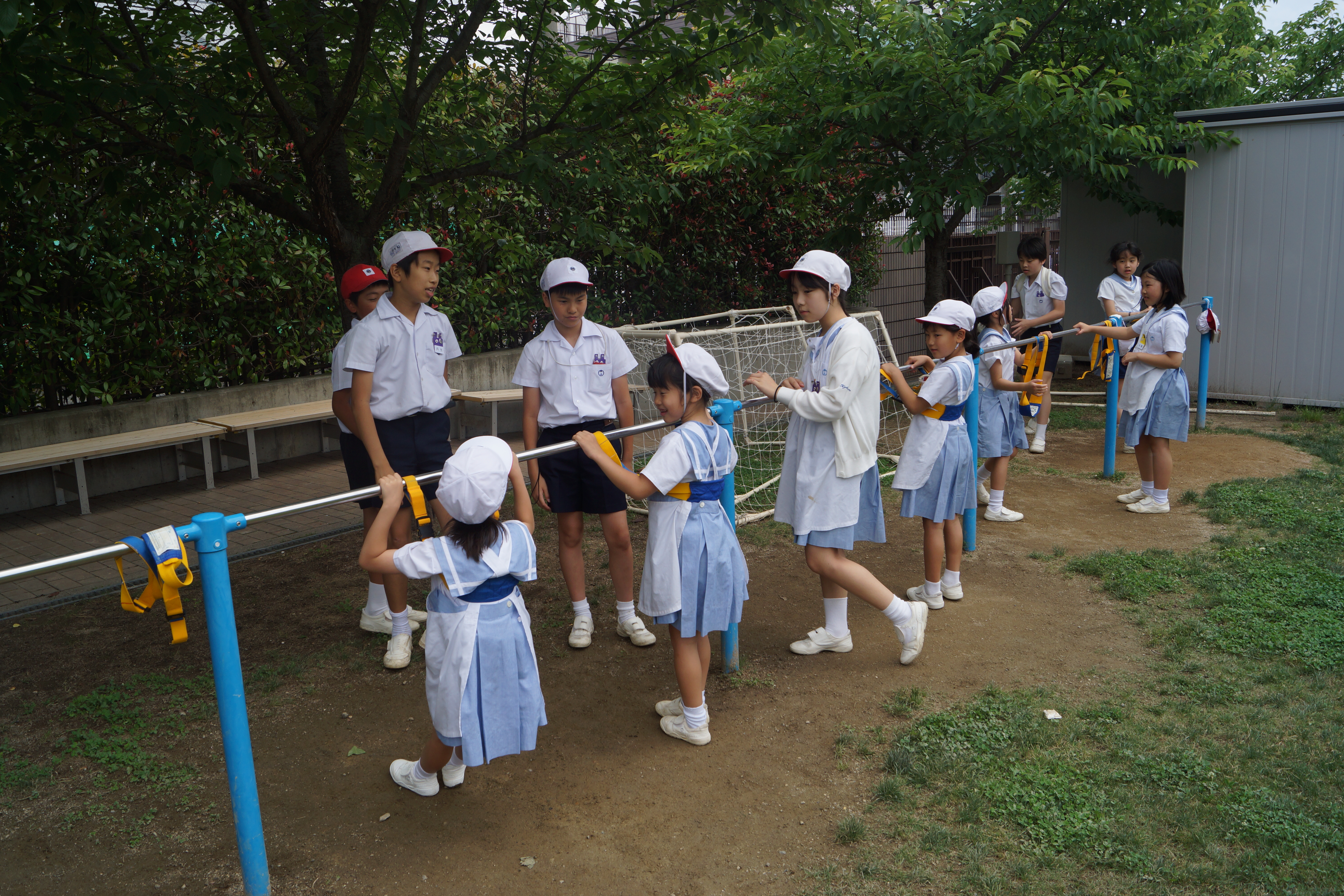 高学年の児童が低学年を優しく誘導している姿はとても微笑ましく感じました。