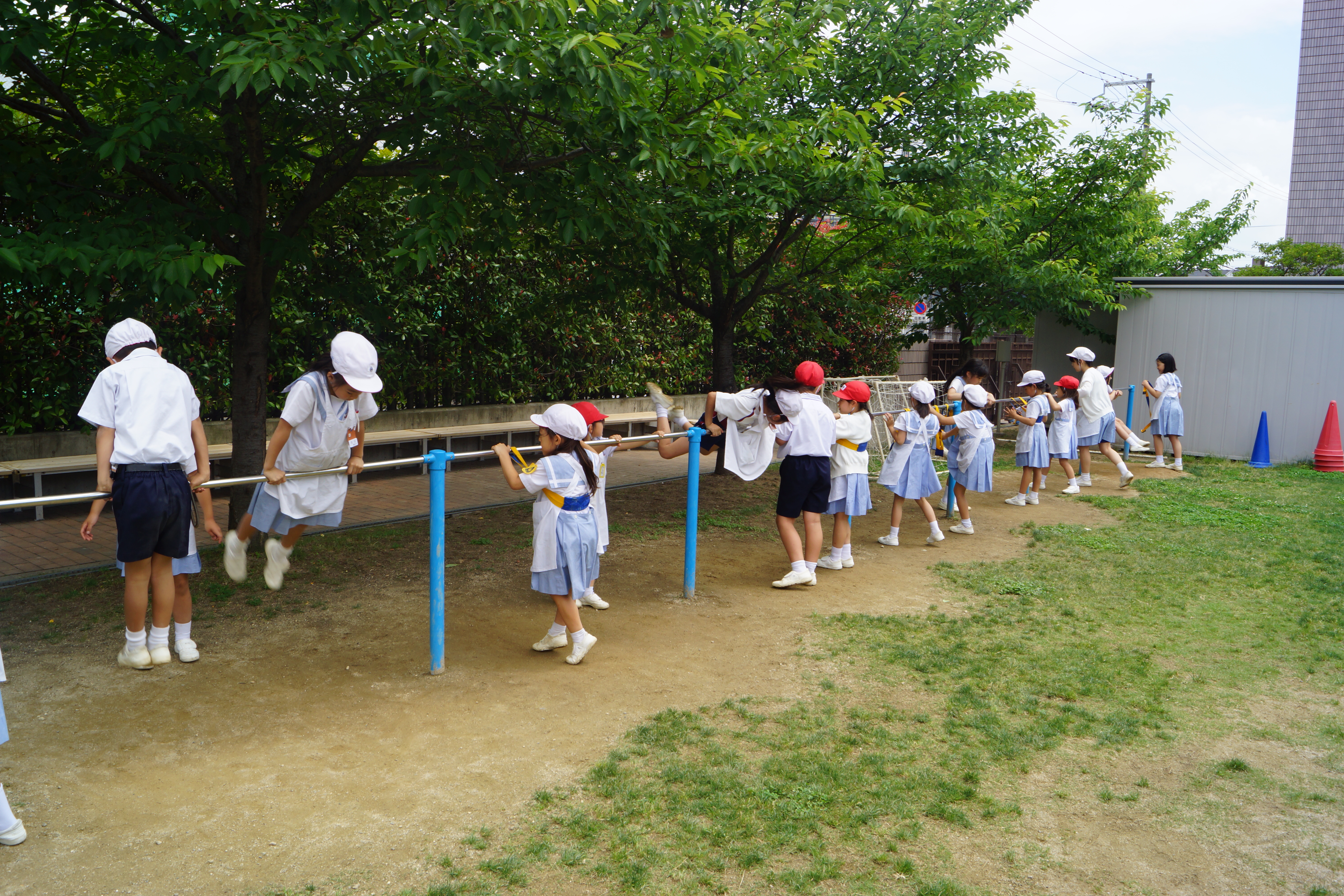 朝礼で声を掛け、毎日昼休み、鉄棒を教えてくれています。