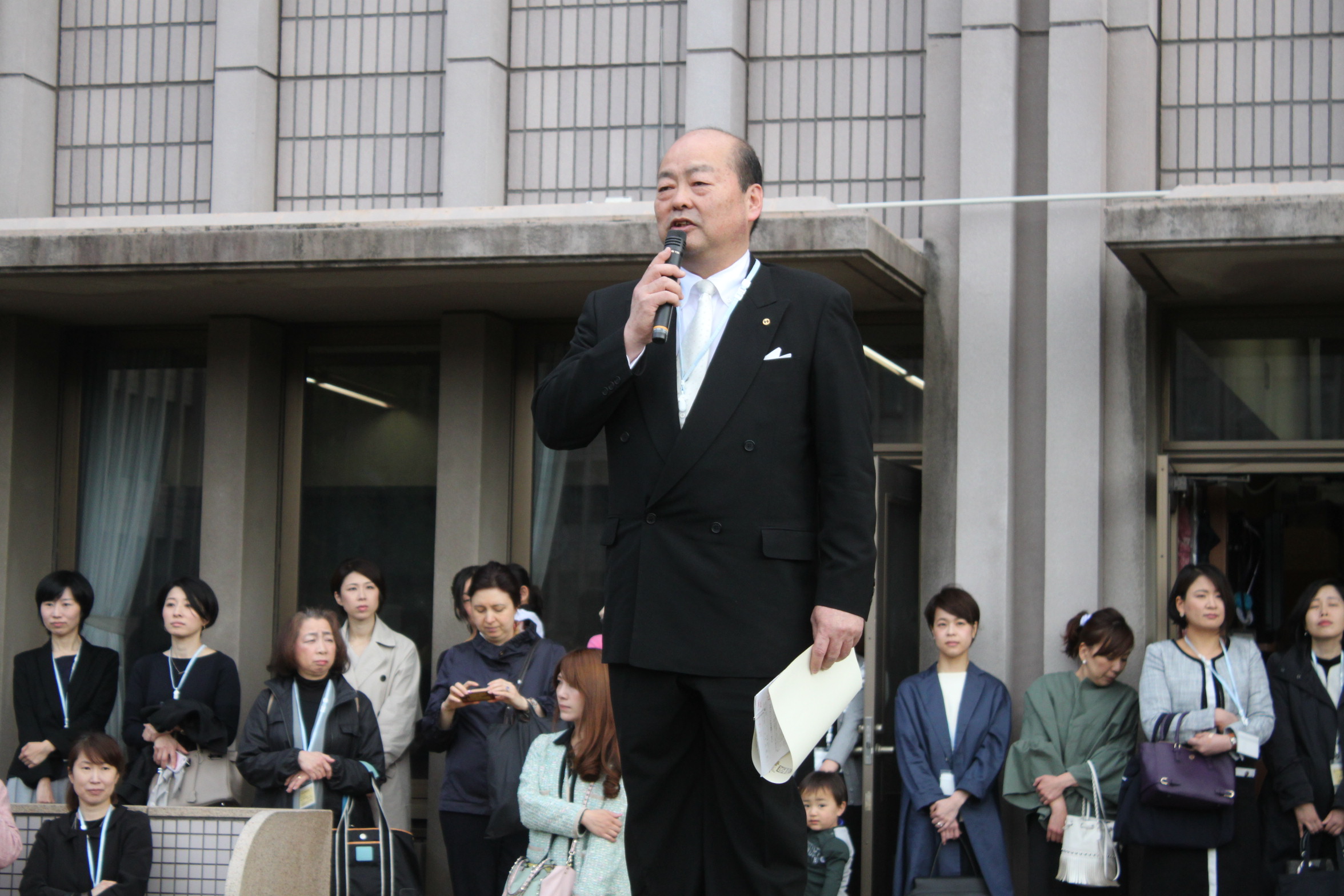 次に中学校高等学校長の瀧山先生から「100年前から変わらない帝塚山という地で幼・小・中・高が集まり100周年をお祝いできる素晴らしさと50年後も変わらず、この思いをつないでお祝いできることをお願いします。」という話がありました。
