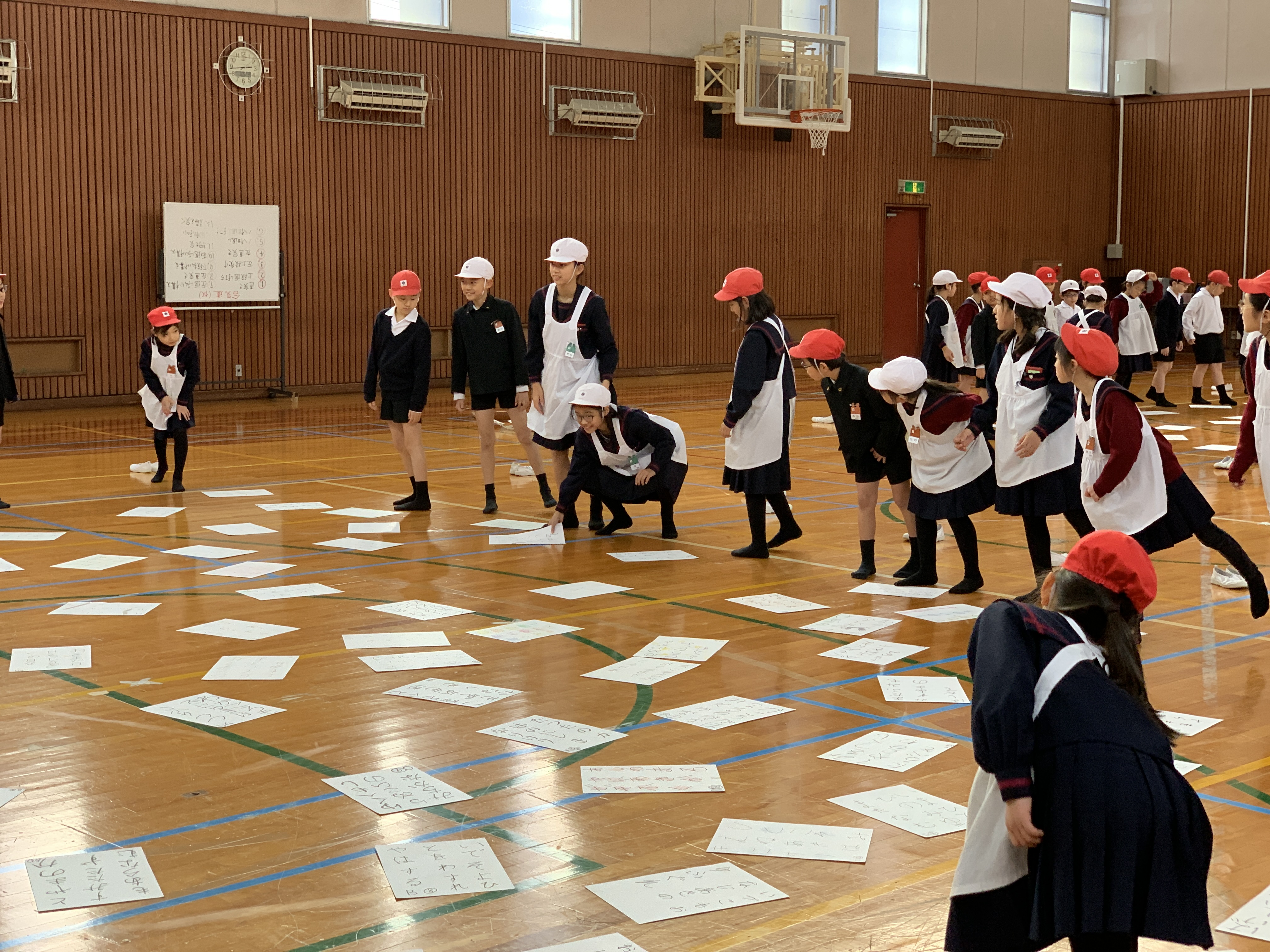 お手つきをしたり、同時に札をタッチしたり、それぞれのクラスで白熱した対戦があったようですが、全力で取り組む児童の姿も見られ、今年も熱い百人一首大会になったようです。