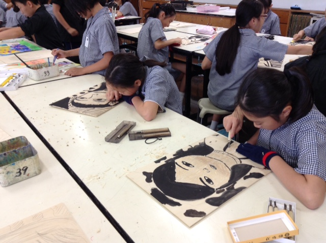 テーマは「自画像」。今の自分をしっかりと見つめて、制作を進めています。 頑張って!