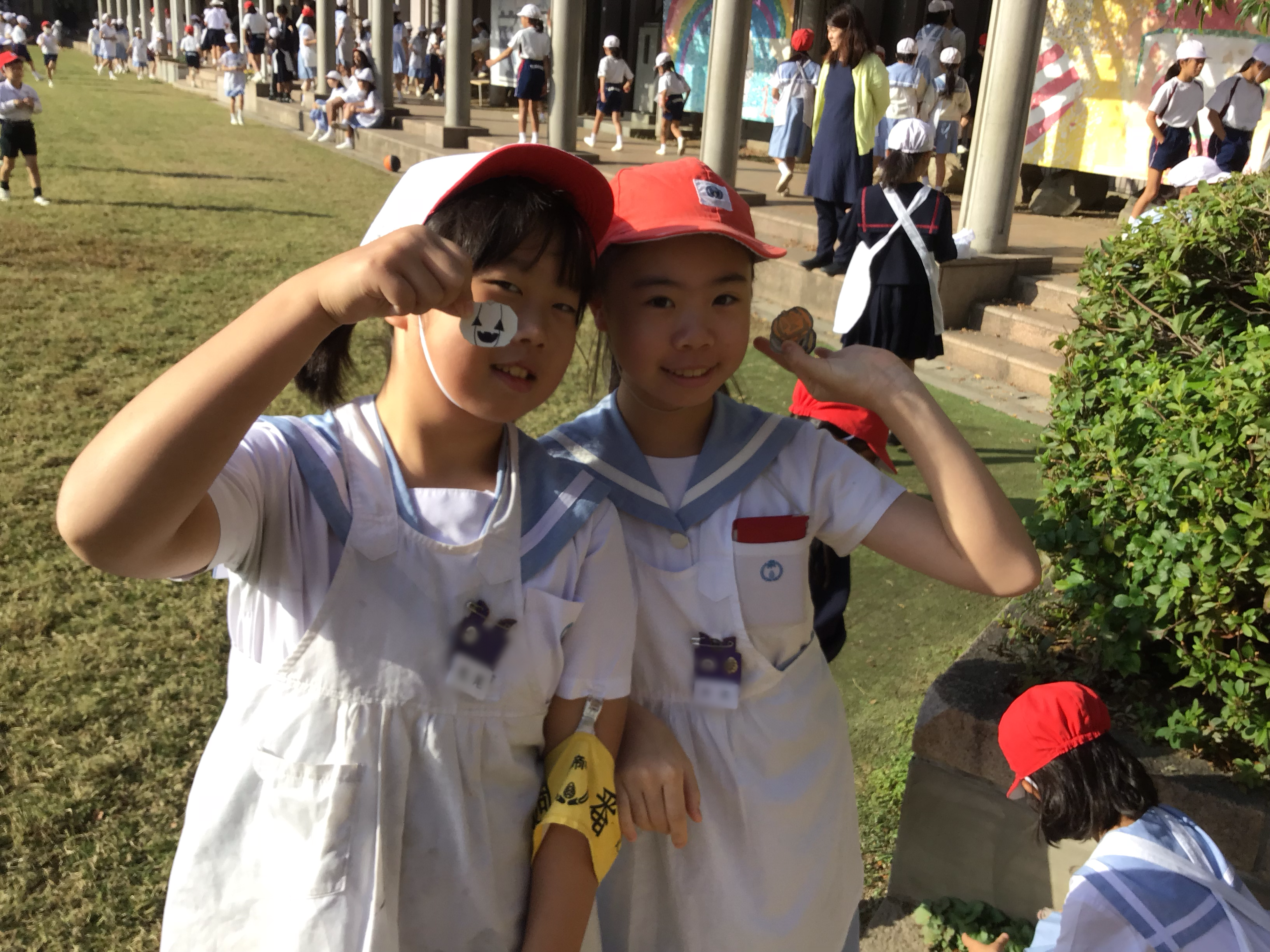 運動場のあちらこちらに隠されたパンプキンを兄弟学級で探し出し、その合計数を競うゲームです。みんなワクワクした様子で色々な場所を周ってはジャコランタン風のパンプキンを見つけていました。