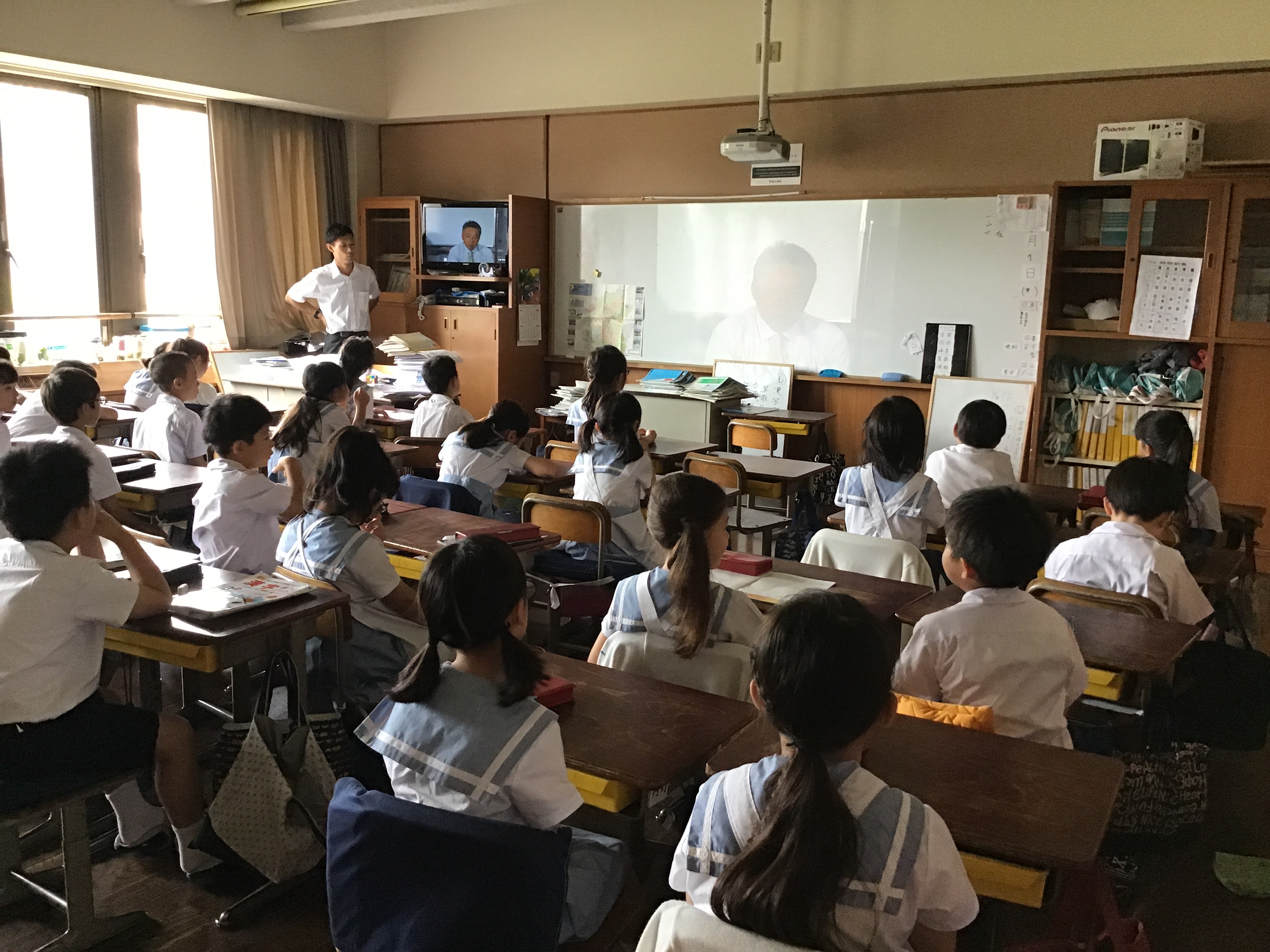 今朝は雨天のため全校朝礼に代わり、TV朝礼が行われました。