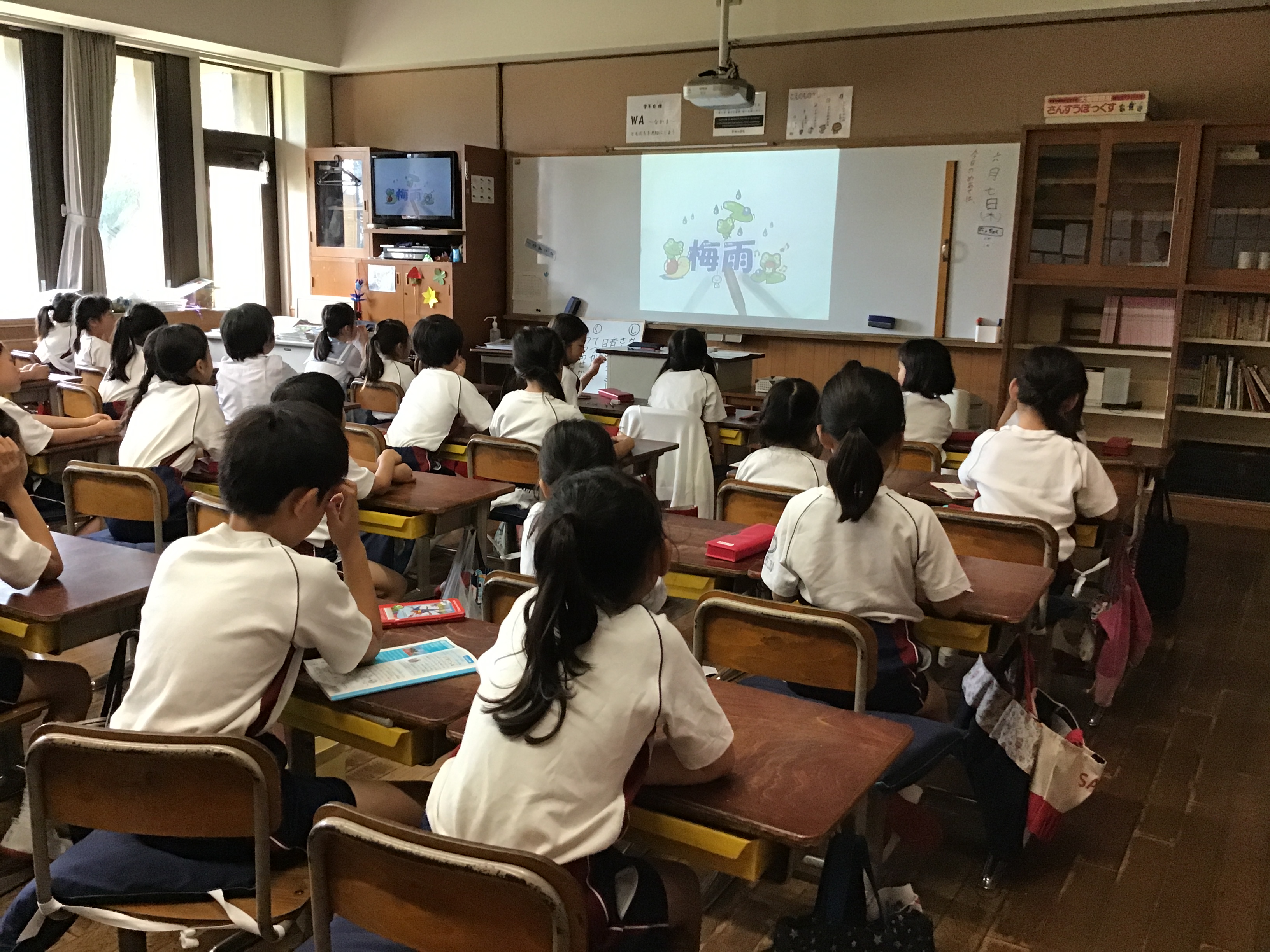 また週番の先生からは、梅雨についてクイズ形式で紹介があり、様々な天気の知識を学ぶ機会となりました。