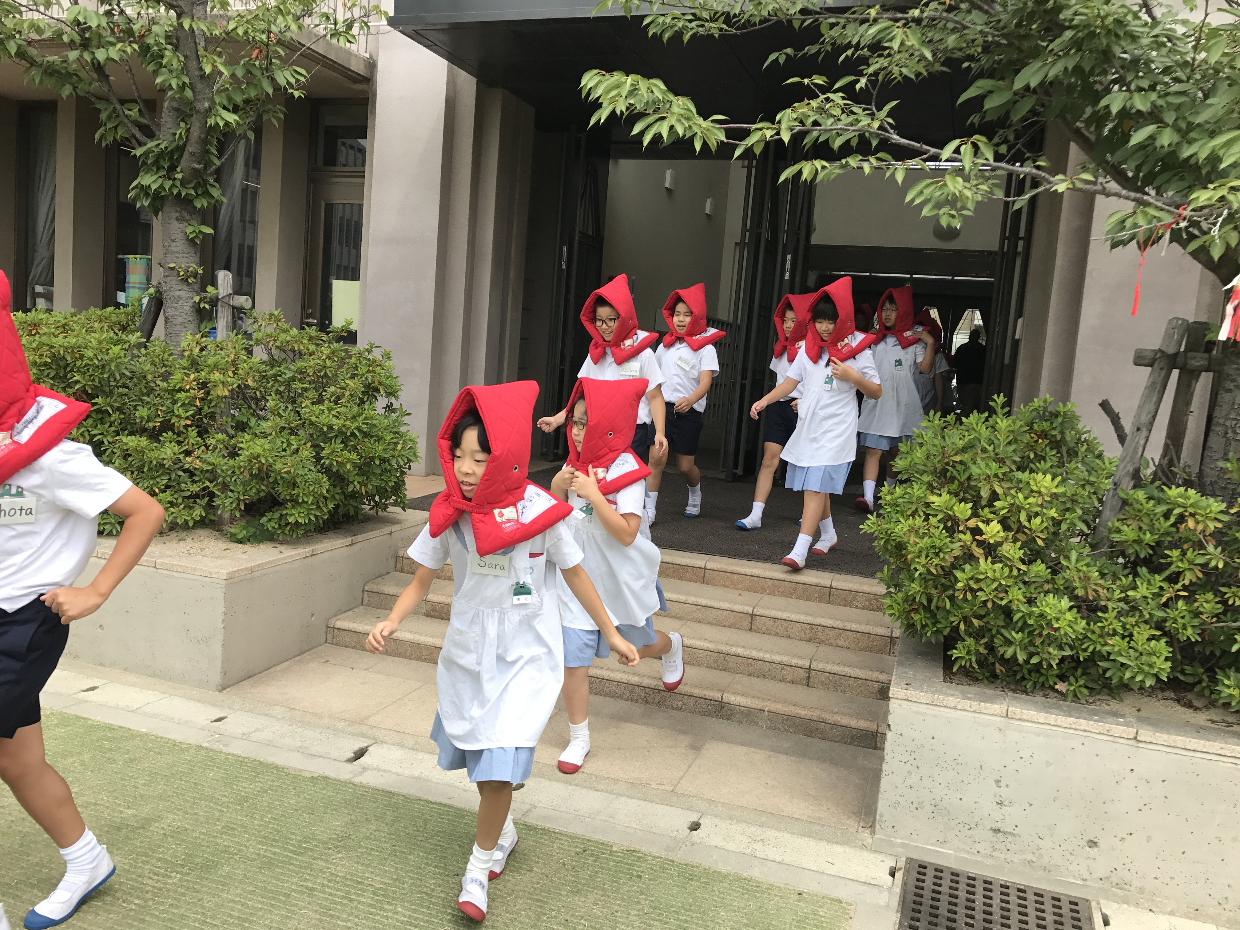 子どもたちなりに緊張感をもって行動してくれていましたが、頭巾をかぶっての訓練は、少し楽しそうでもありました。
