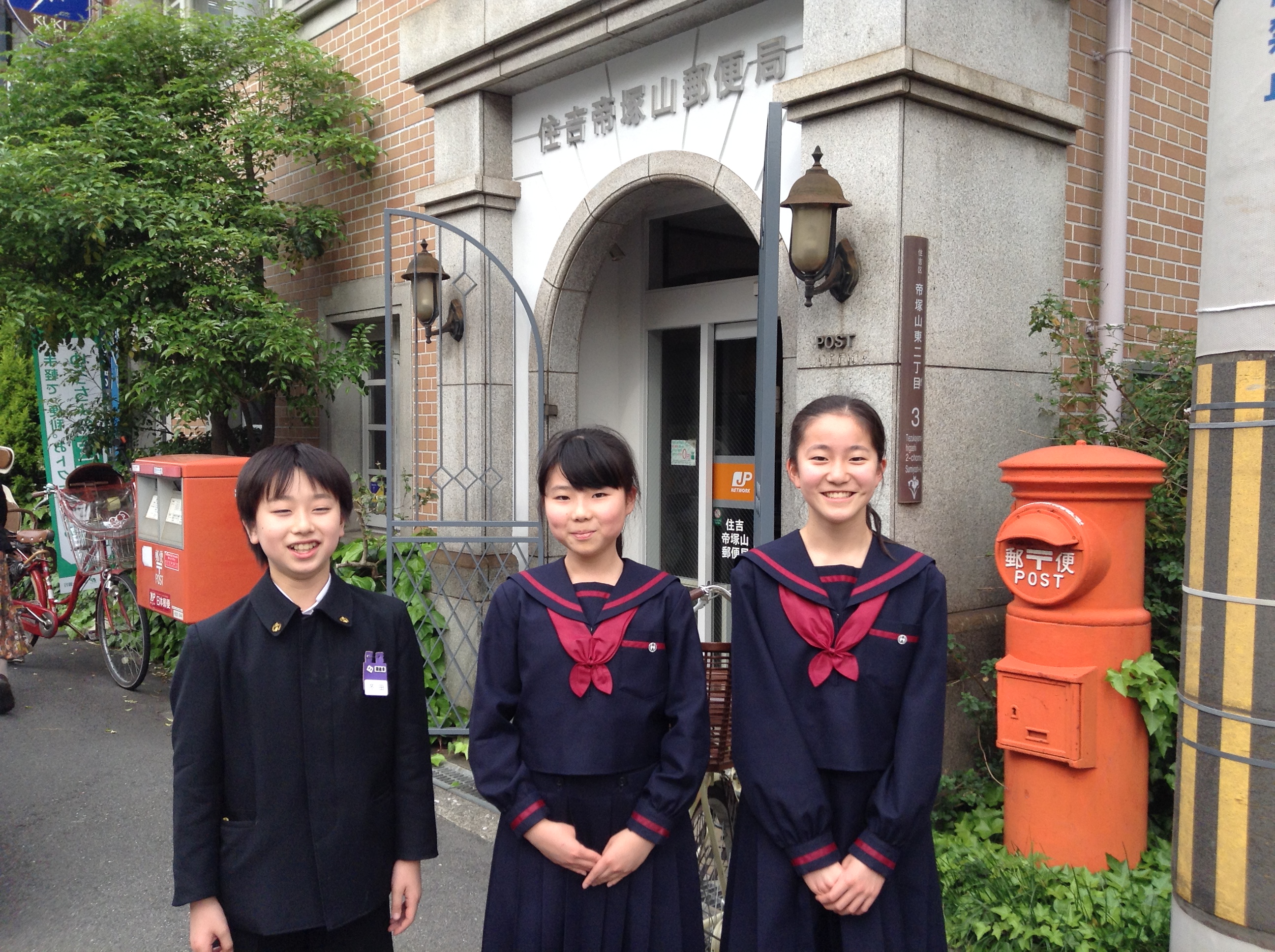 児童会役員が、郵便局にお預かりしたお金を持っていき日本赤十字社に送りました。