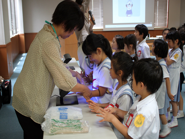 手を洗う方法、手洗いの大切さをしっかり学ぶことができました。