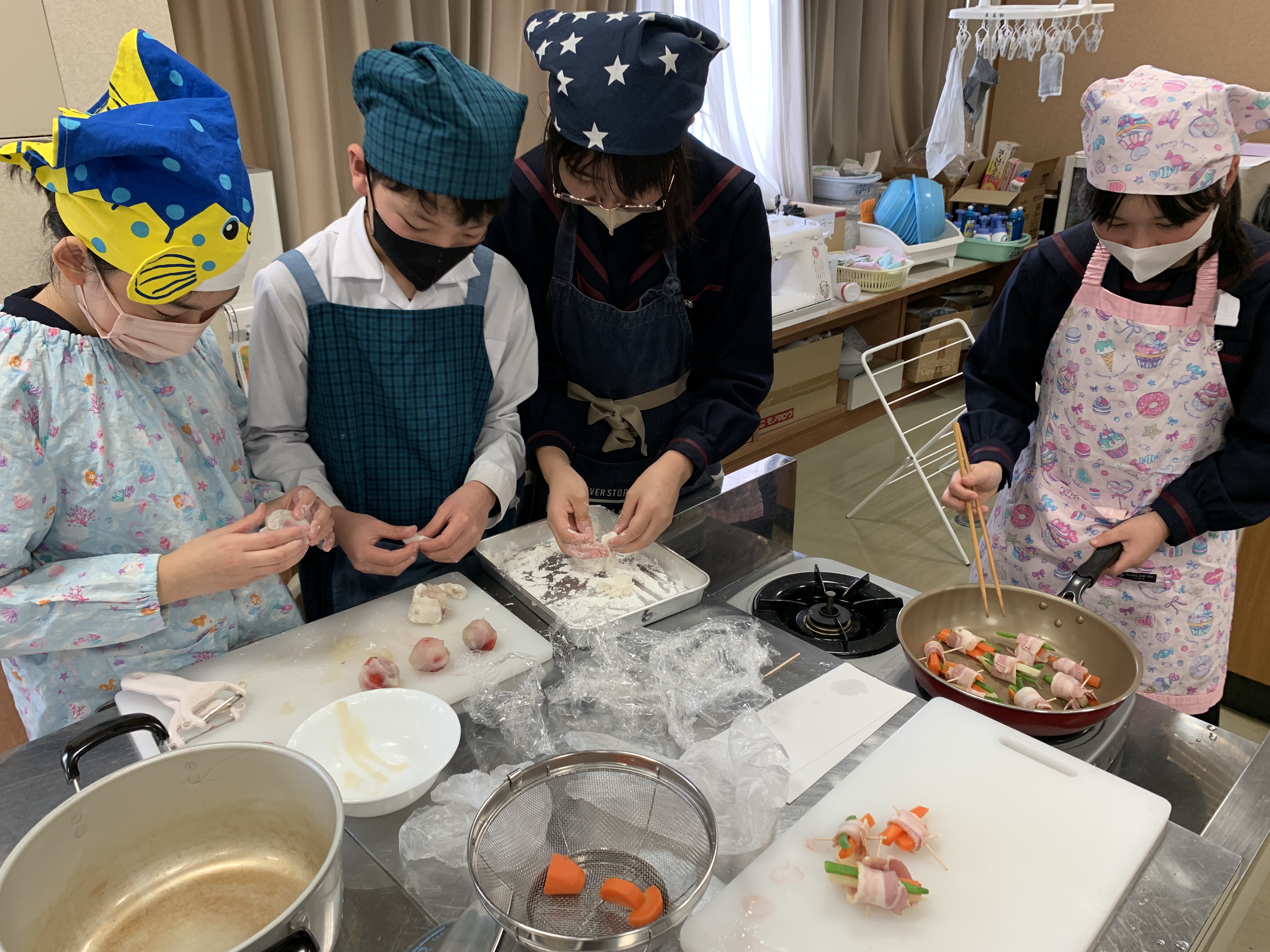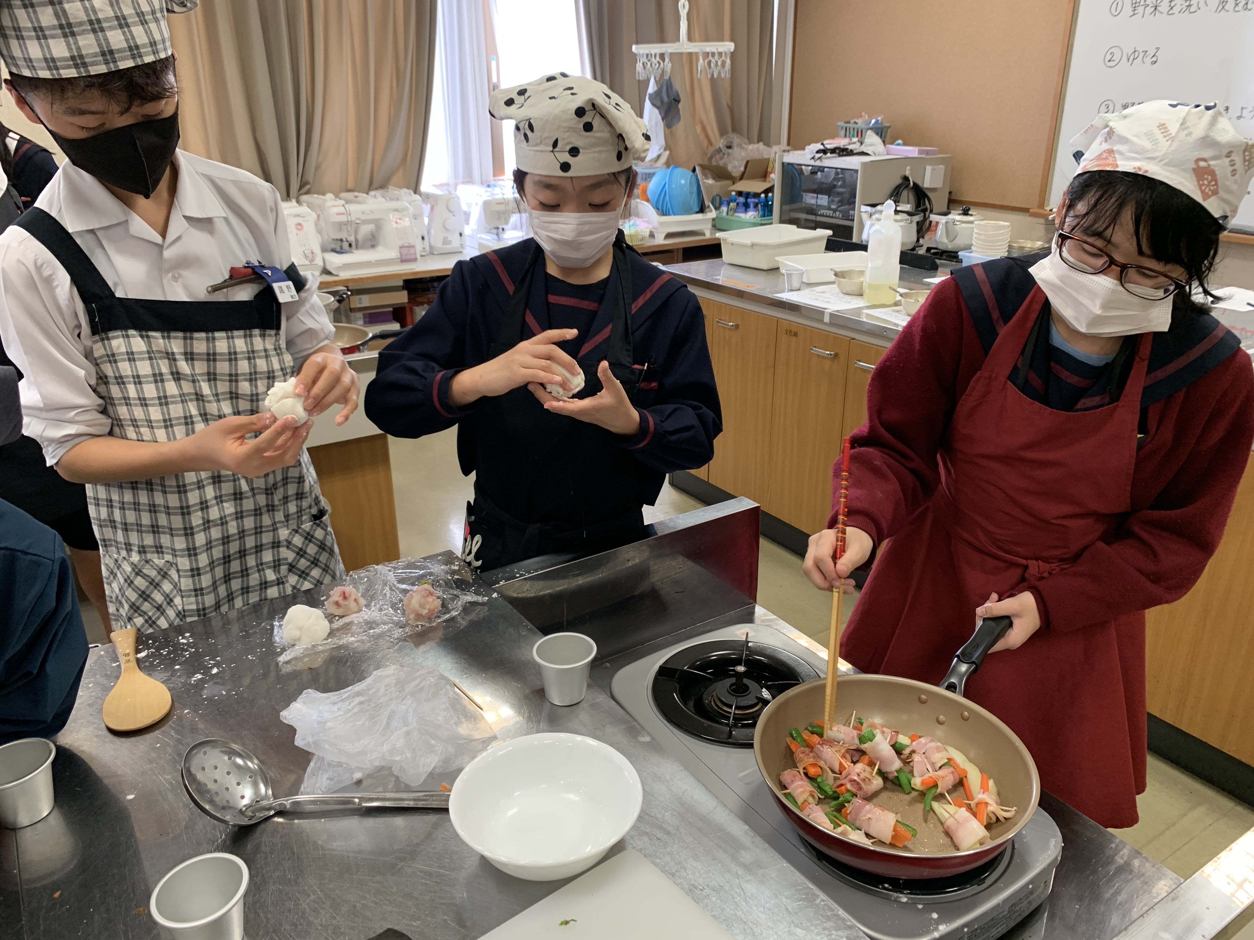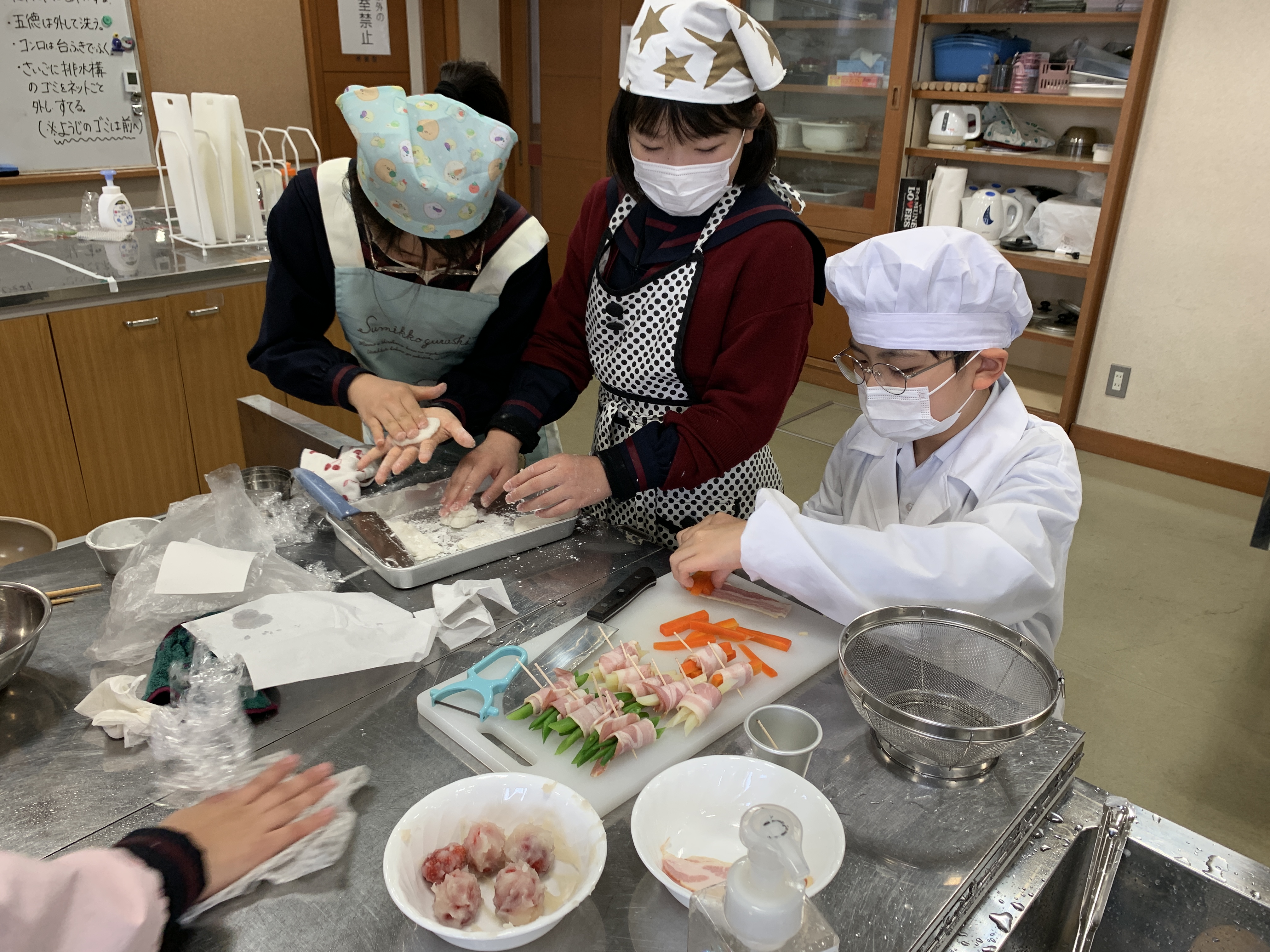今回は、「野菜のベーコン巻き」と、「いちご大福」に挑戦しました。