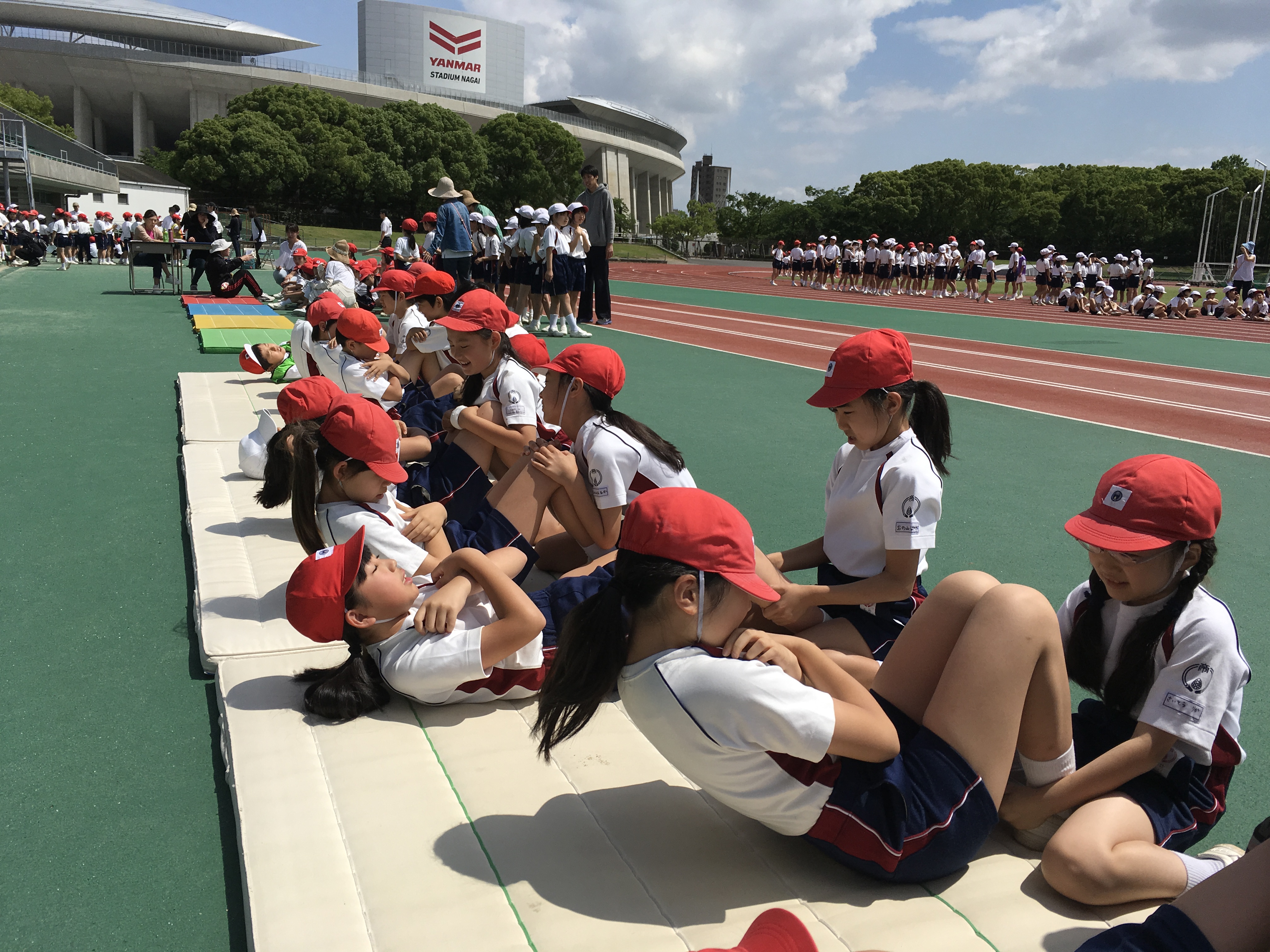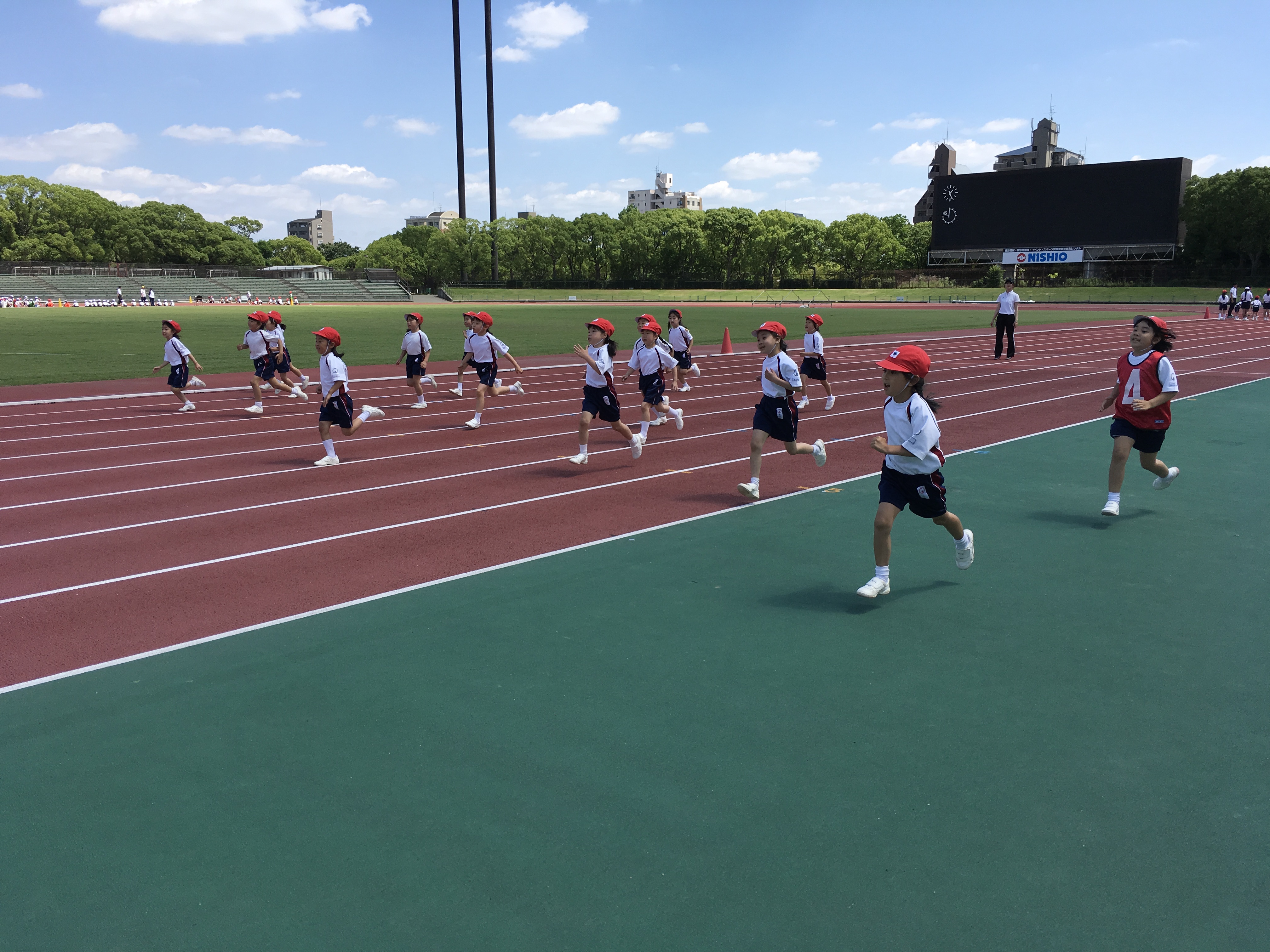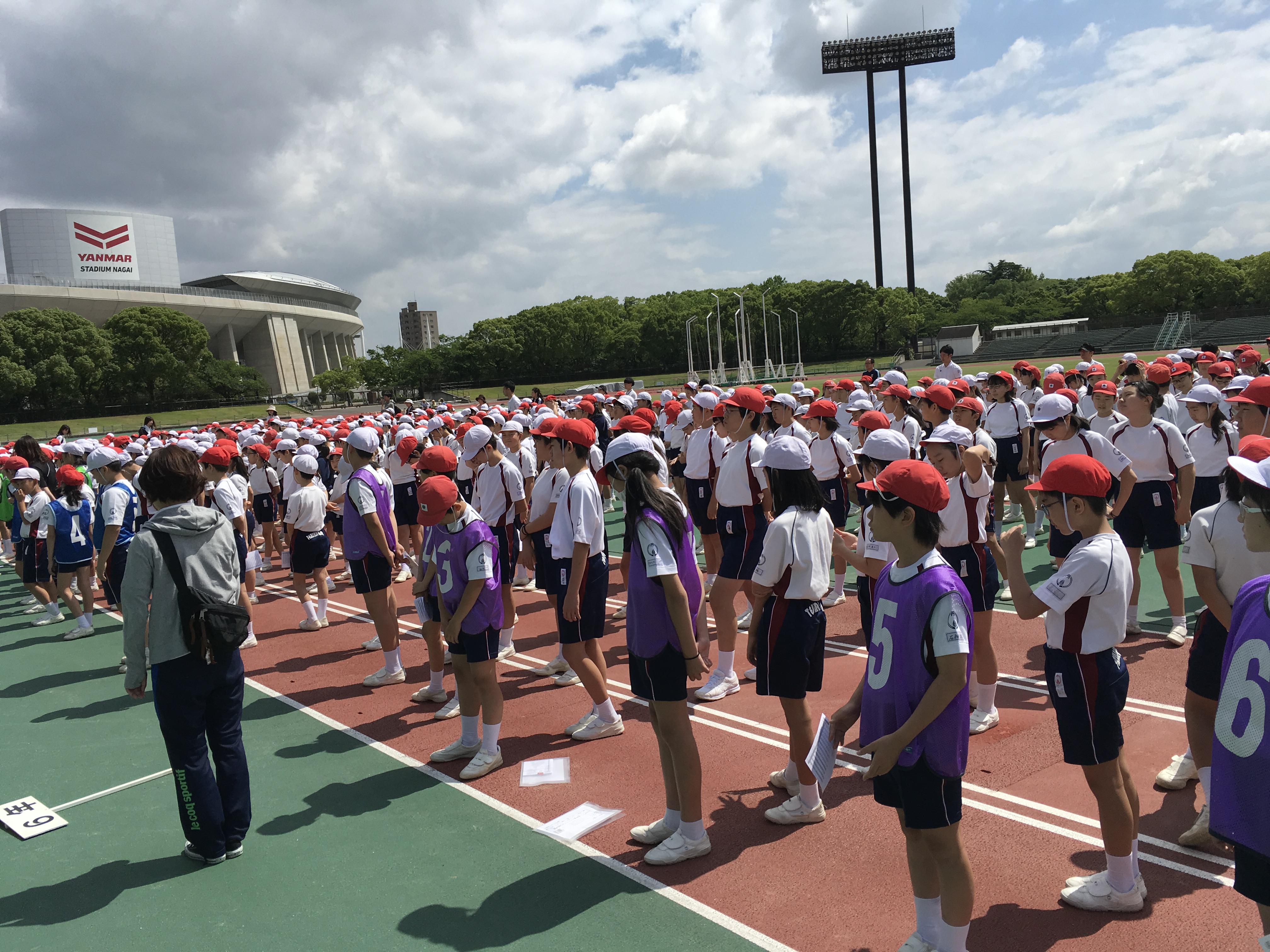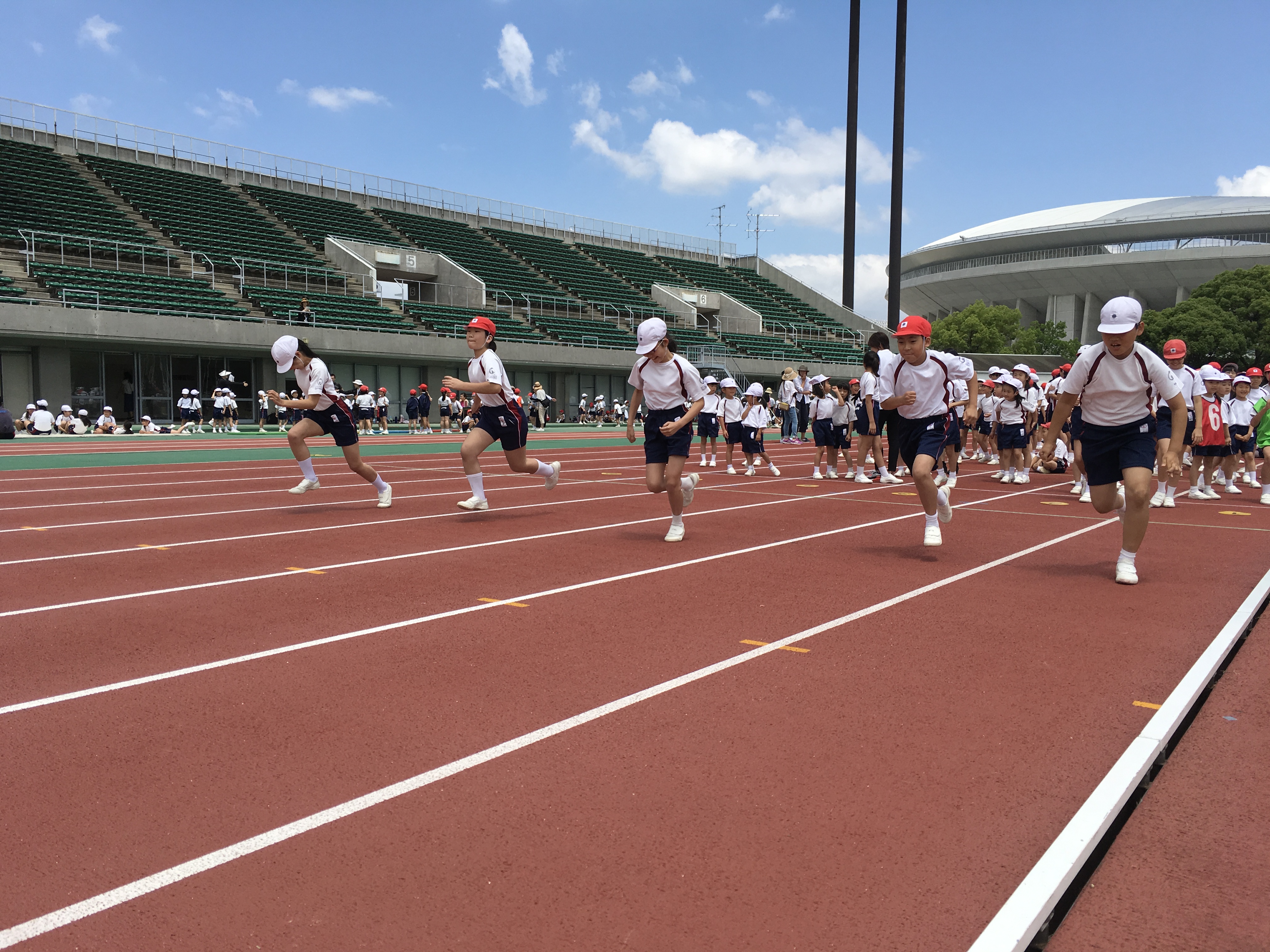 本日、ヤンマーフィールド長居で体力テストを行いました。 本物の競技場に子どもたちは大興奮でした。 陸上用のタータンは走りやすく、運動場よりも速く走れそうです。 お天気にも恵まれ、雲一つない青空の下、思いきり力を出し切りました。 子どもたちは普段から、毎日よく体を動かし、運動を続けています。 そんな1年間の体力の高まりを感じる一日となりました。 最後になりましたが、お暑い中お手伝いしていただいた保護者の皆様ご協力ありがとうございました。