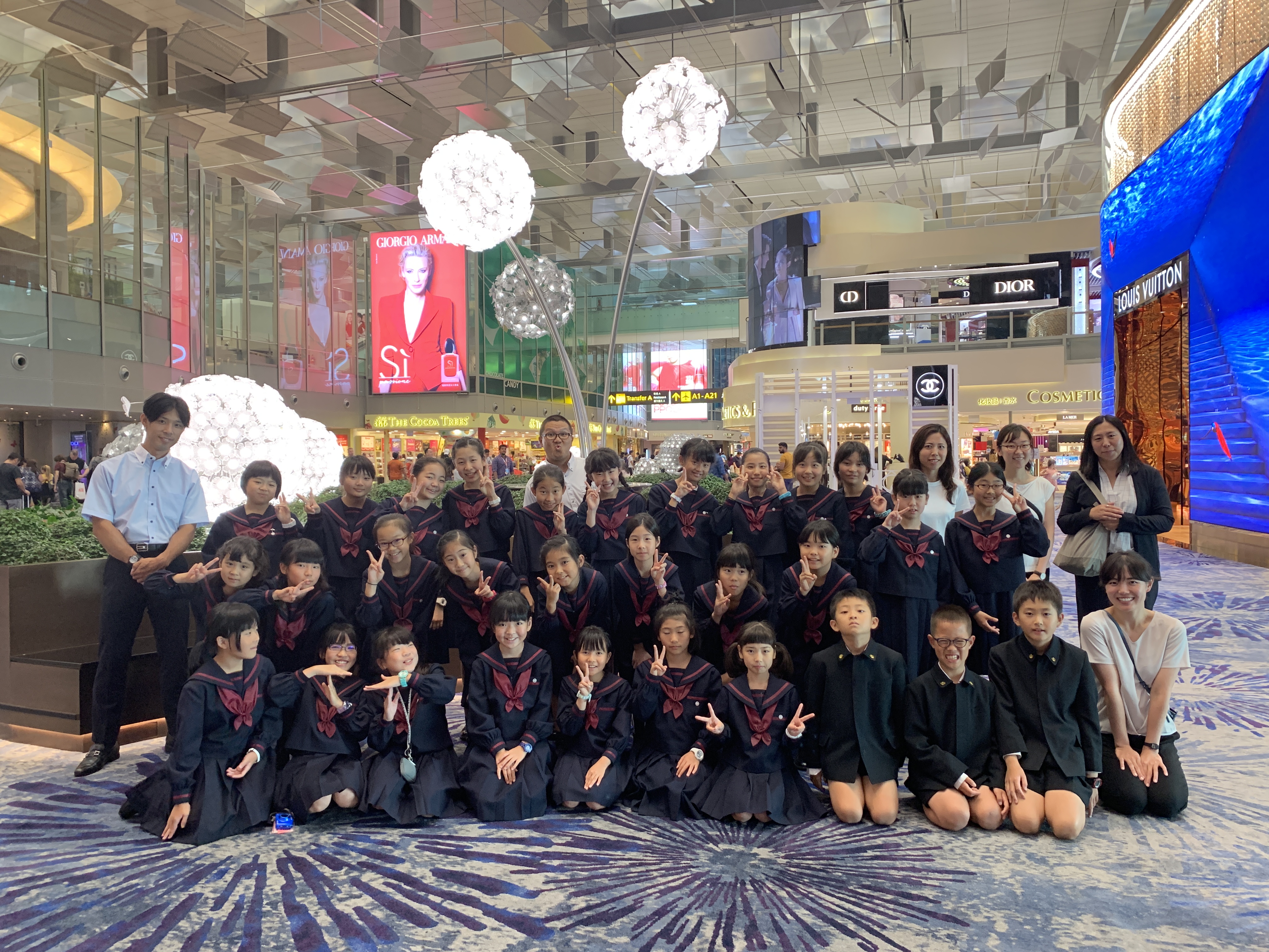 朝礼でウェルカムセレモニーをしていただいた後、3つのグループに分かれ、現地の児童達と授業を受けました。