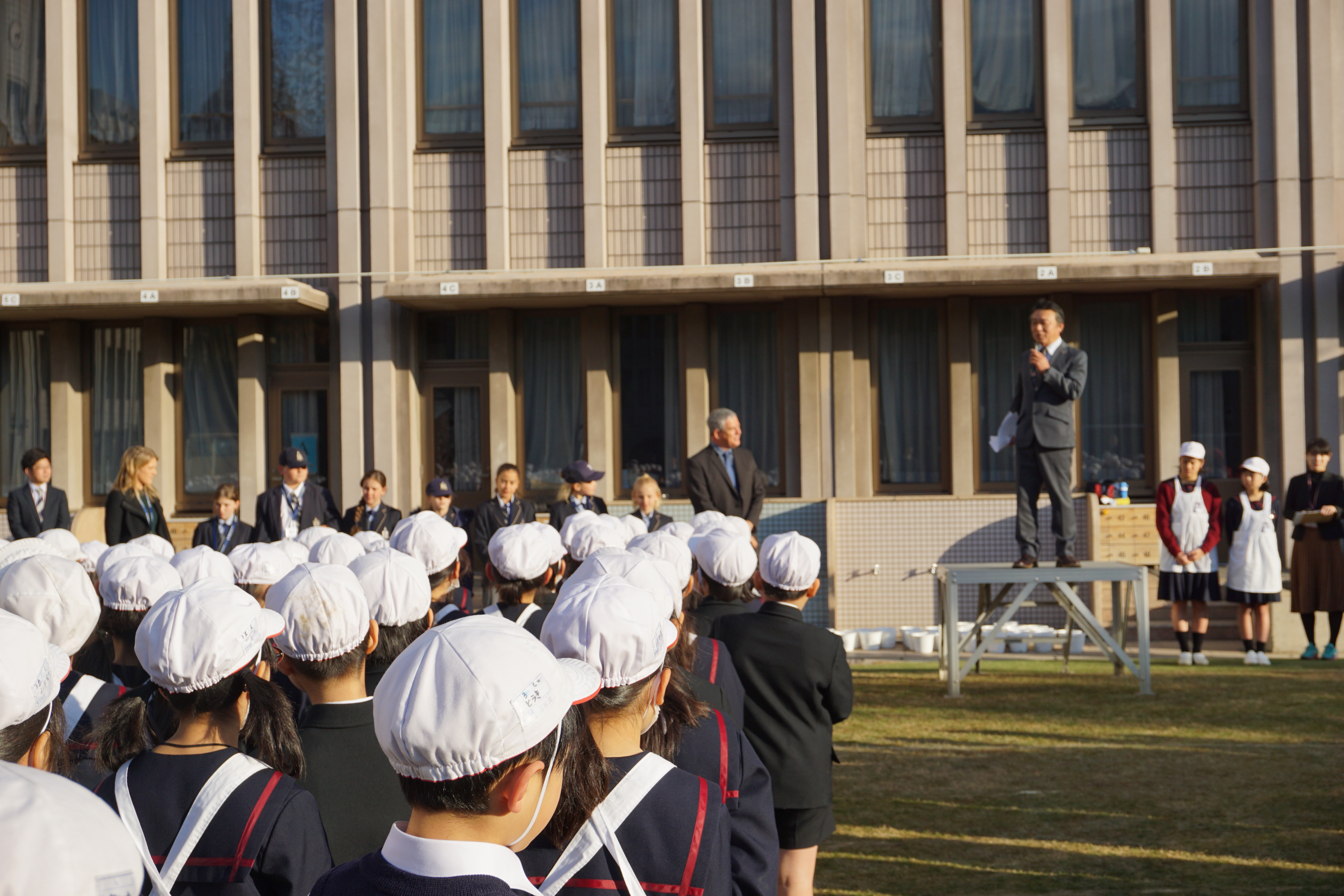 本日、The Armidale Schoolの皆さんをお迎えする、ウェルカムセレモニーが全校朝礼にてありました。