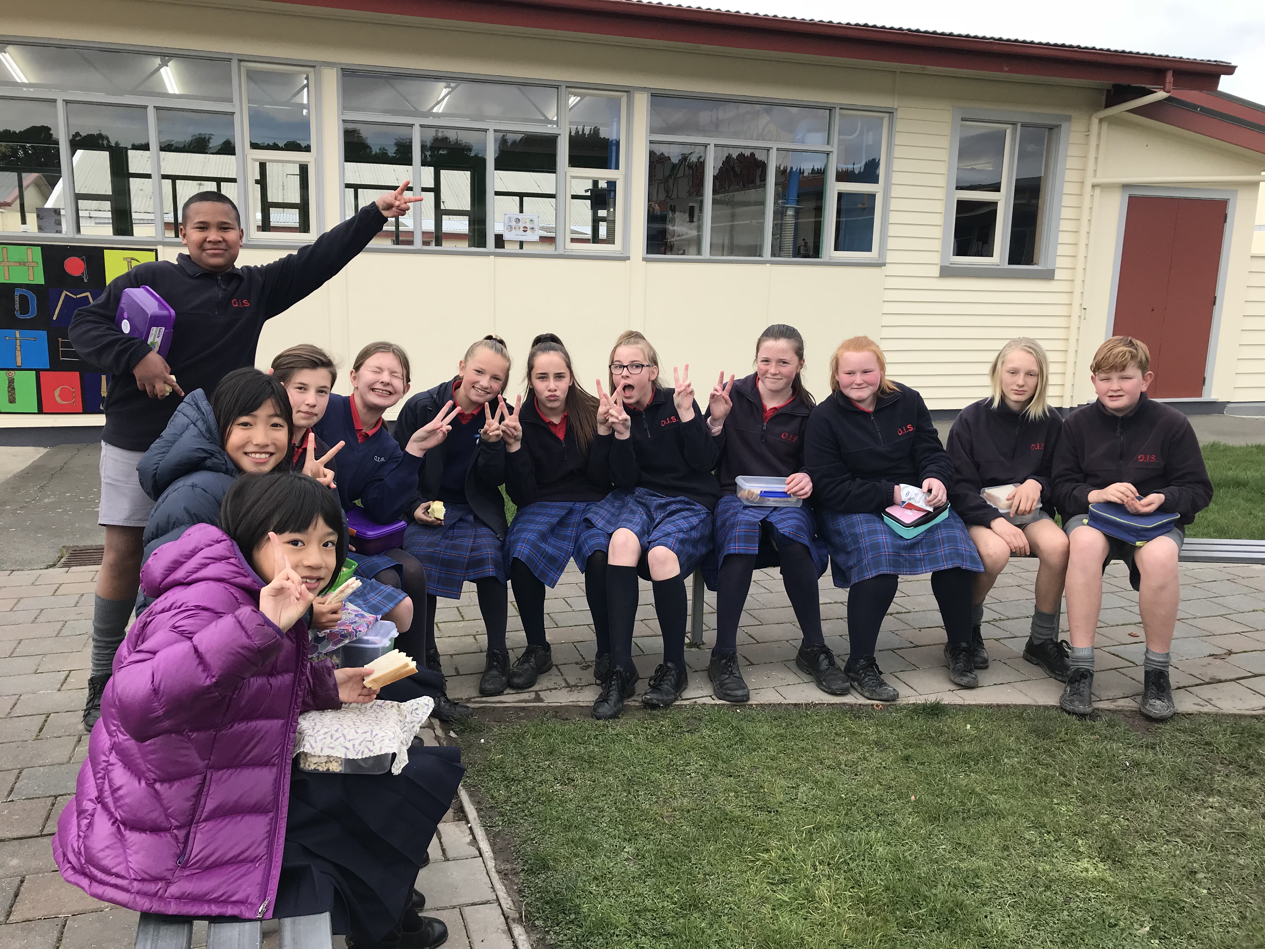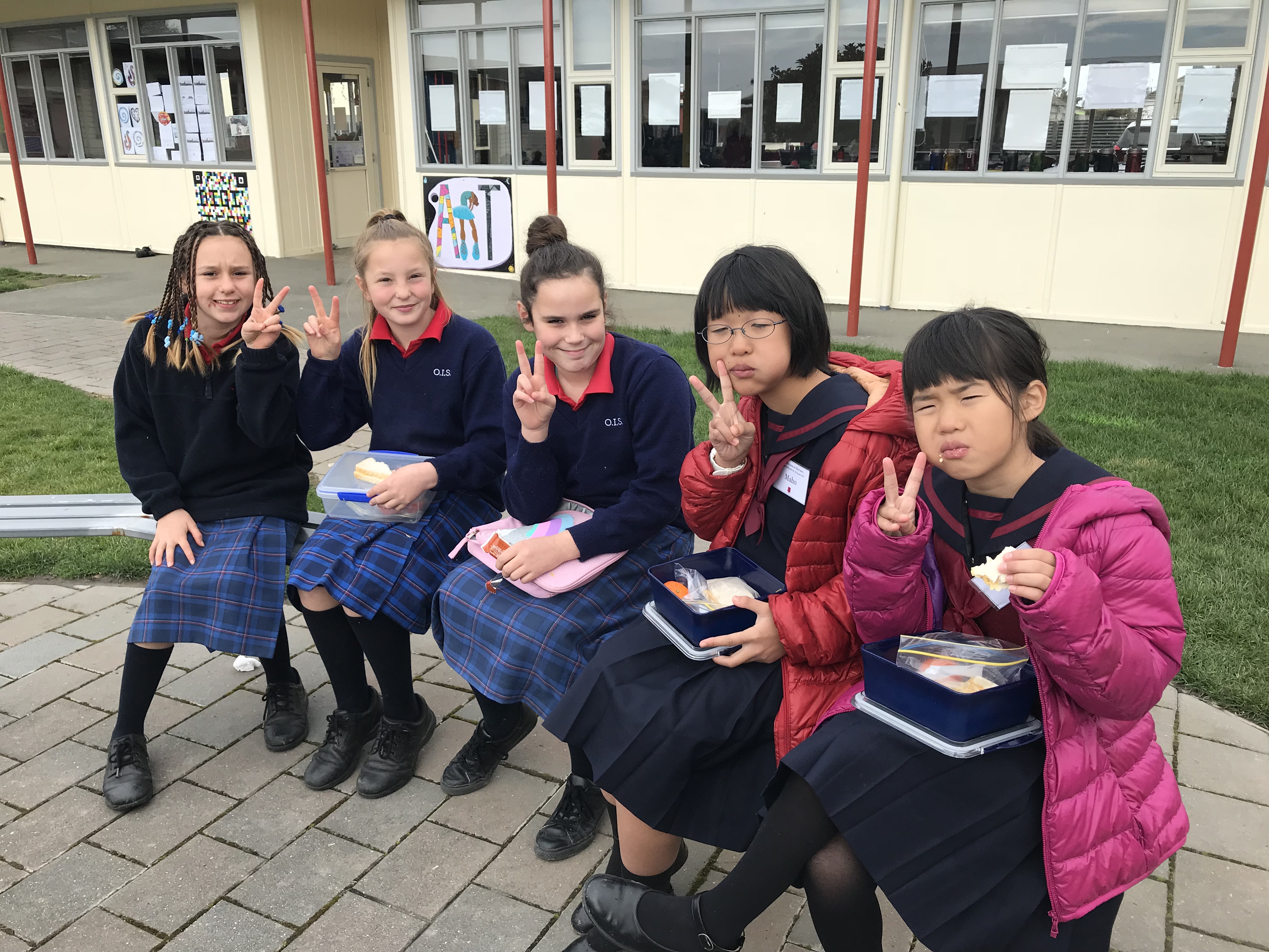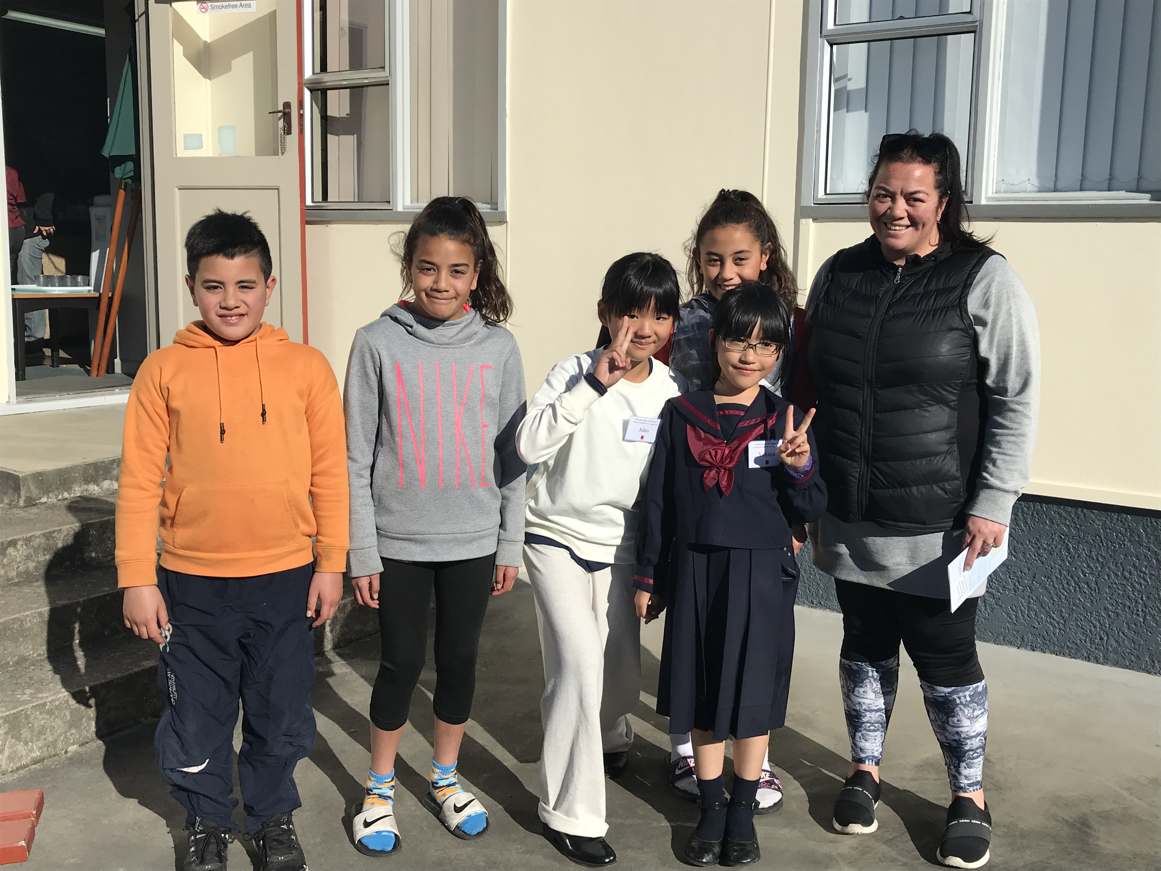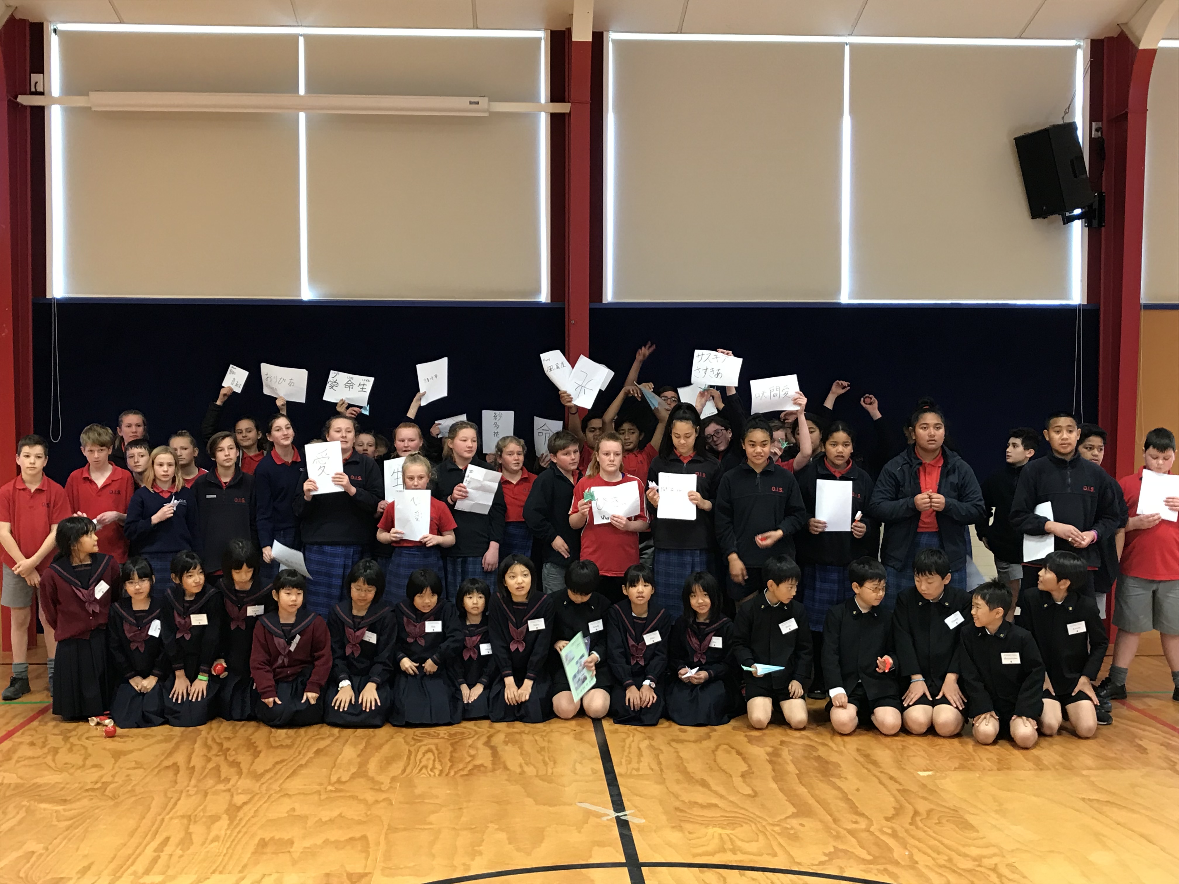 今日は最後の登校日です。午前中1時間目は一緒に最後のバディー授業を受けさせてもらいました。2時間目は日本文化紹介でした。習字や折り紙、日本の遊びなどを紹介し、現地の子どもたちと楽しく遊びました。Oamaruの生徒たちにも気に入ってもらえたみたいでよかったです。