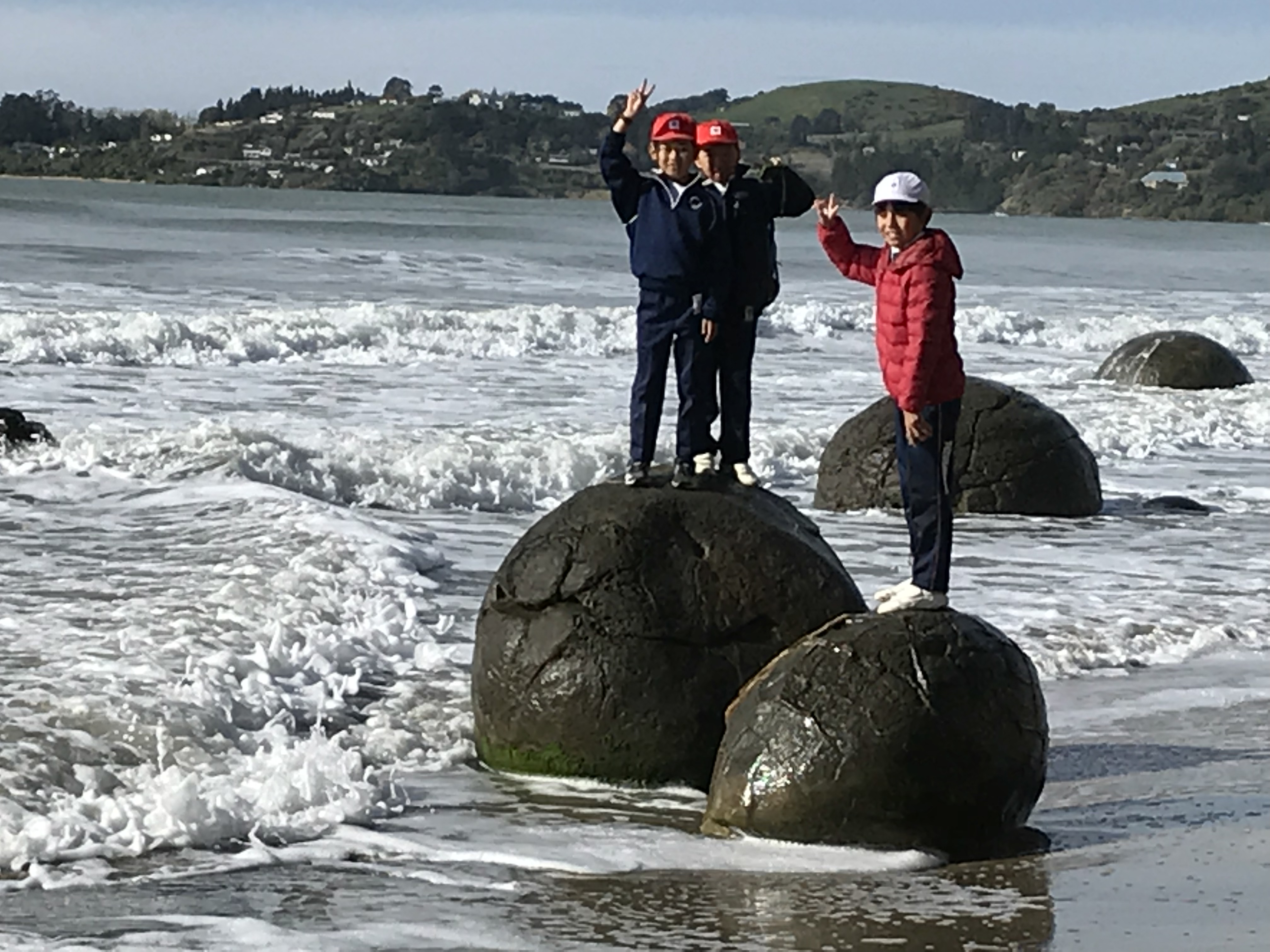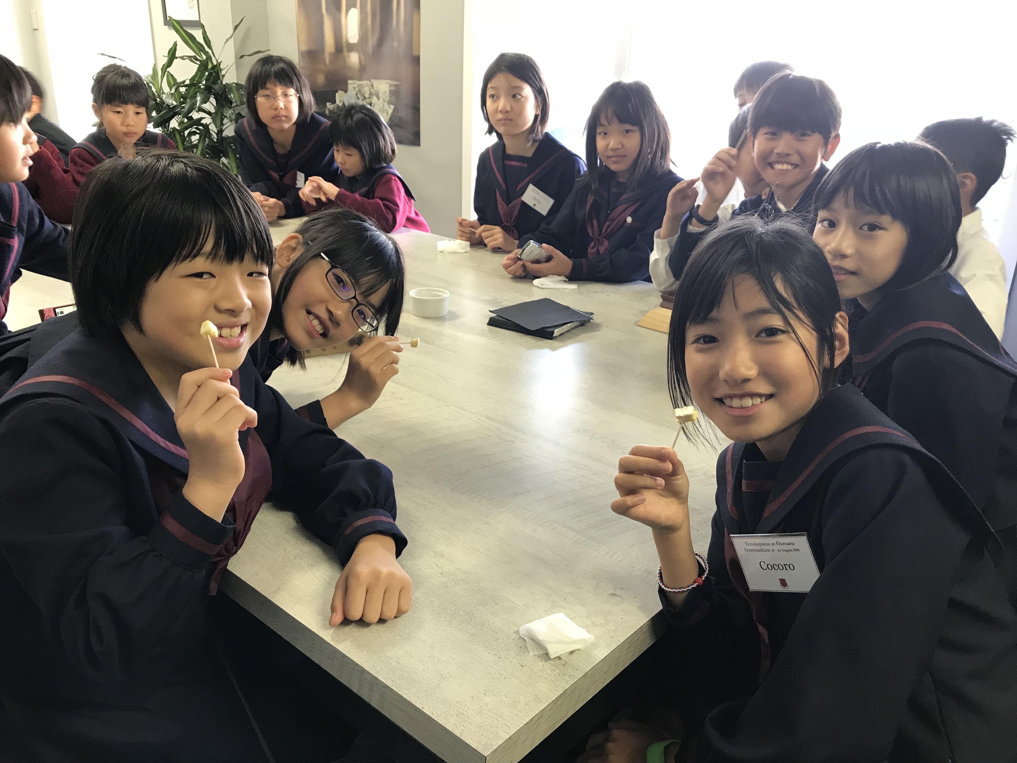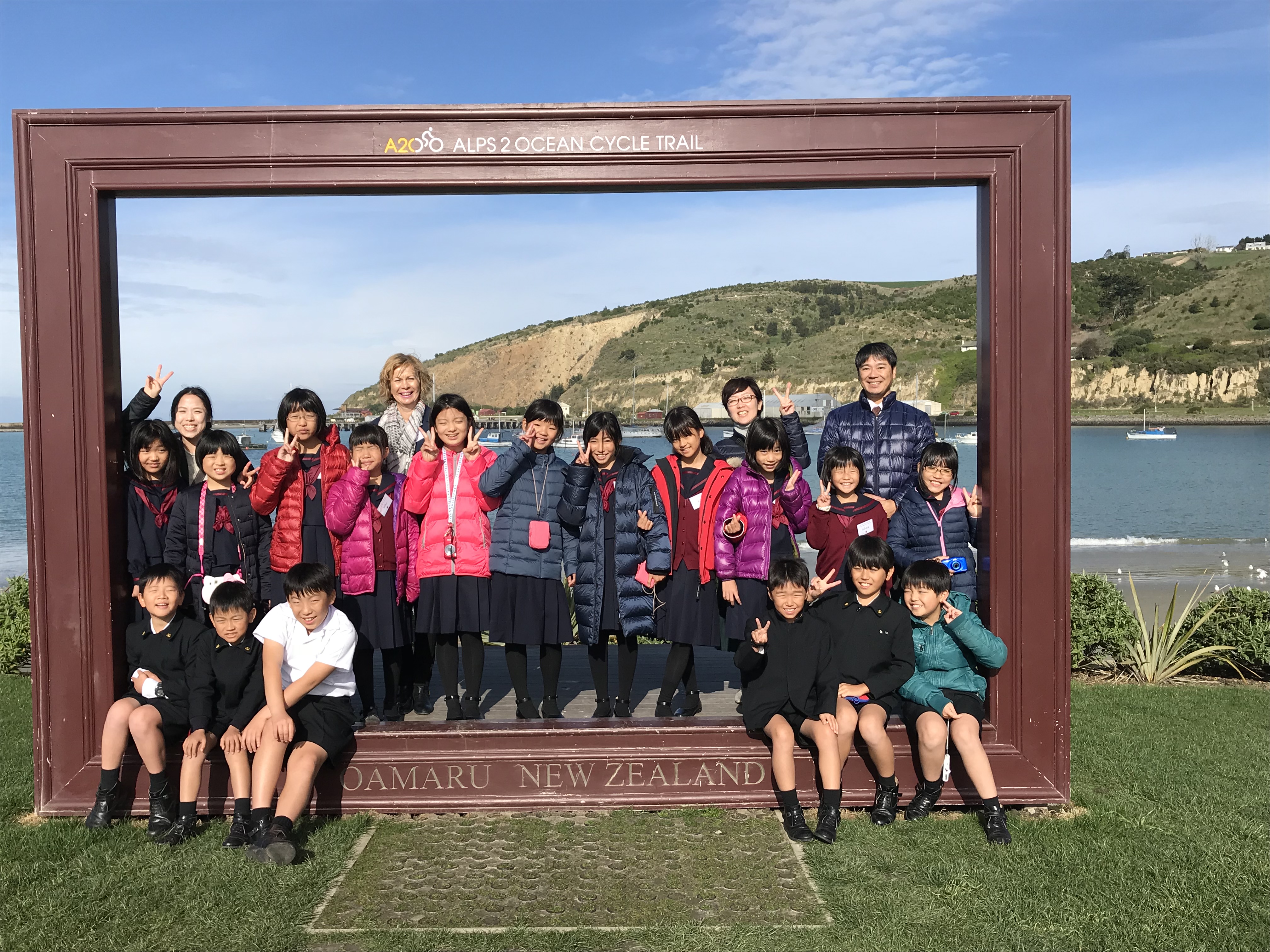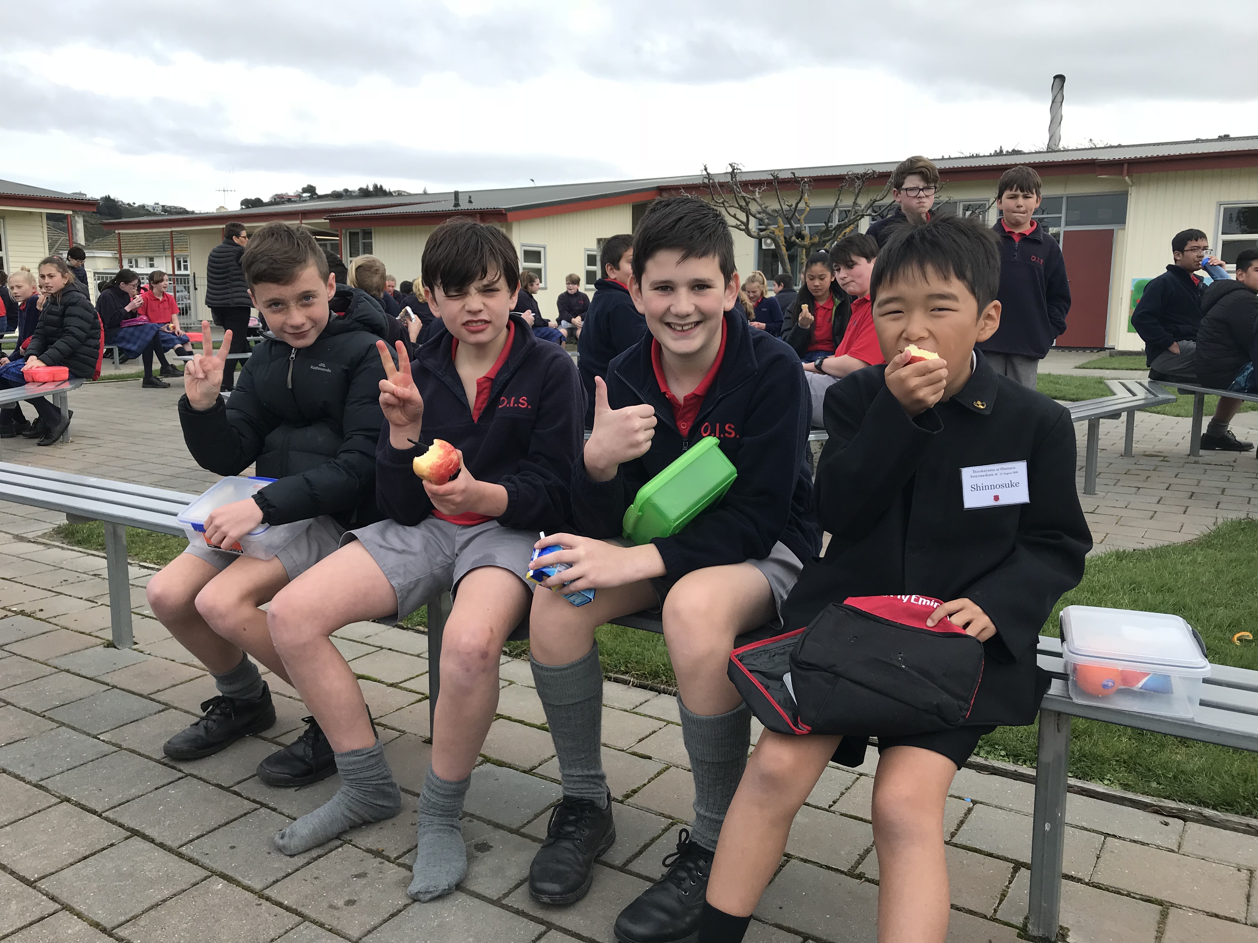 今日は最後の登校日です。午前中1時間目は一緒に最後のバディー授業を受けさせてもらいました。2時間目は日本文化紹介でした。習字や折り紙、日本の遊びなどを紹介し、現地の子どもたちと楽しく遊びました。Oamaruの生徒たちにも気に入ってもらえたみたいでよかったです。