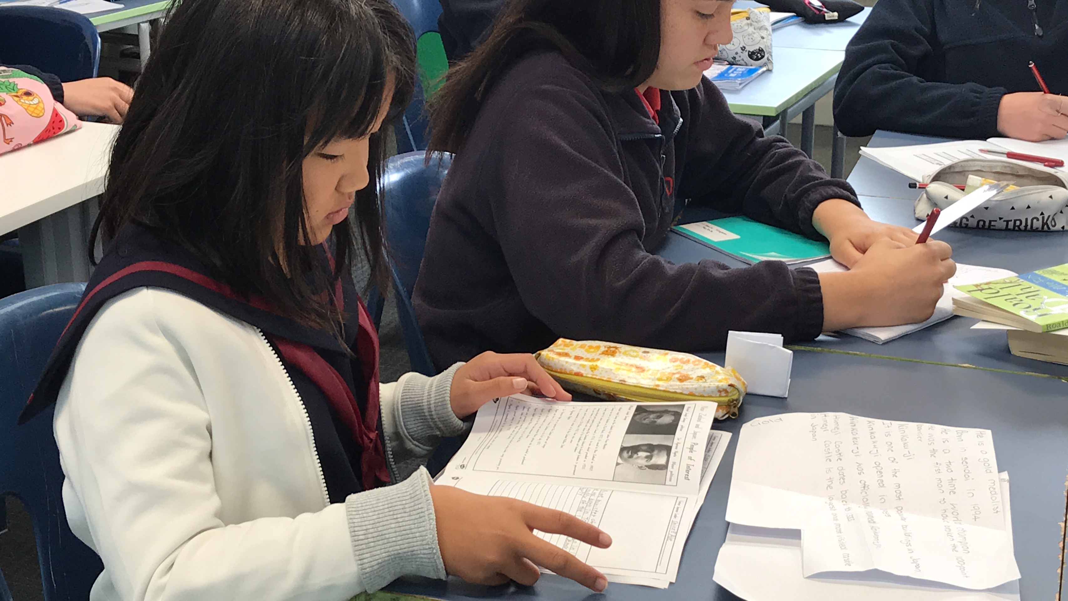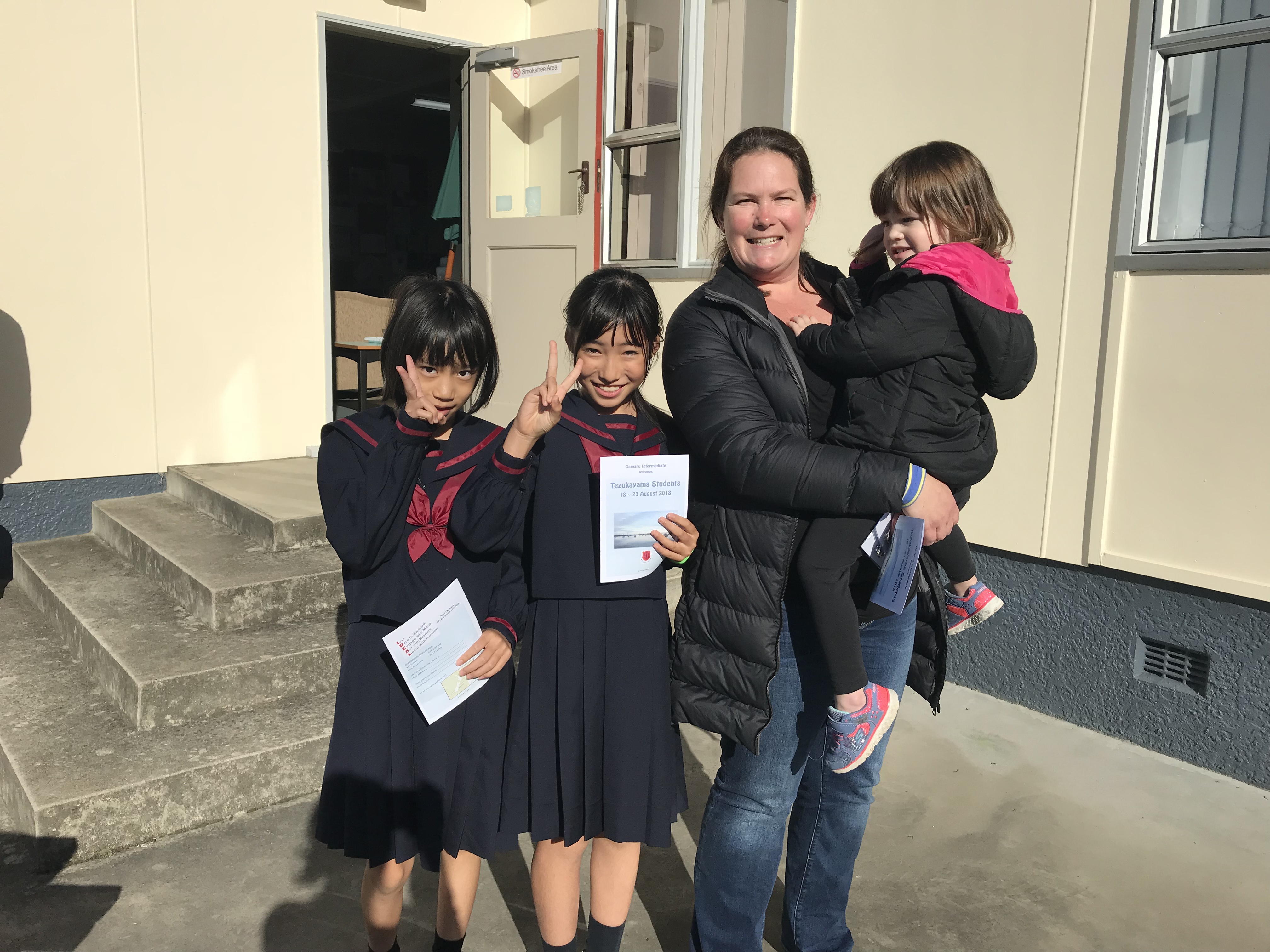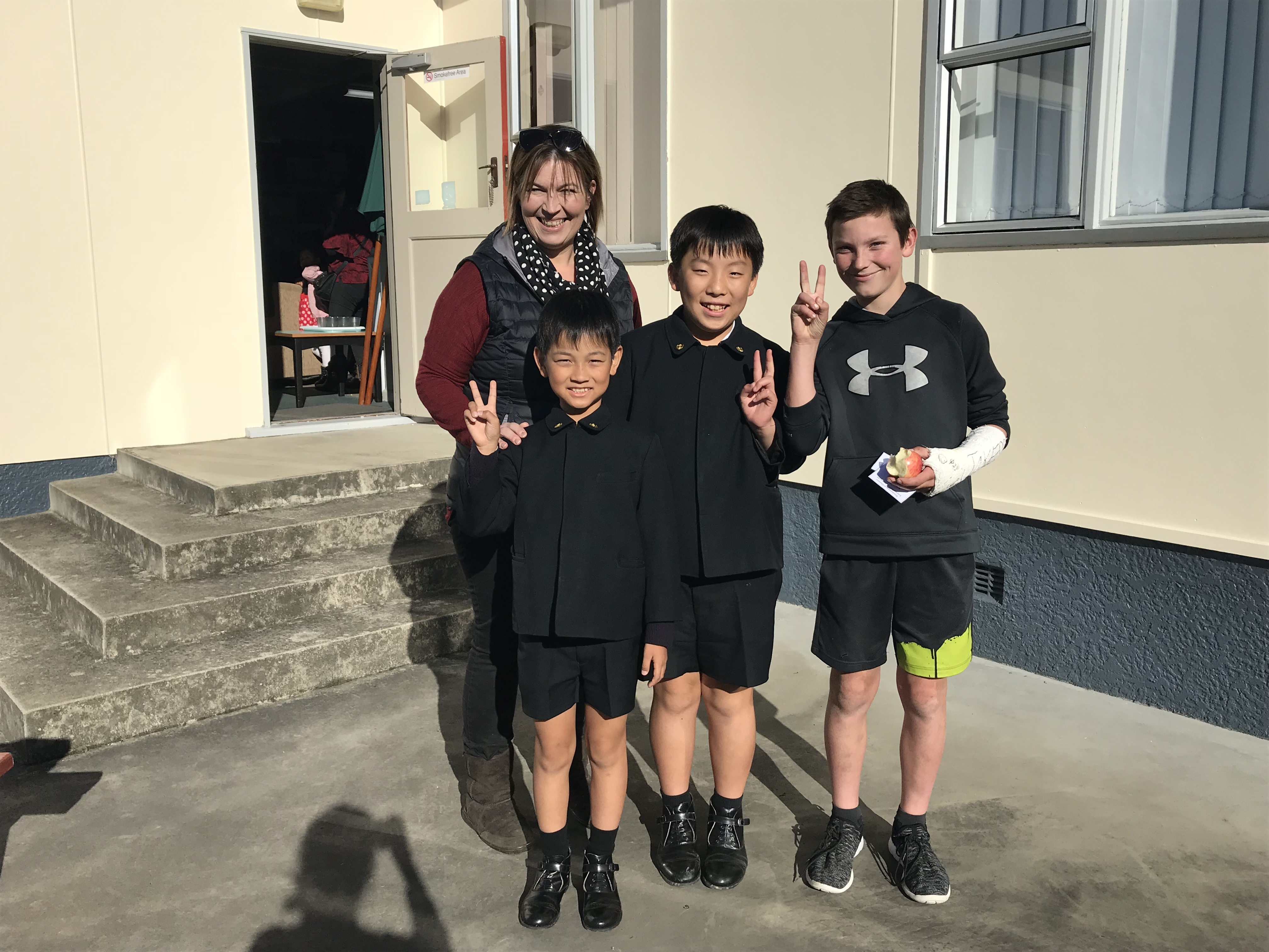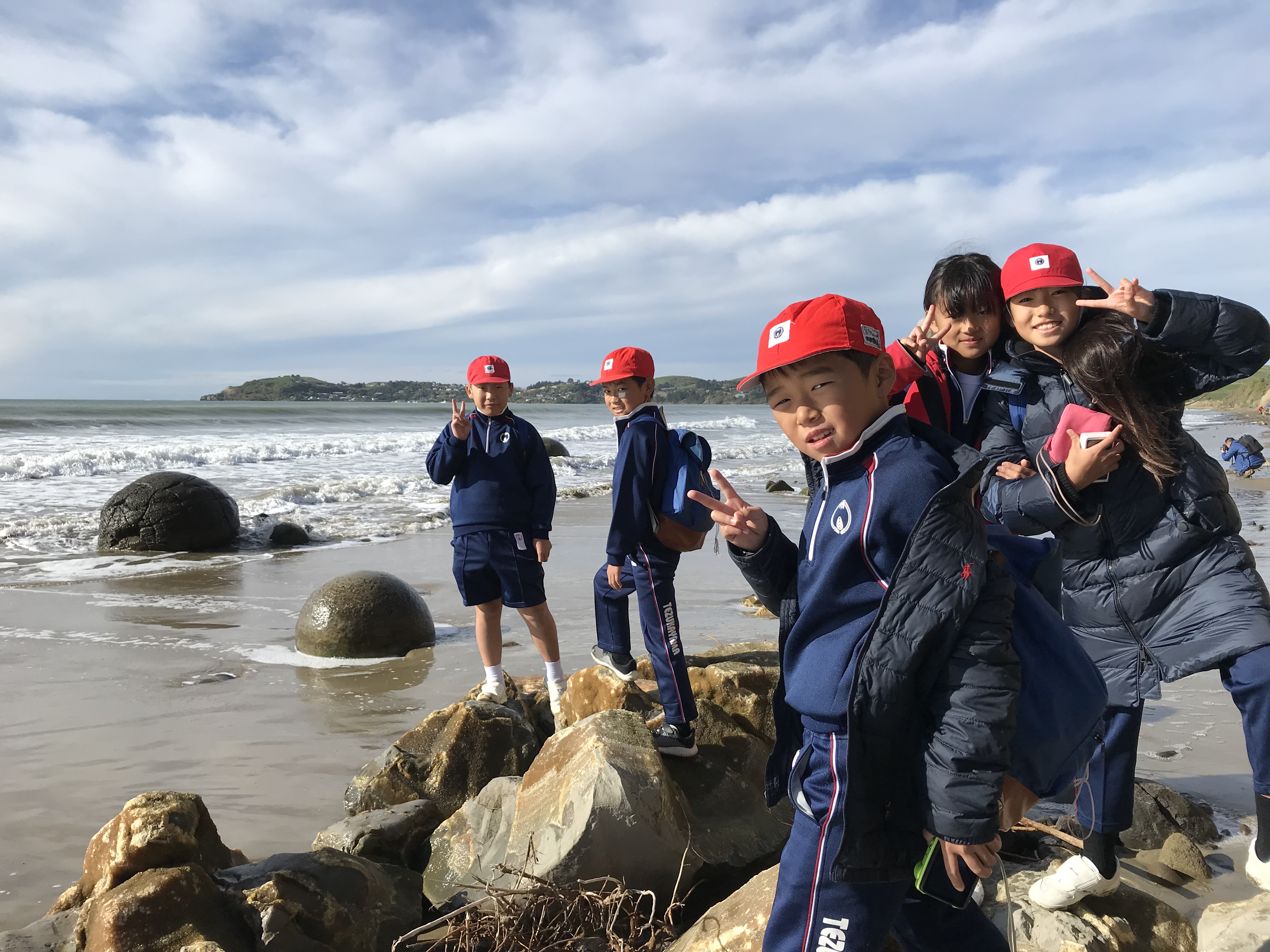 今日は最後の登校日です。午前中1時間目は一緒に最後のバディー授業を受けさせてもらいました。2時間目は日本文化紹介でした。習字や折り紙、日本の遊びなどを紹介し、現地の子どもたちと楽しく遊びました。Oamaruの生徒たちにも気に入ってもらえたみたいでよかったです。