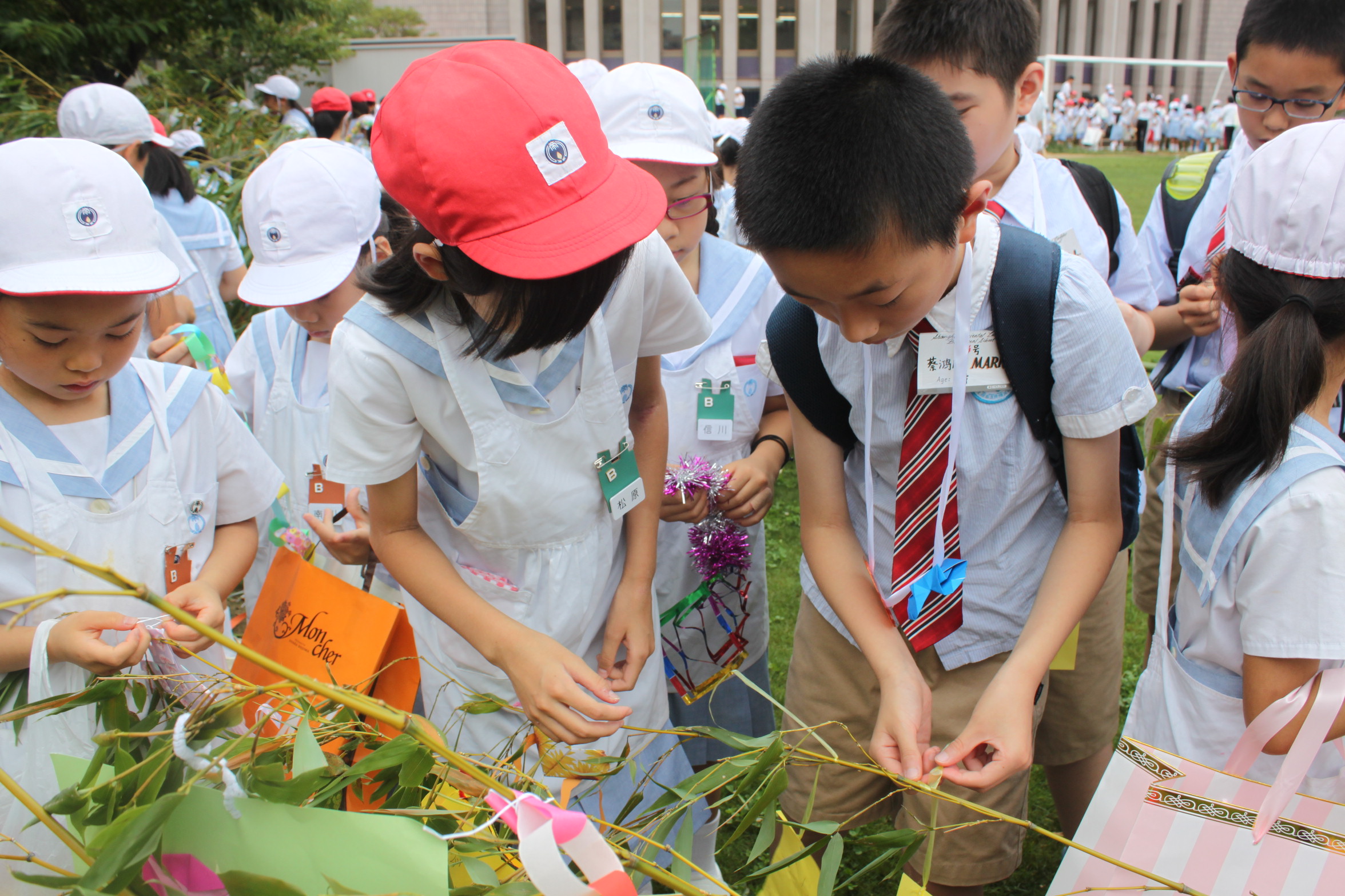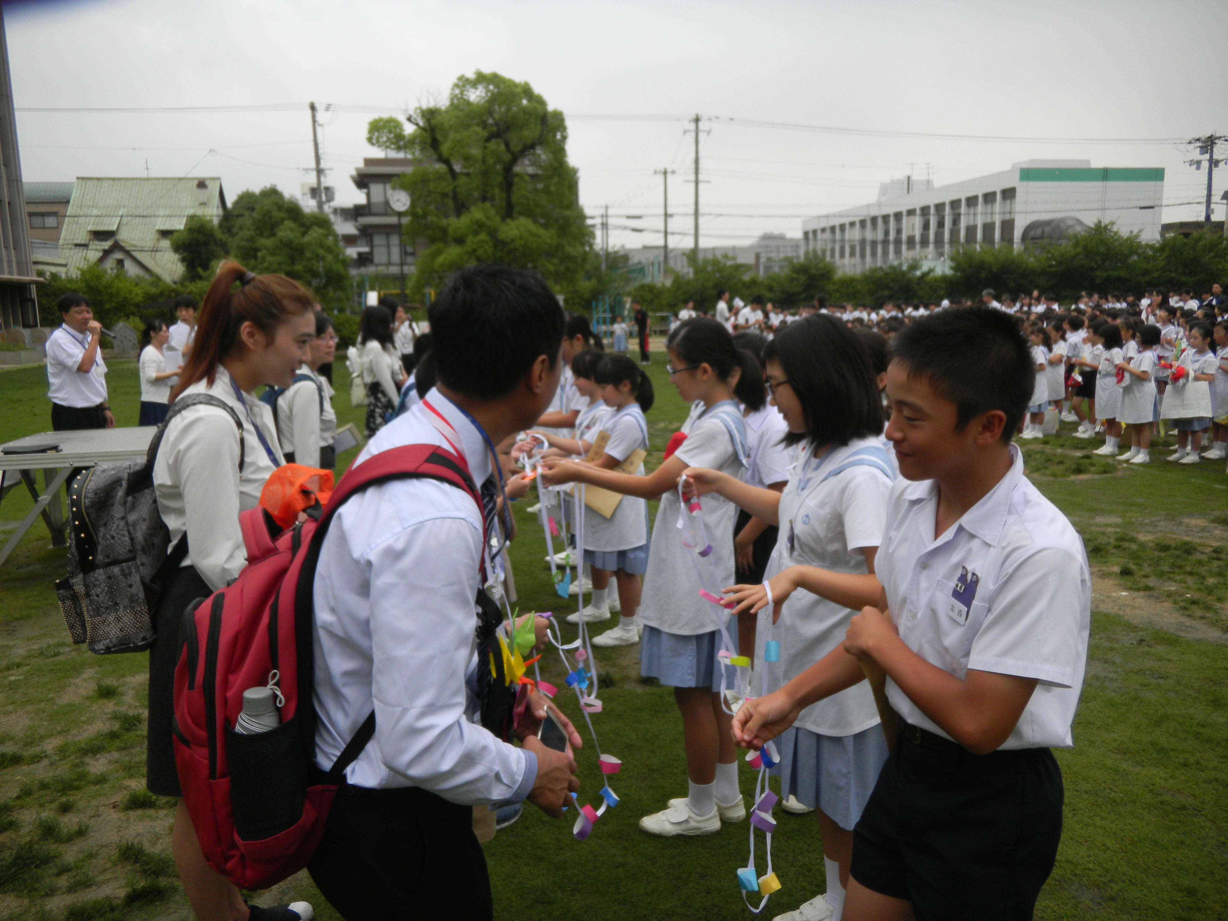 その後、七夕笹飾りを一緒に行い、交流をはかり、音楽・図工の授業に参加。給食も一緒にいただきました。