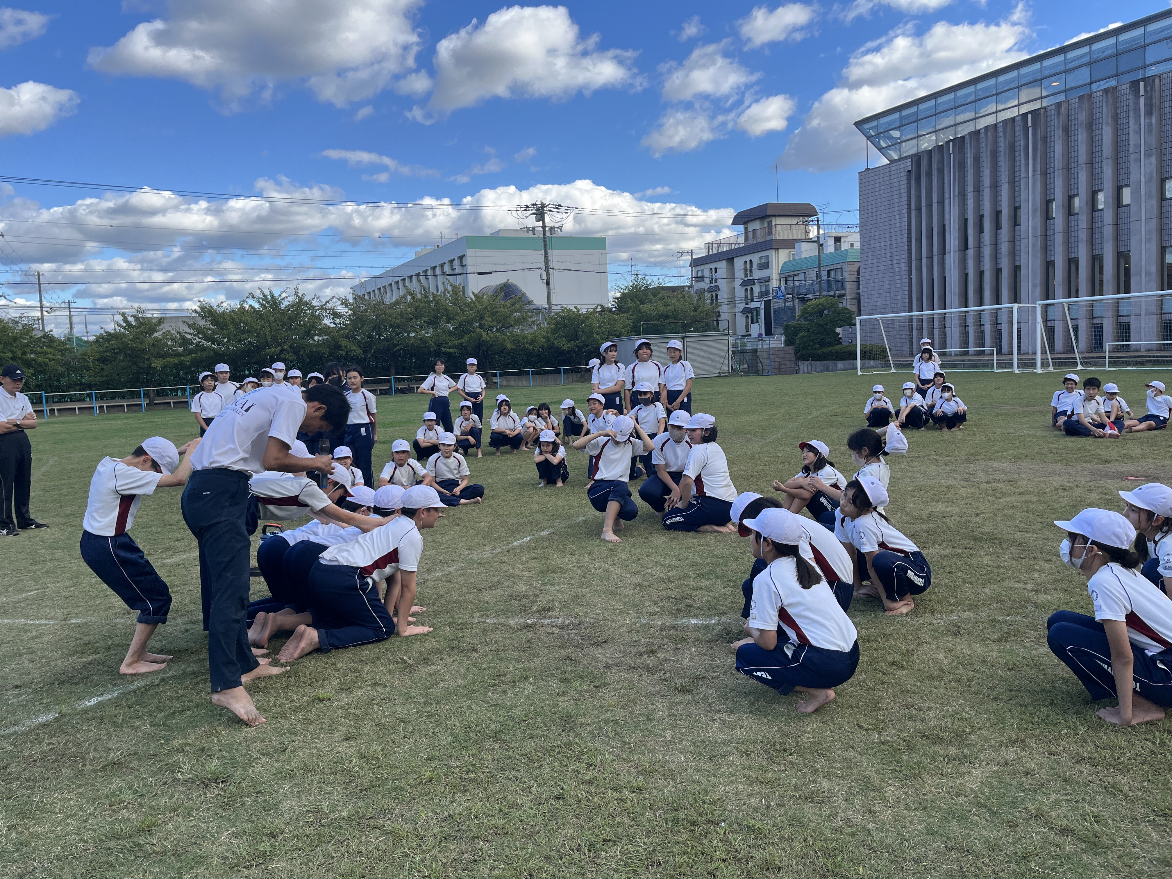 涼しくなってきたといえ、運動場で動くとまだまだ汗ばむ気温です。