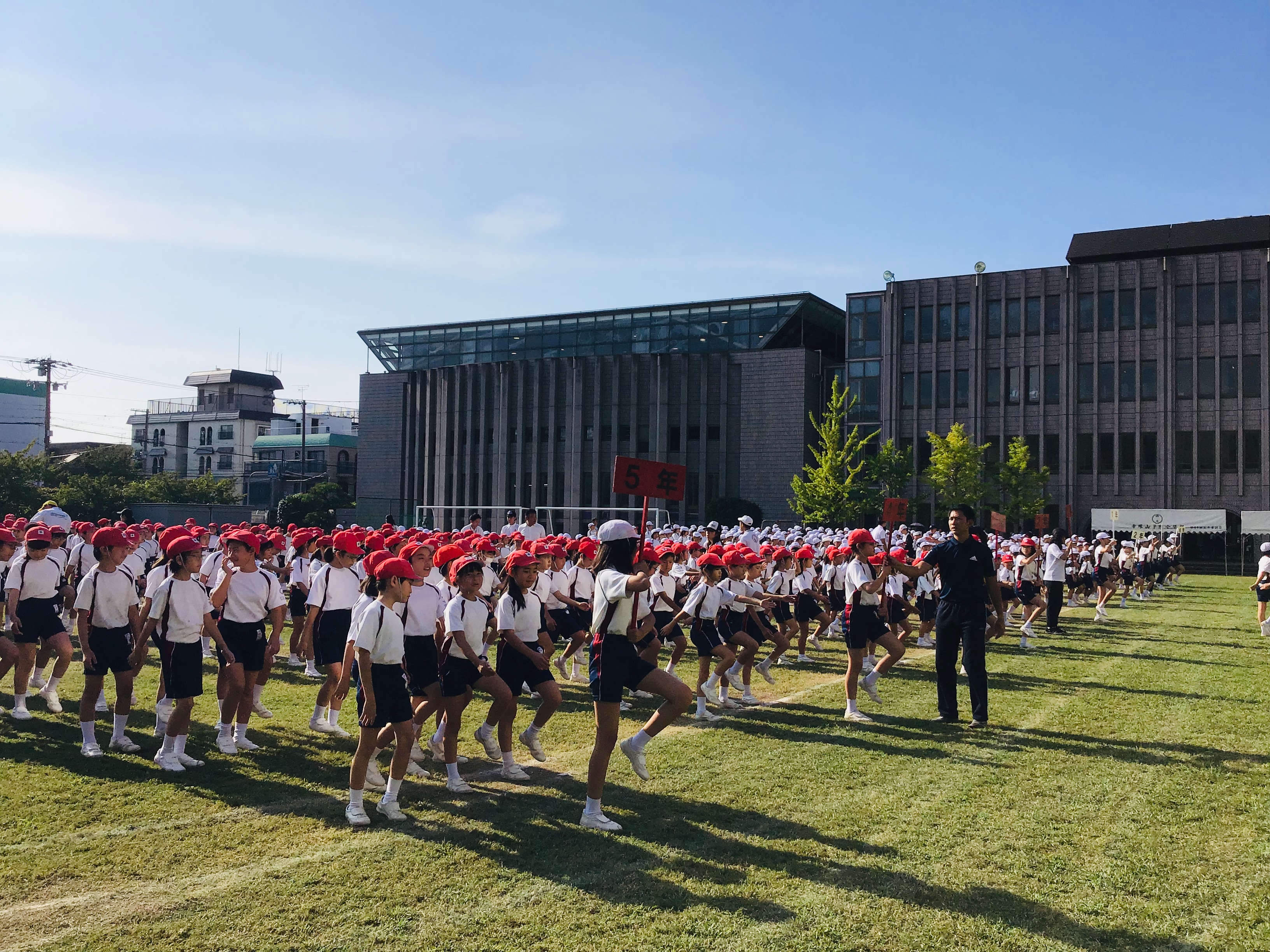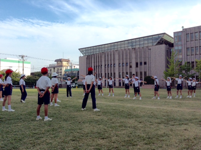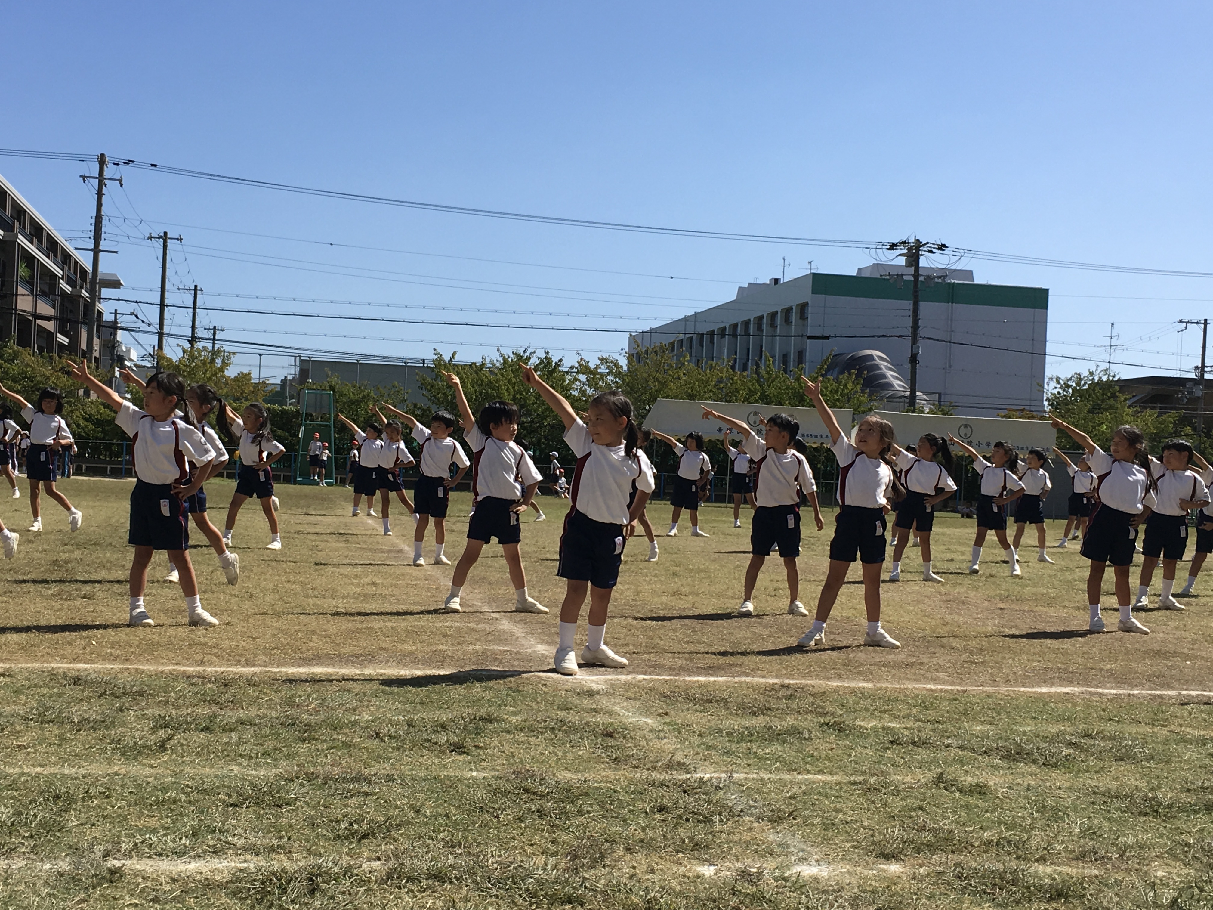 10月に入っても朝からまだまだ汗ばむような気温でしたが、児童たちは行進の練習に加え、隊列を整えての体操を行いました。