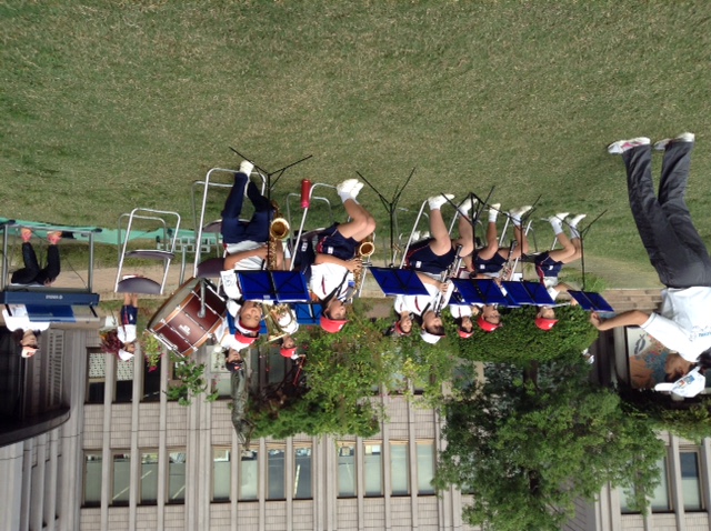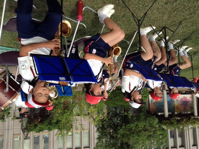 今日の早朝練習では、吹奏楽部の演奏に合わせて、元気よく行進をしました。