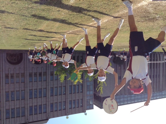 本日、運動場では、4年生が団体演技の練習をしていました。 沖縄の音楽に合わせて、元気いっぱいに踊っていました。