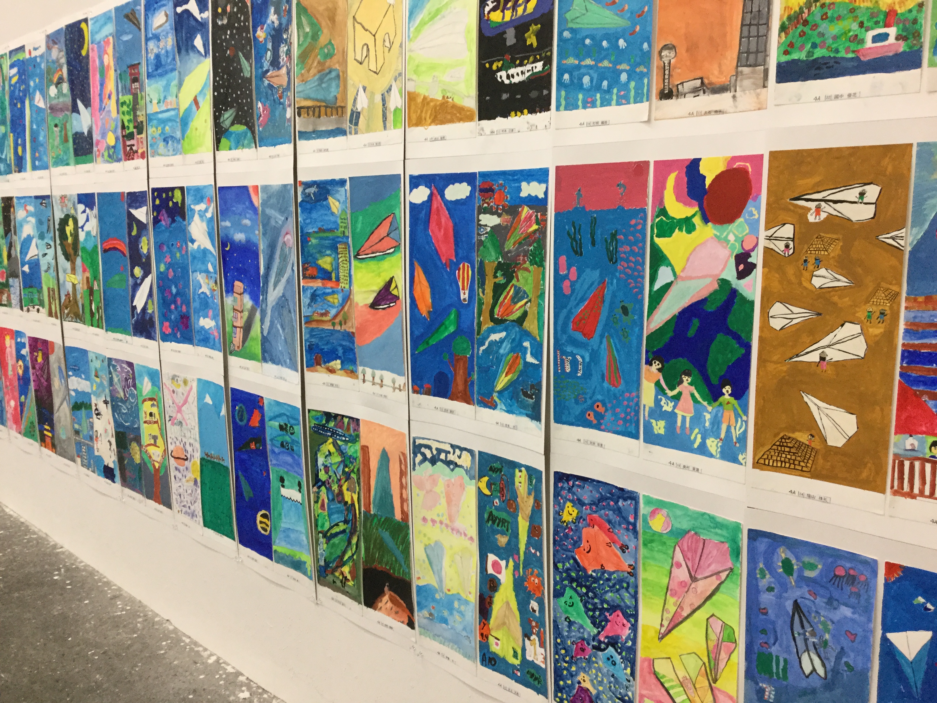 帝塚山学院小学校では、大型アートスペースでの美術展を毎年開催しています。 本年度は、全校児童出品作品と選抜の作品700点が飾られています。 1年生は、全紙に描かれた自画像 2年生は、ファッションショー 3年生は、紙コップ不思議な世界が出てくる所を想像しました。 4年生は、紙飛行機をよく見て描きました。 5年生は、歌舞伎の隈取、アニメーション 6年生は、木版画の自画像が展示されています。 2/10(土)15時までの開催です。