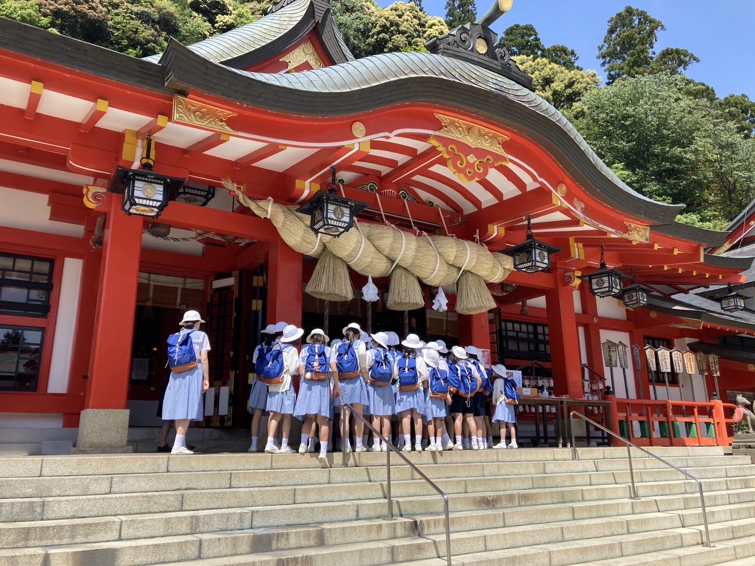 午前は島根県津和野にある津和野太鼓谷稲成神社を見学しました。ガイドさんから「稲成」と表記される神社は全国でも唯一ここだけという話を聞き、願いが叶うという話も聞き、児童たちは目を輝かせながら、神社を見学していました。