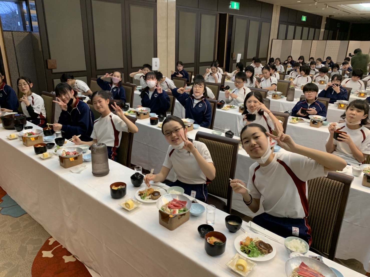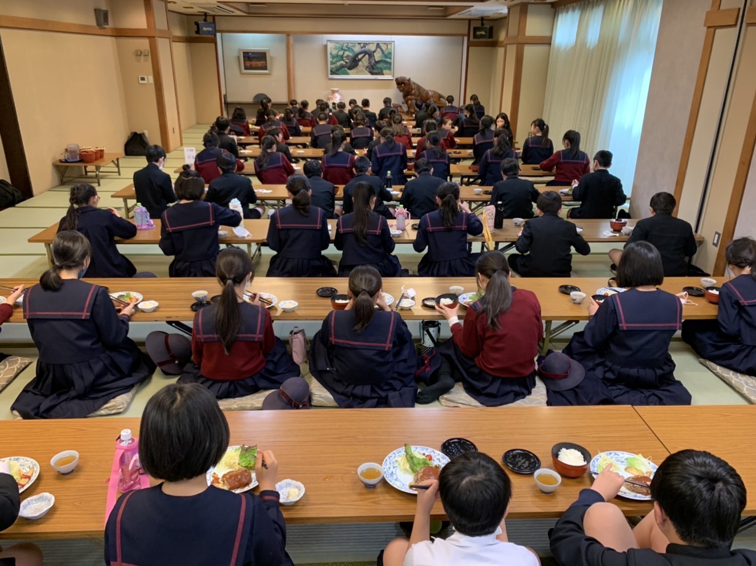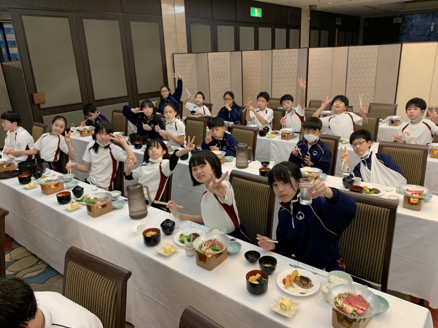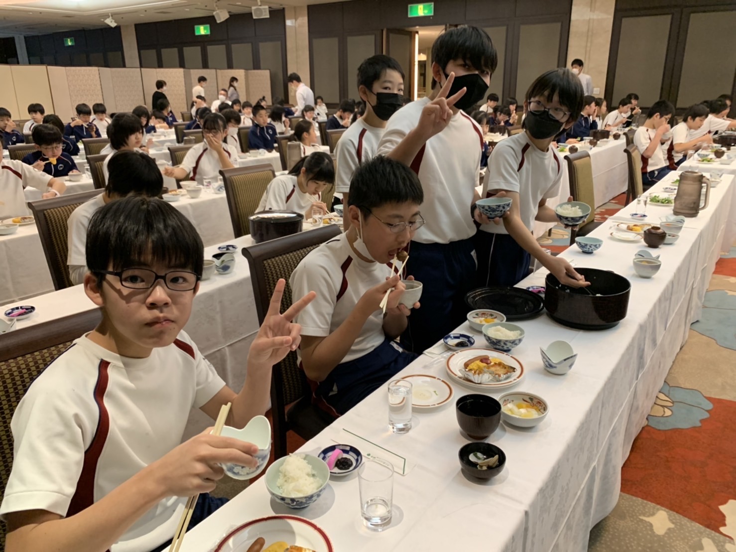 夕食では、ホットしつつも修学旅行を楽しんでいる顔が見れました。