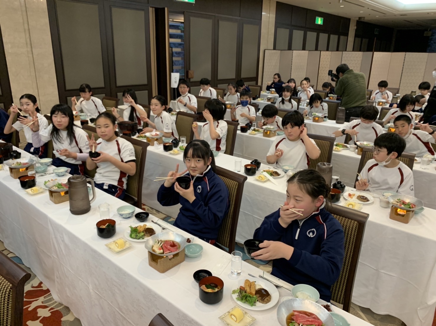 宮島を後にした6年生は無事に昼食会場に到着し、美味しく昼食をいただきました。