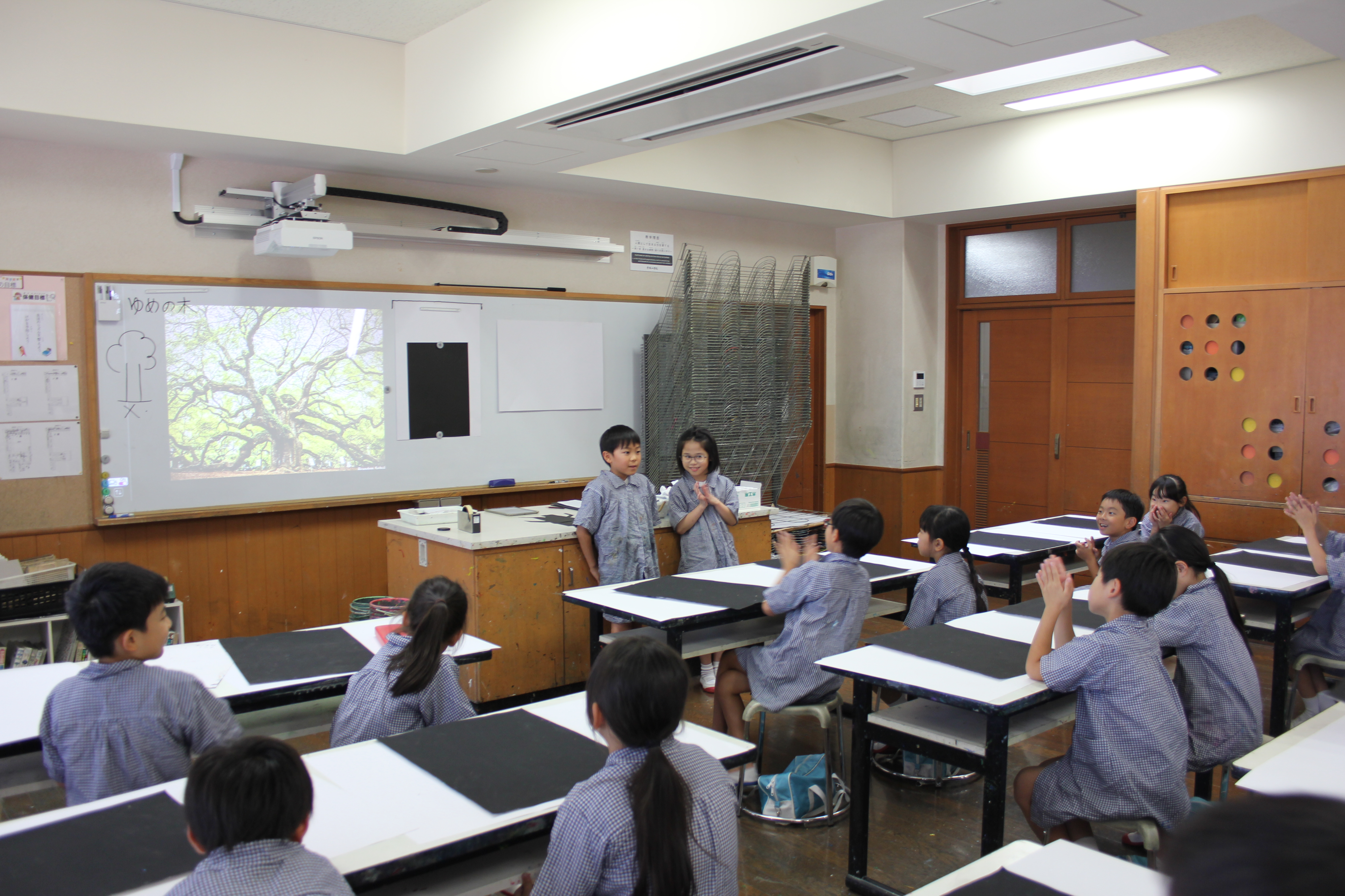 授業の最初に、校庭のクスノキや世界の木の画像を見ました。