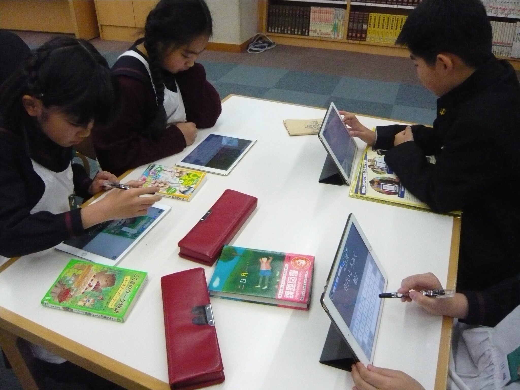 「本を紹介しよう」という単元で、本を紹介するPOPカードをiPadを使って作りました。