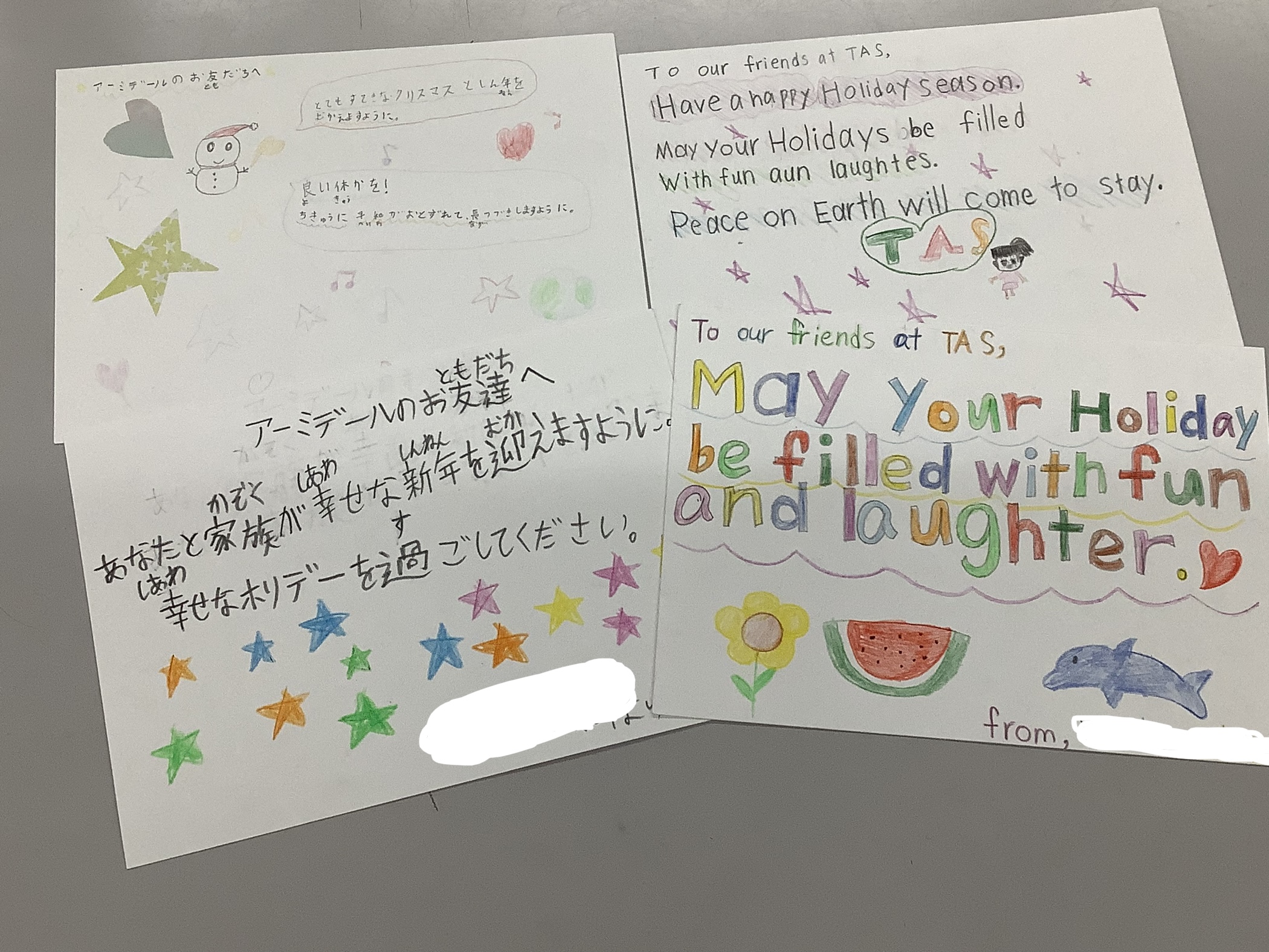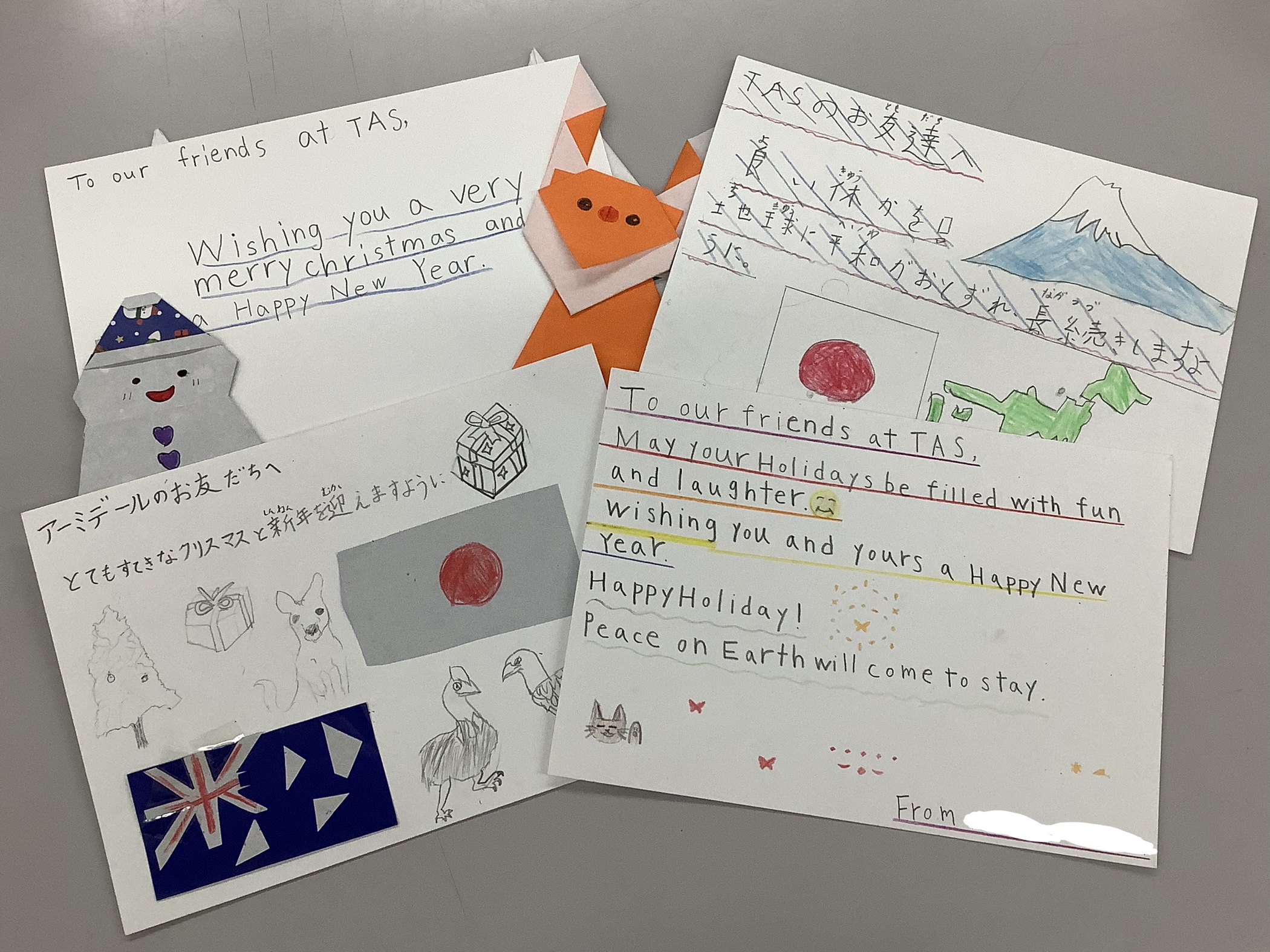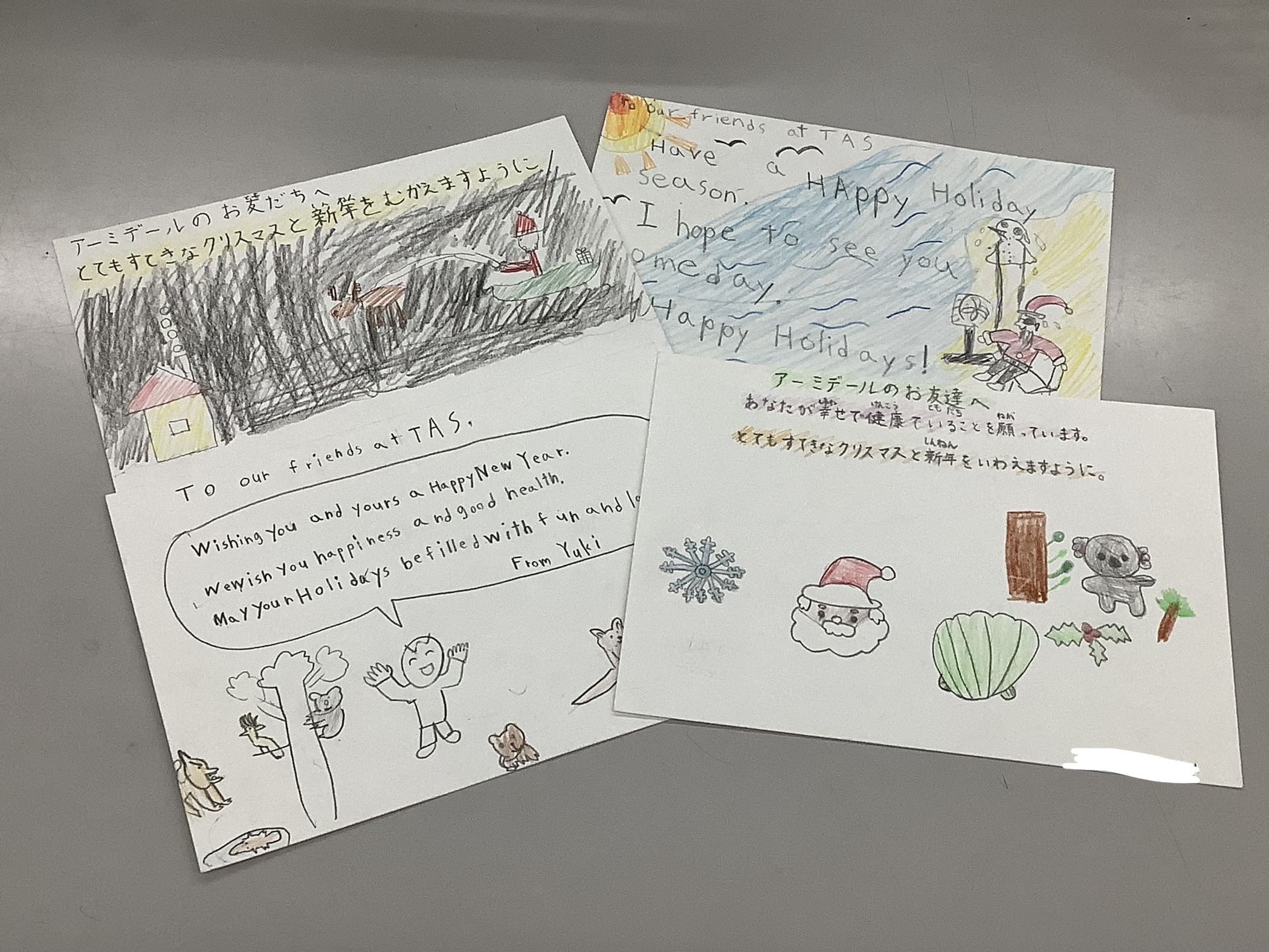 4年生は英語の授業時間を使って、いつも交流を重ねているオーストラリアのアーミデール校について少し勉強し、向こうのお友だちに季節のお便りを書きました。