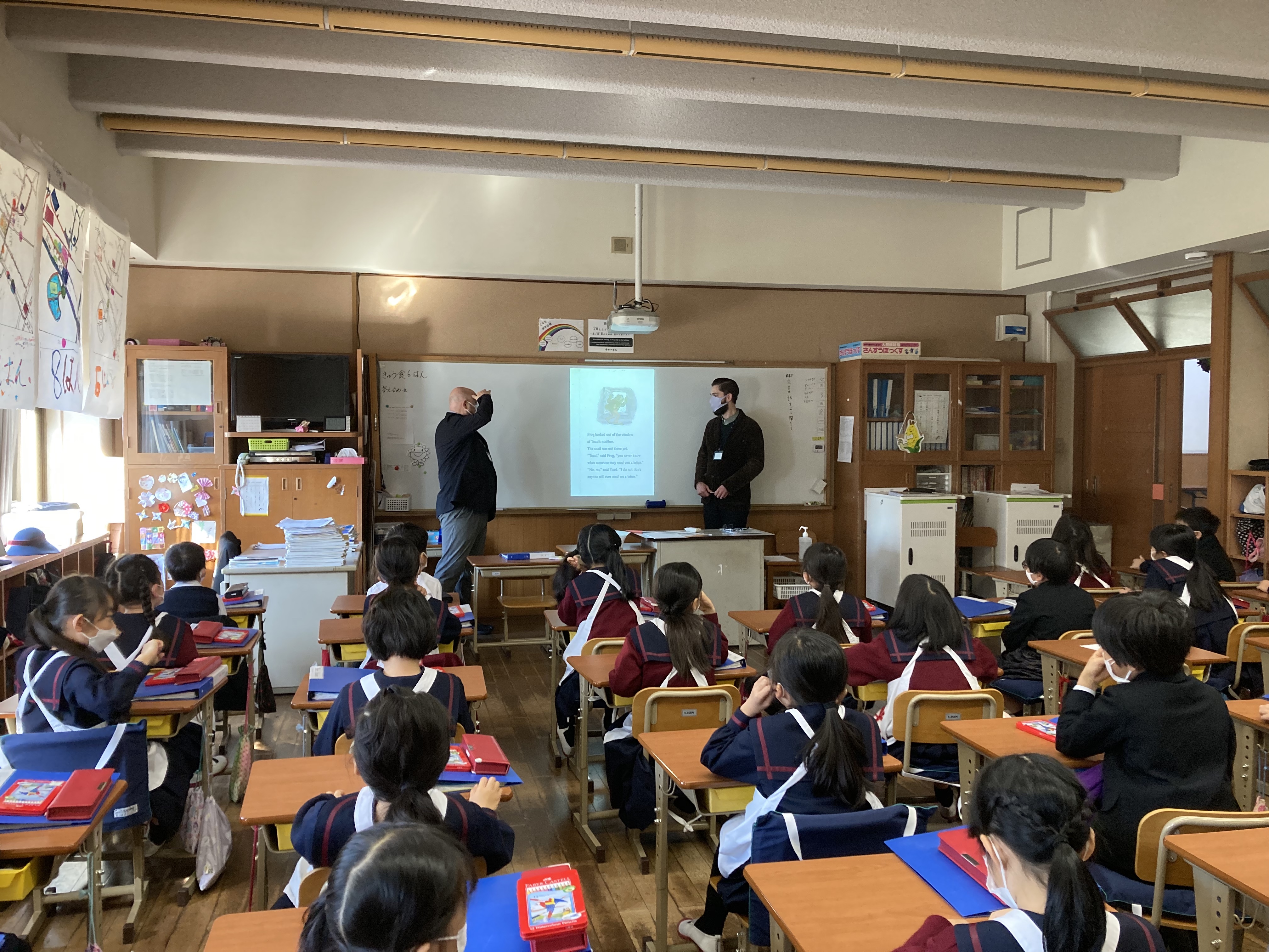 2年生は英語での読み聞かせが大好きで、いつも真剣なまなざしでお話を聞き、最後には拍手がわきおこります。また、一緒に参加して読む時には楽しそうに読みながら声を聞かせてくれます。